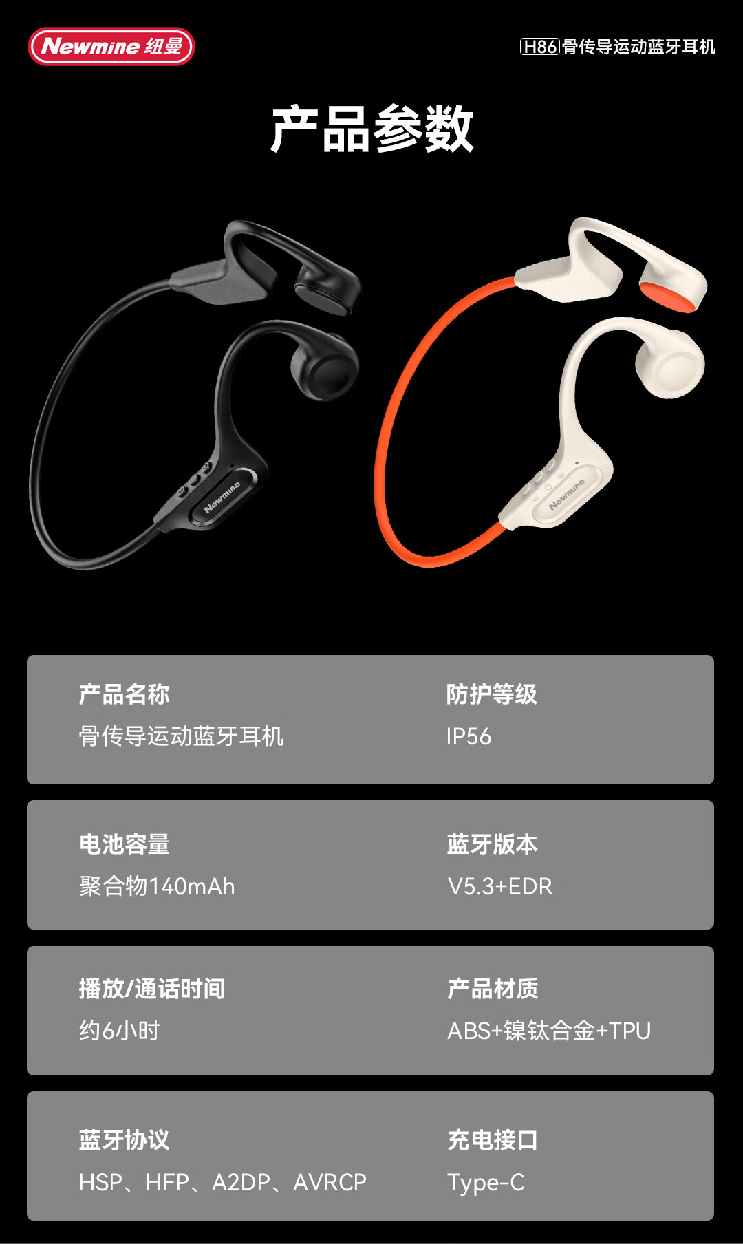商品名称:Newmine/纽曼骨传导蓝牙耳机H86