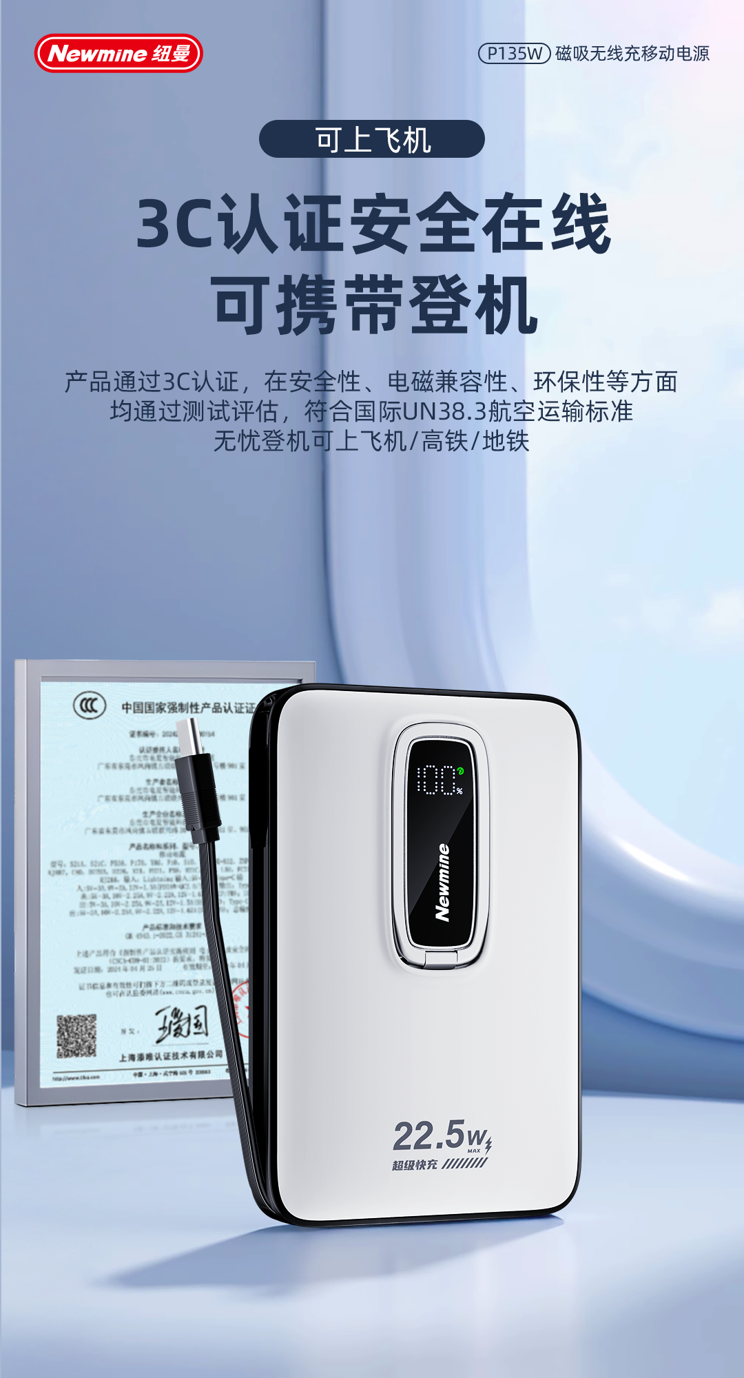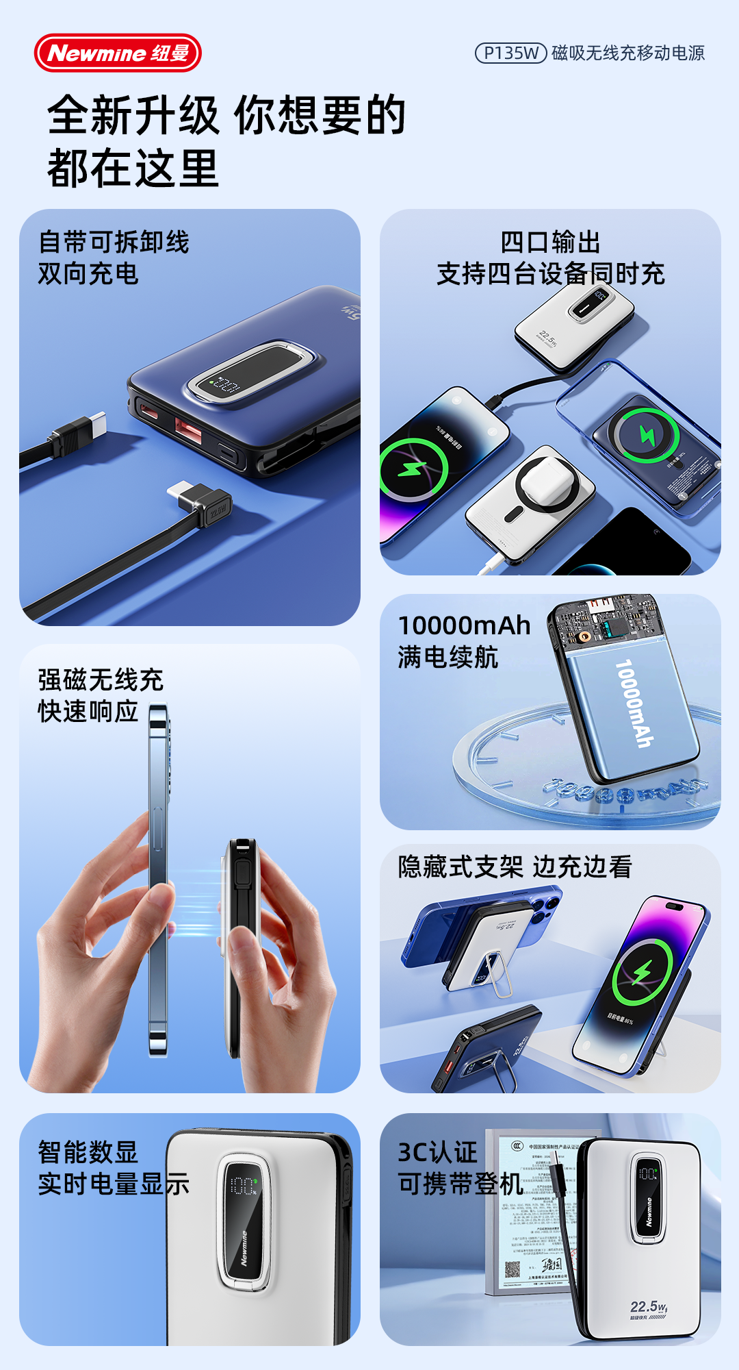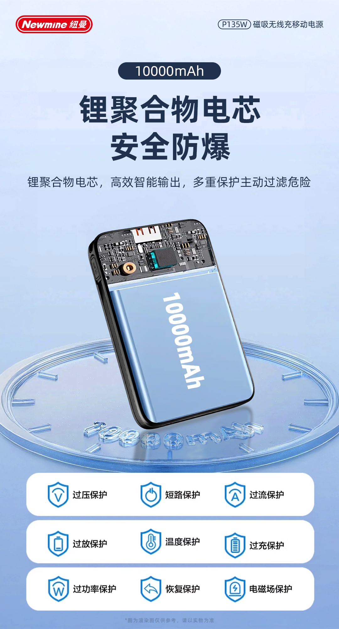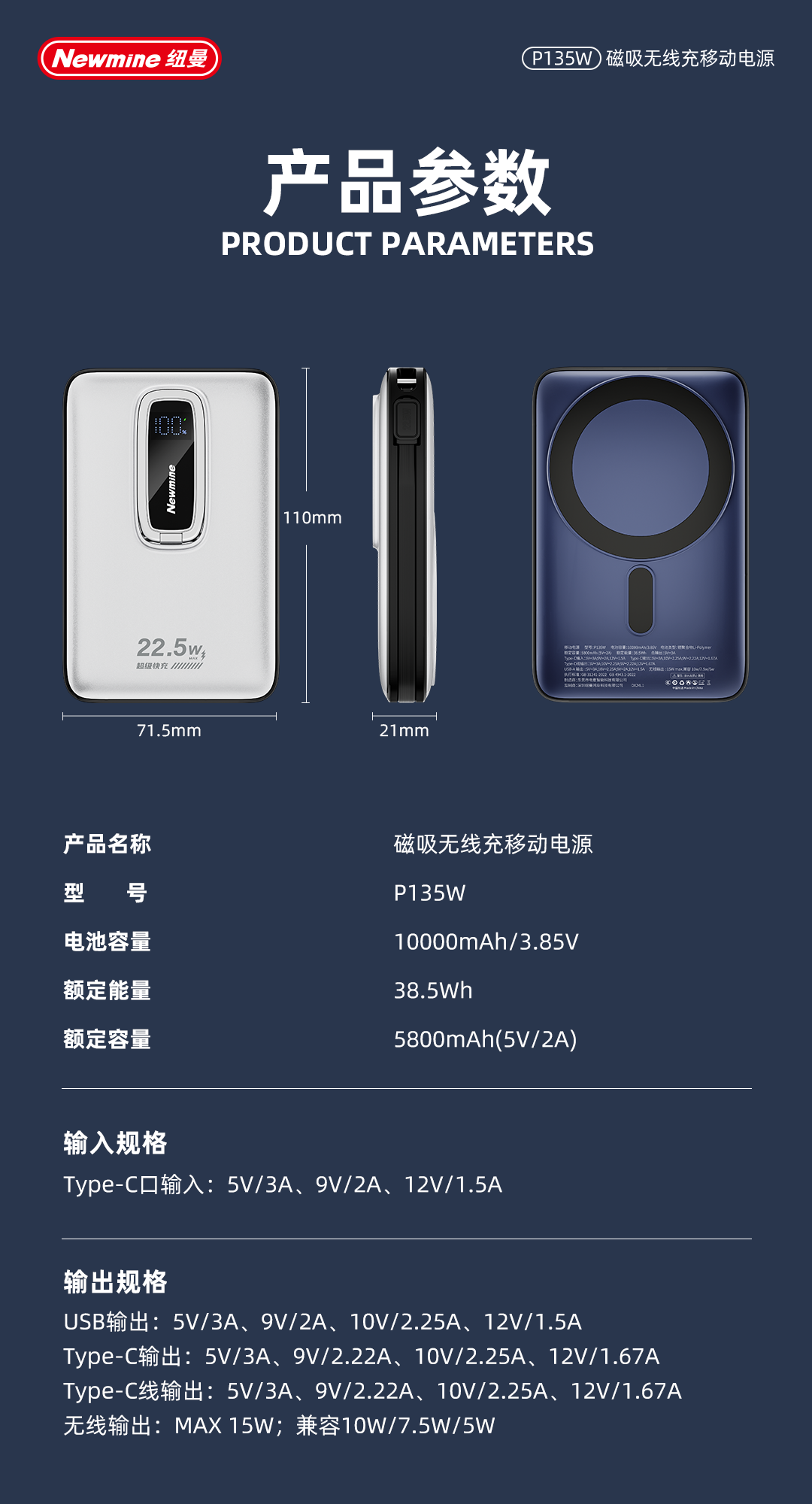 商品名称:Newmine/纽曼10000毫安充电宝P135W