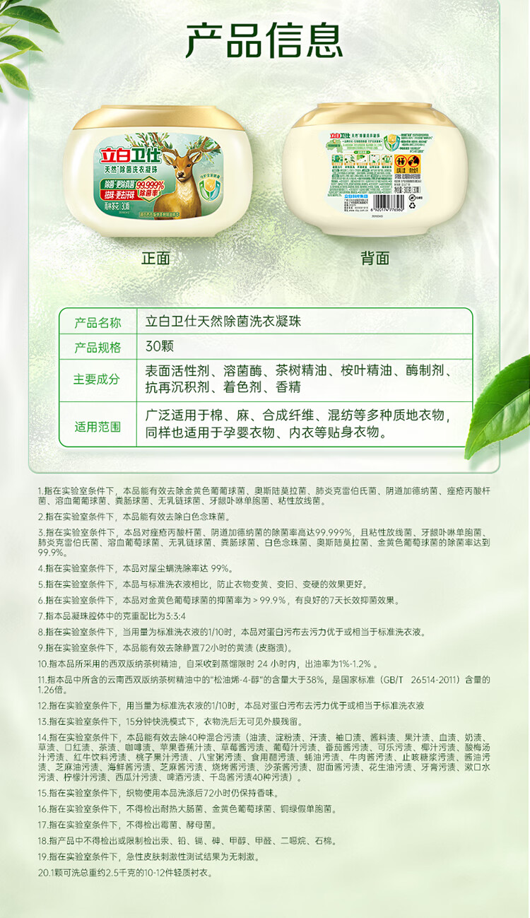 商品名称:Liby/立白卫仕天然除菌洗衣凝珠30颗
