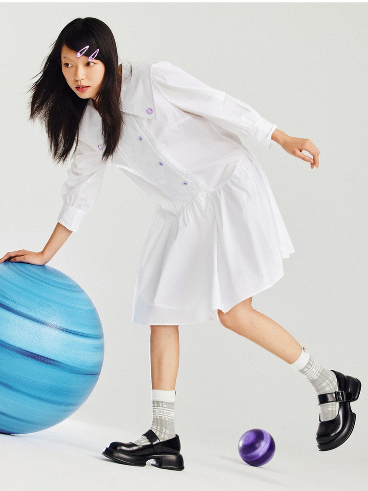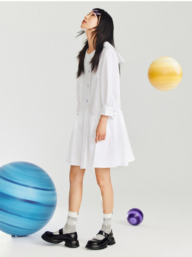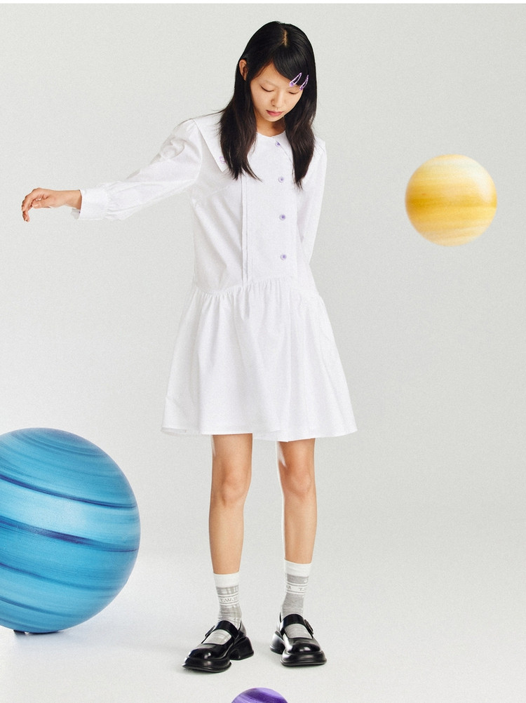商品名称:小熊女装春夏娃娃领连衣裙衬衫式裙子少女感初恋裙女 271617