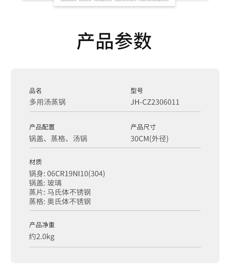 商品名称:京东京造30cm多用汤蒸锅JH-CZ2306011