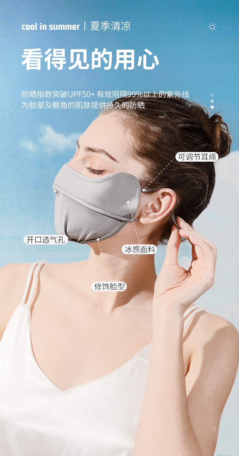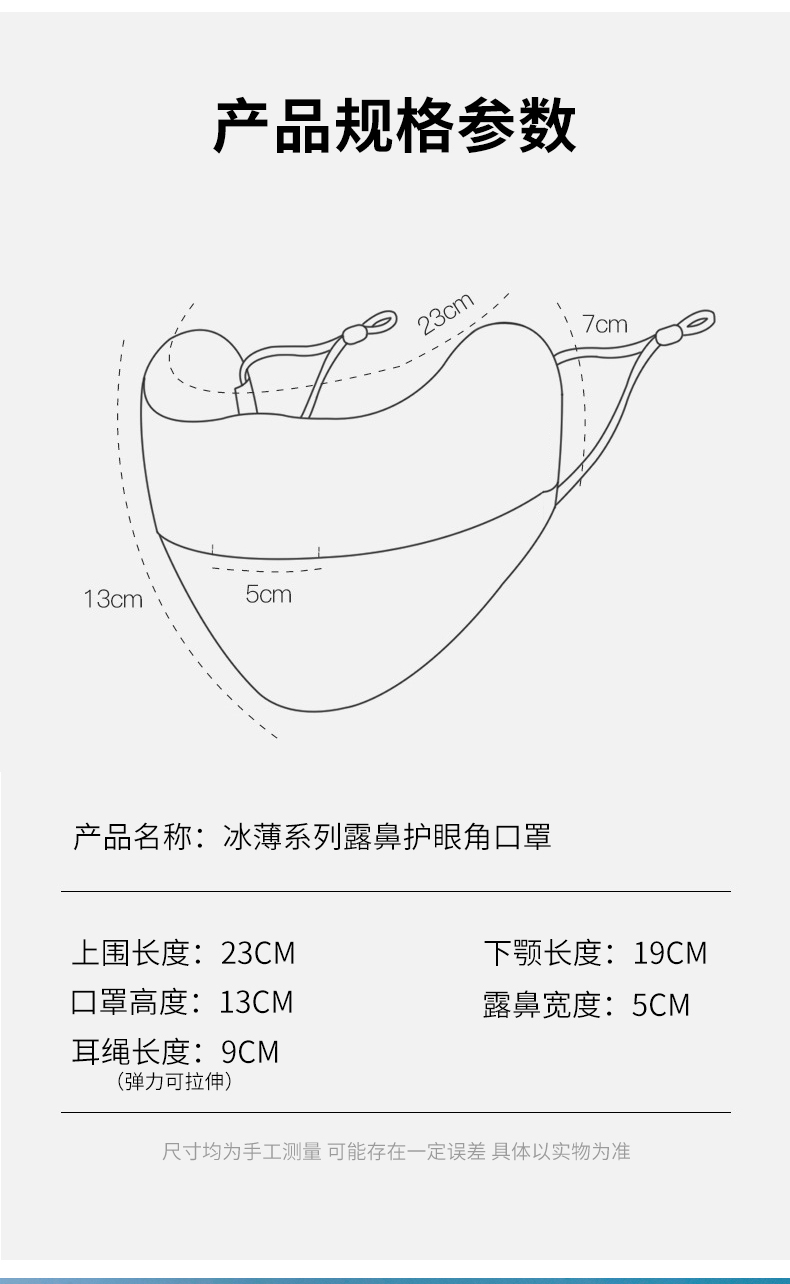 商品名称:趣游帮冰薄系列露鼻护眼角口罩-浅灰色S-2301
