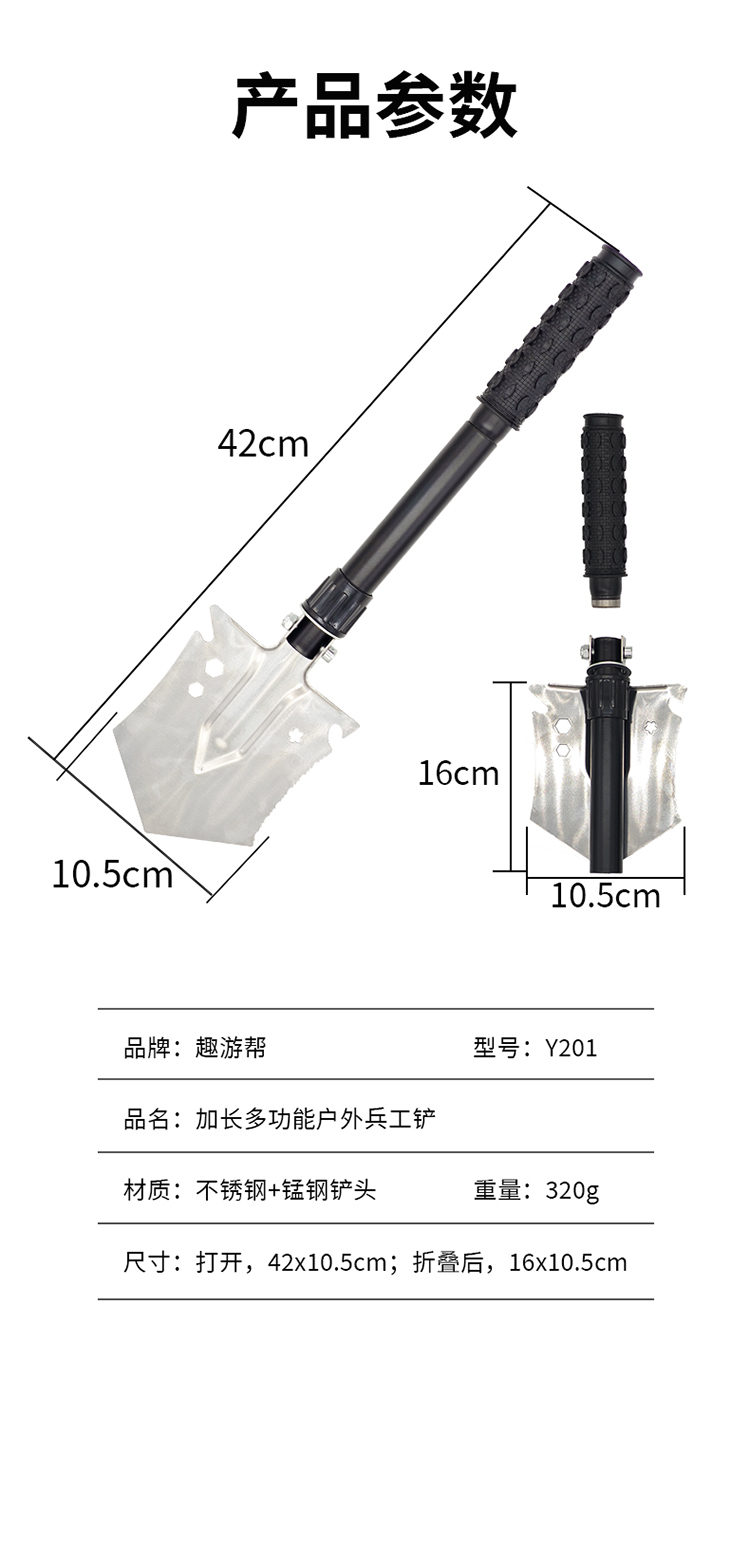 商品名称:趣游帮加长多功能户外兵工铲Y201