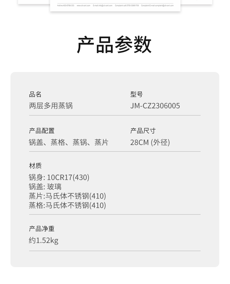 商品名称:京东京造28cm两层多用蒸锅JM-CZ2306005