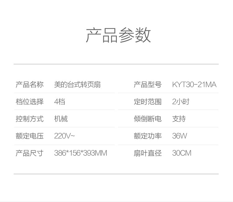 商品名称:Midea/美的台式转页扇KYT30-21MA