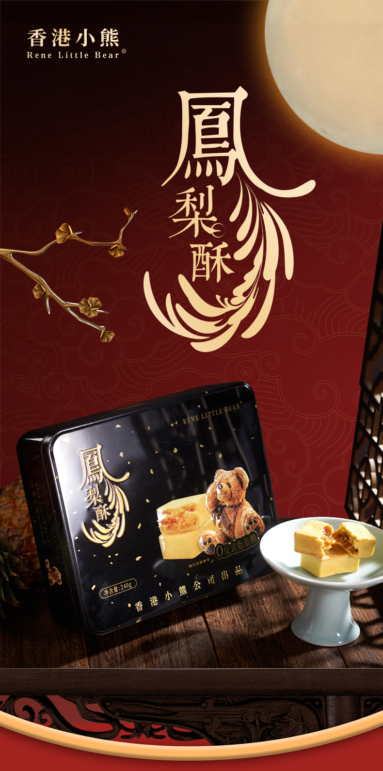 商品名称:Rene Little Bear/香港小熊凤梨酥240g