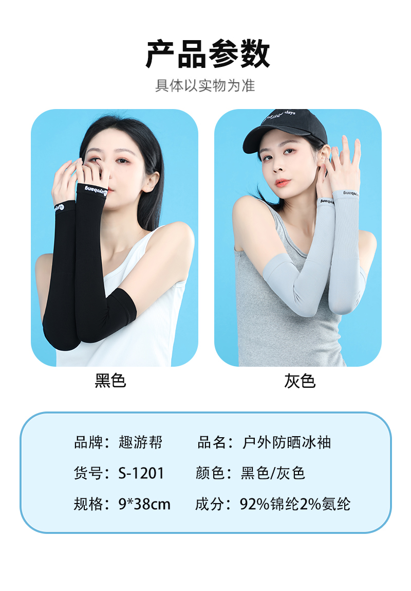 商品名称:趣游帮户外无指孔款防晒冰袖S-1201