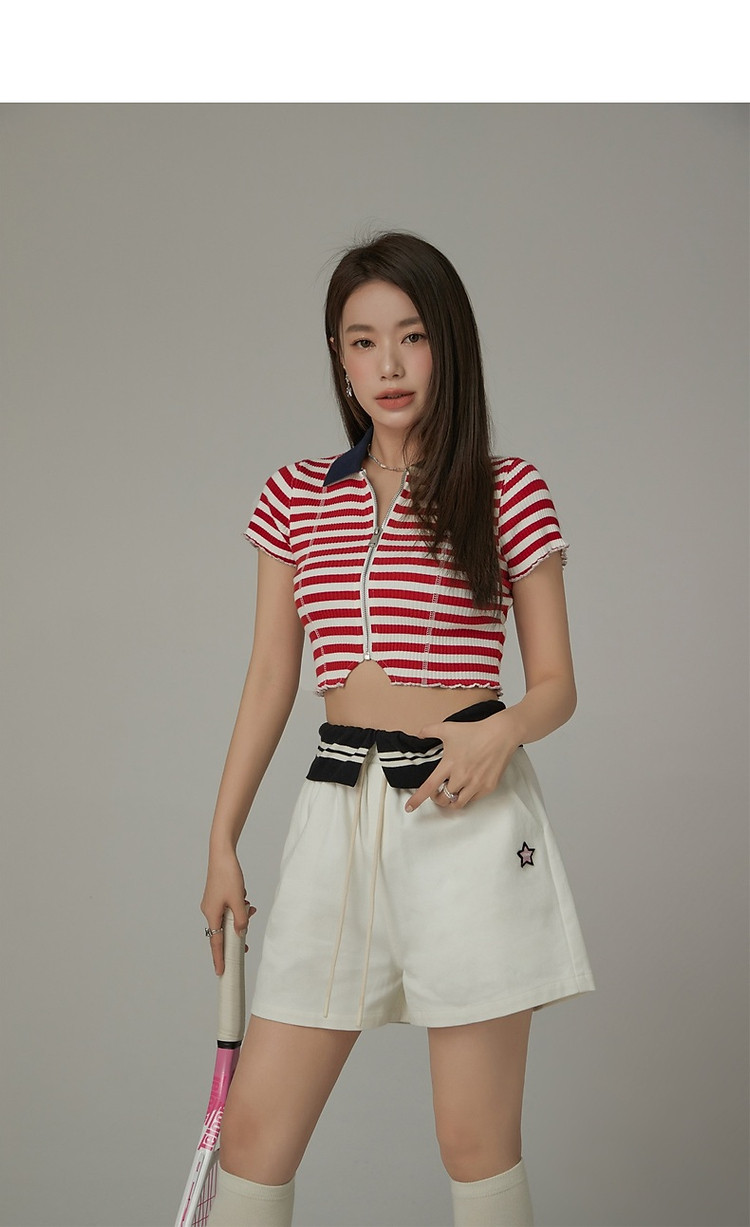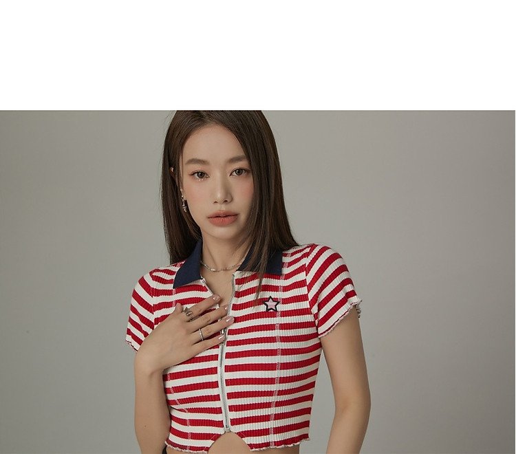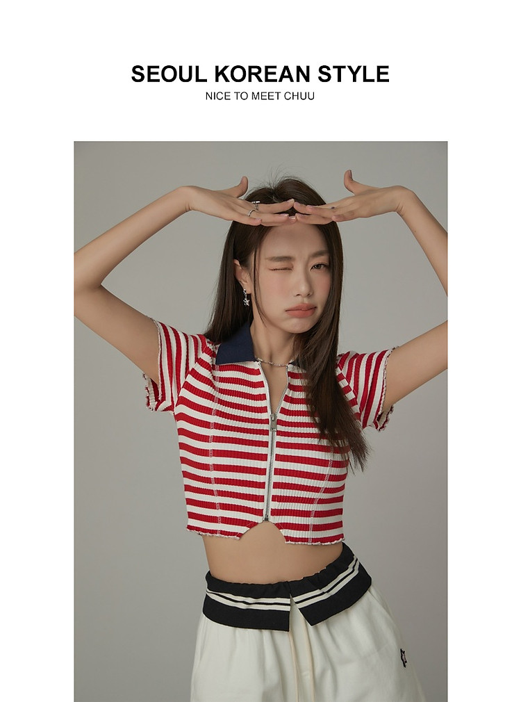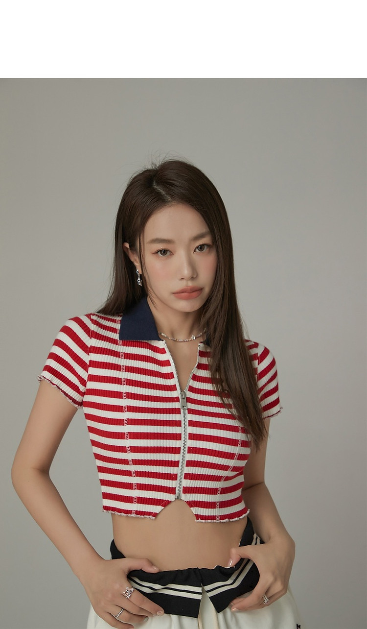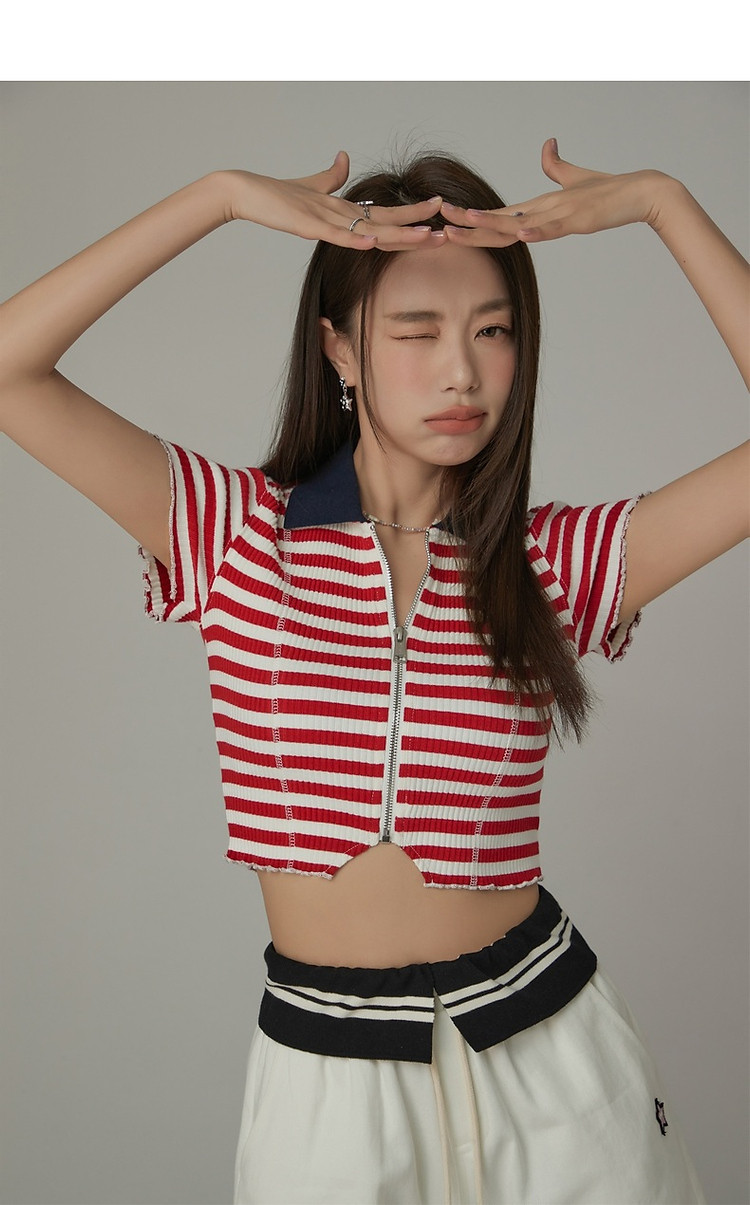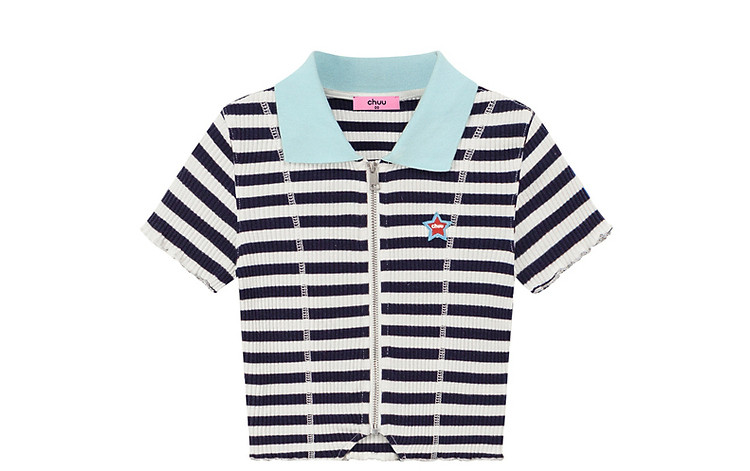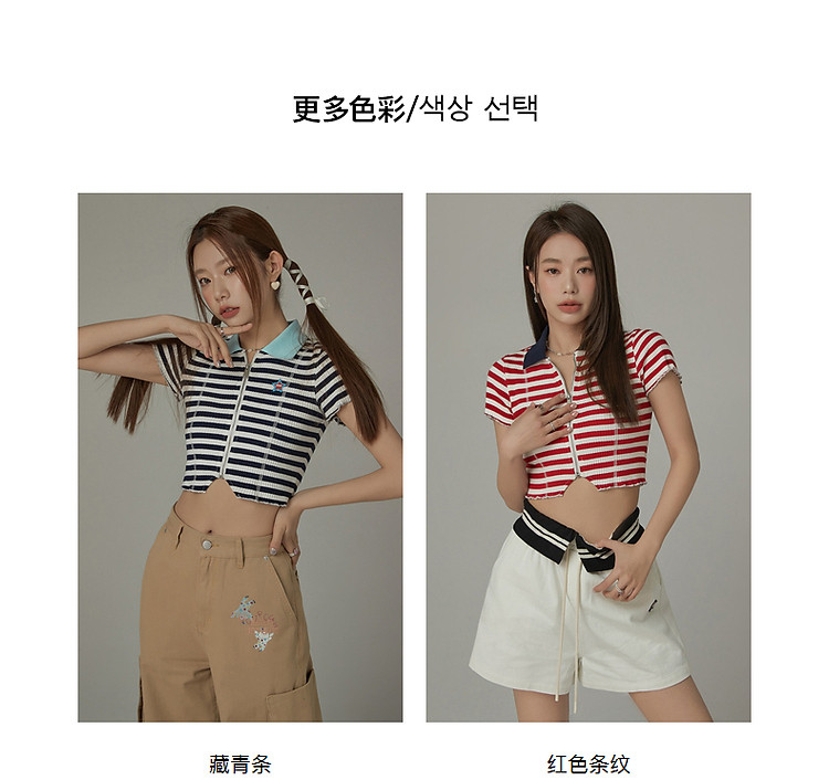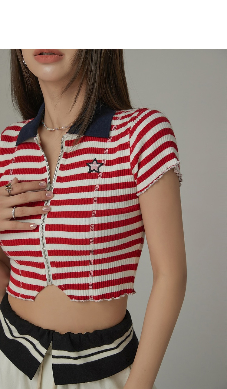 商品名称:条纹拉链T恤女春夏修身显瘦减龄洋气星星短款上衣 271187