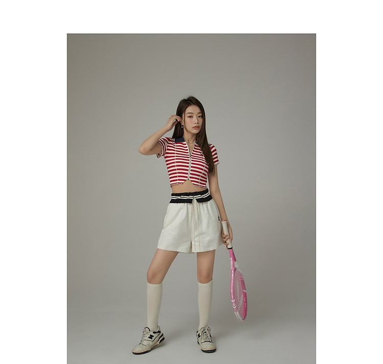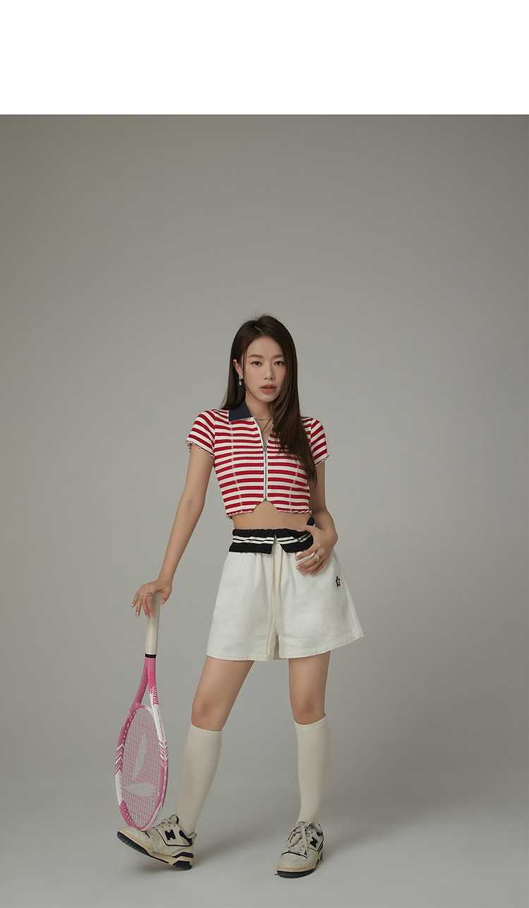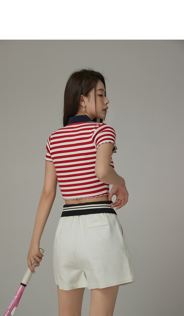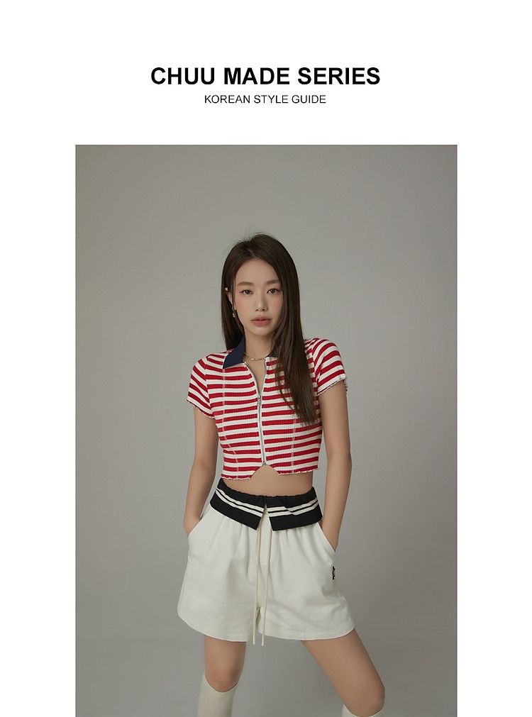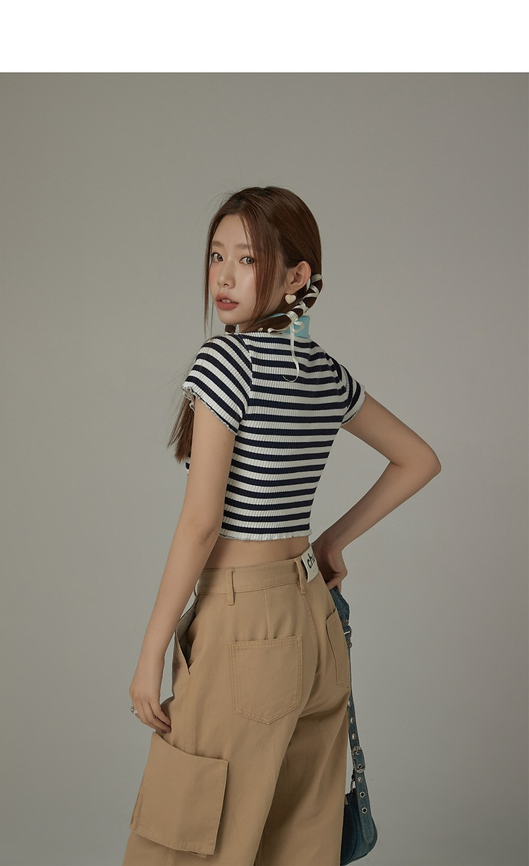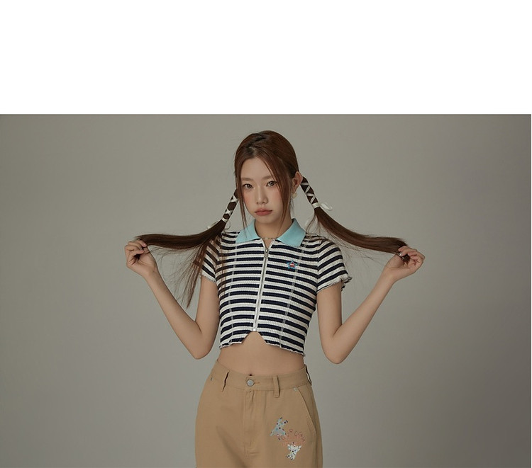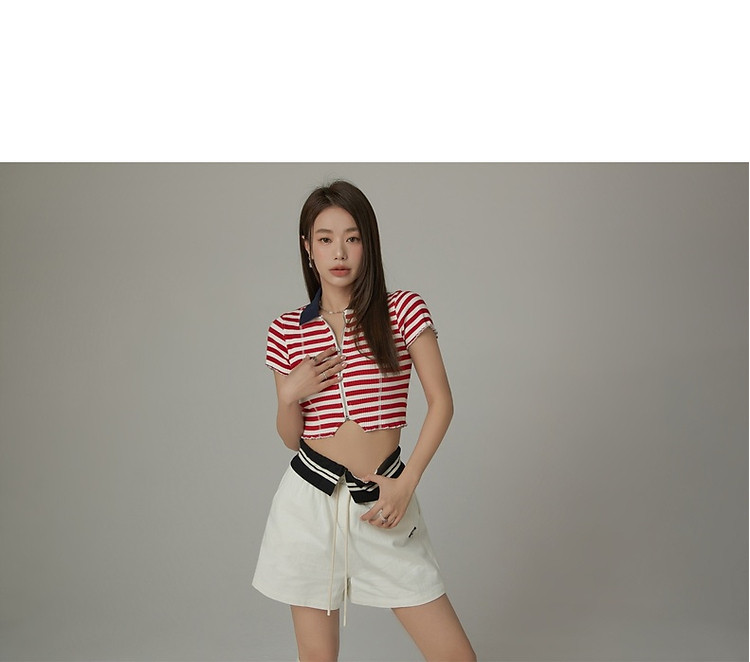 商品名称:条纹拉链T恤女春夏修身显瘦减龄洋气星星短款上衣 271187
