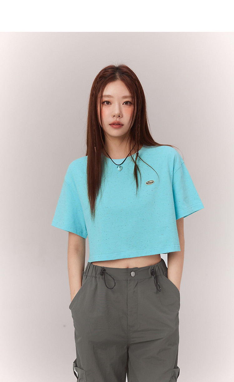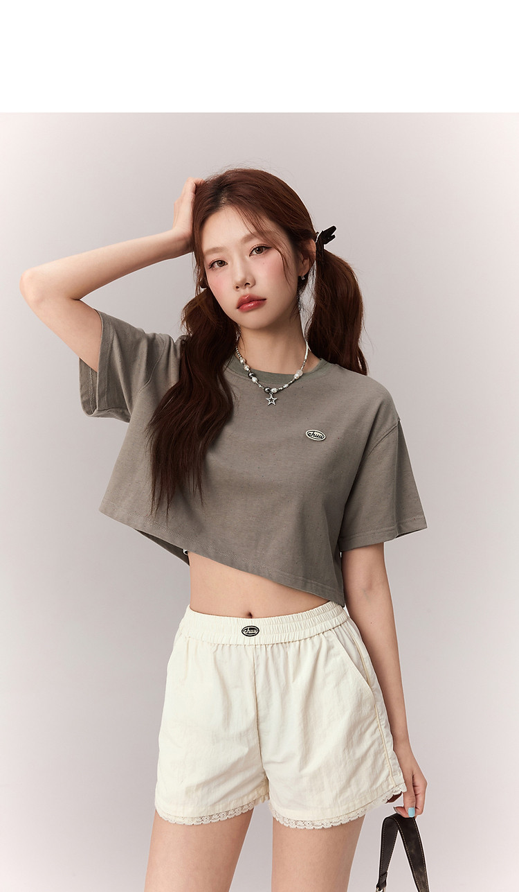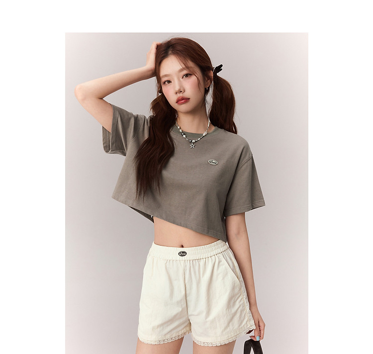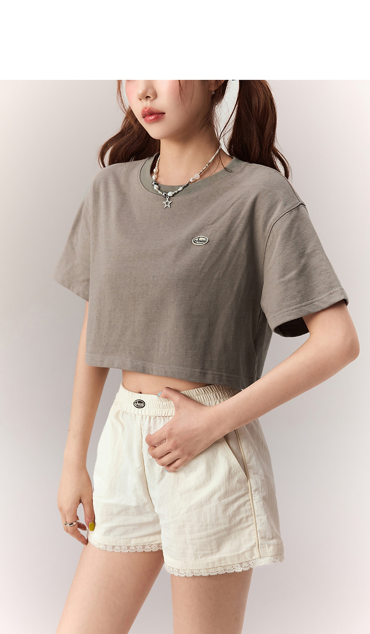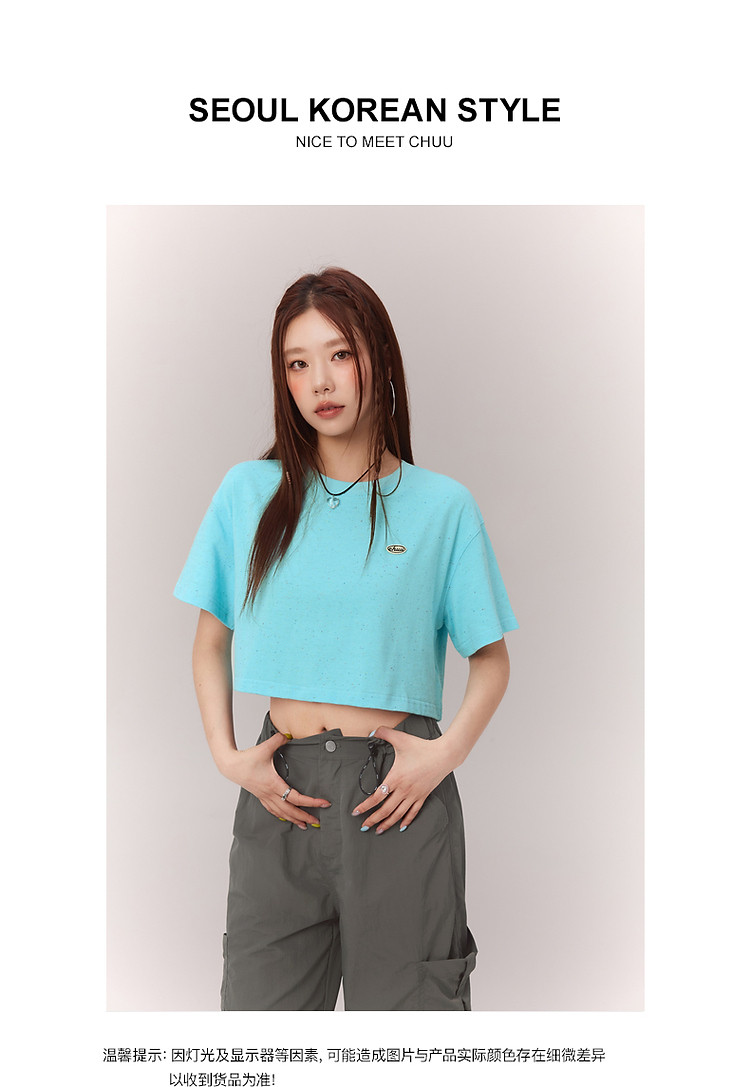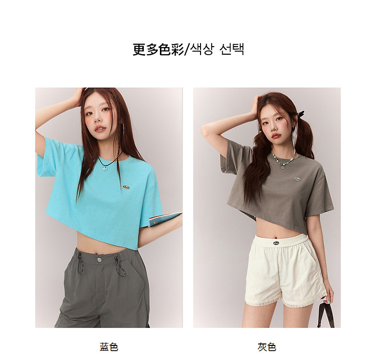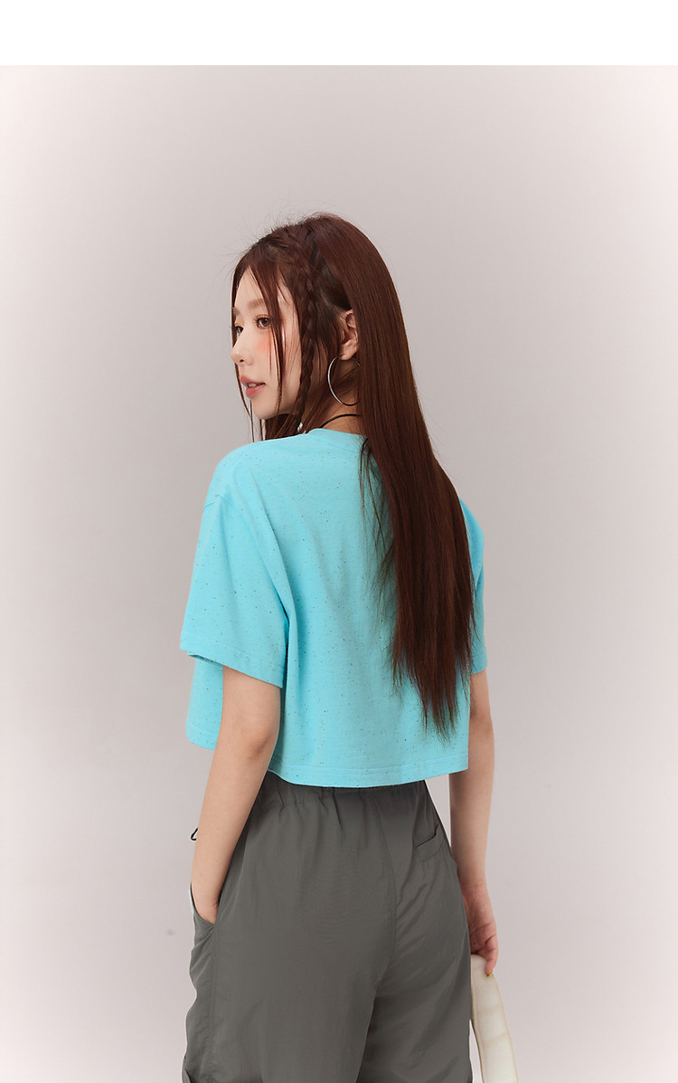 商品名称:贴标字母短袖T恤女2025夏设计感休闲个性漆点短上衣 159251