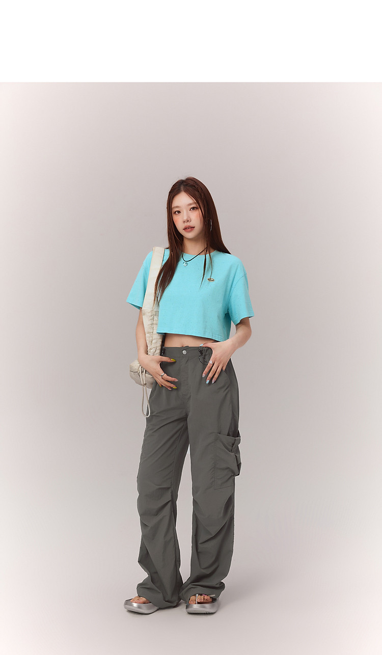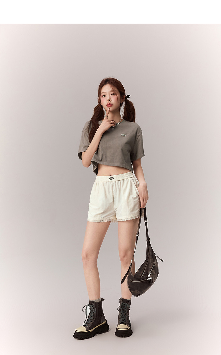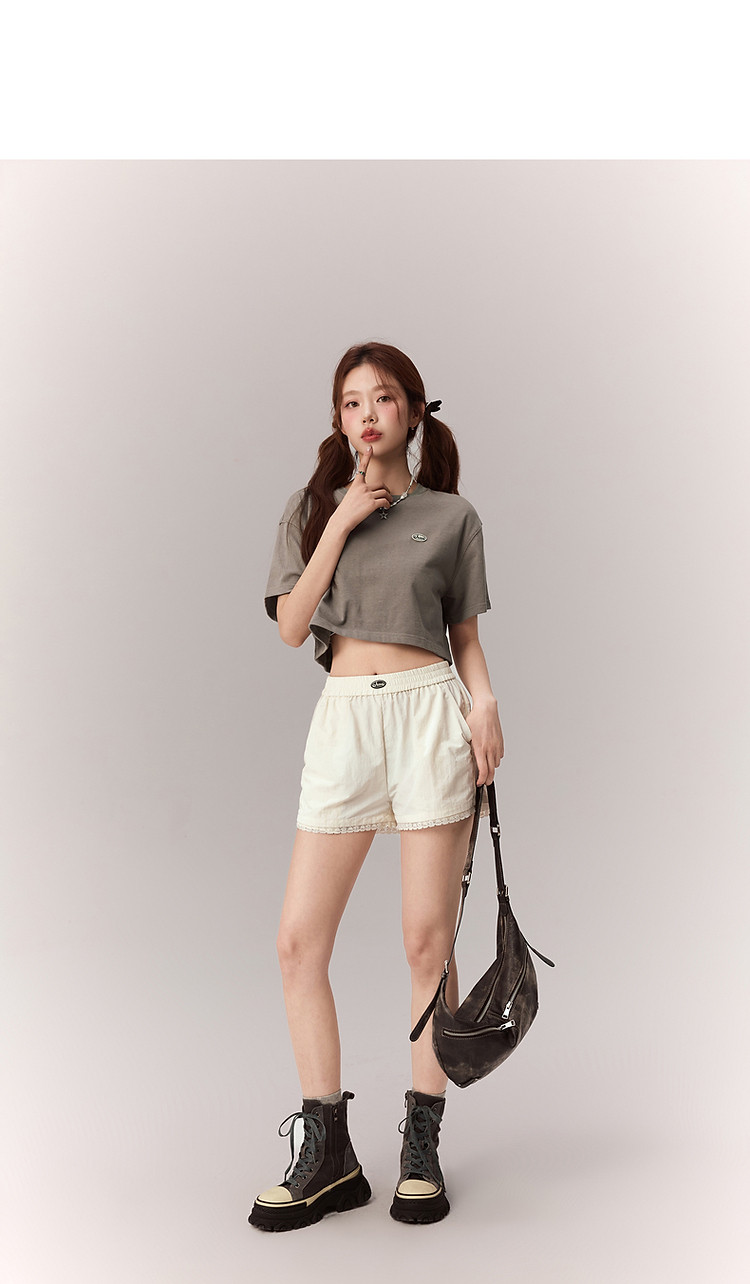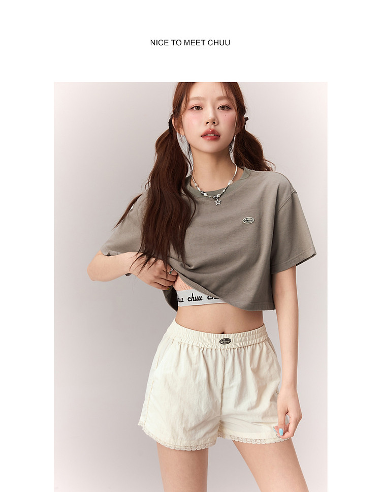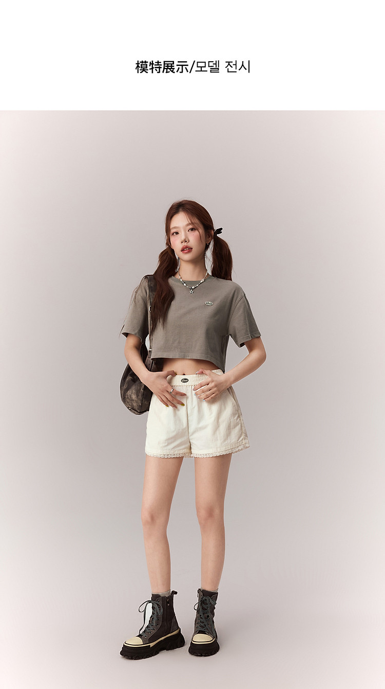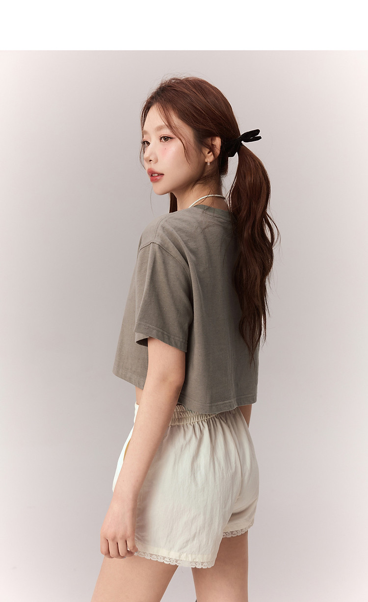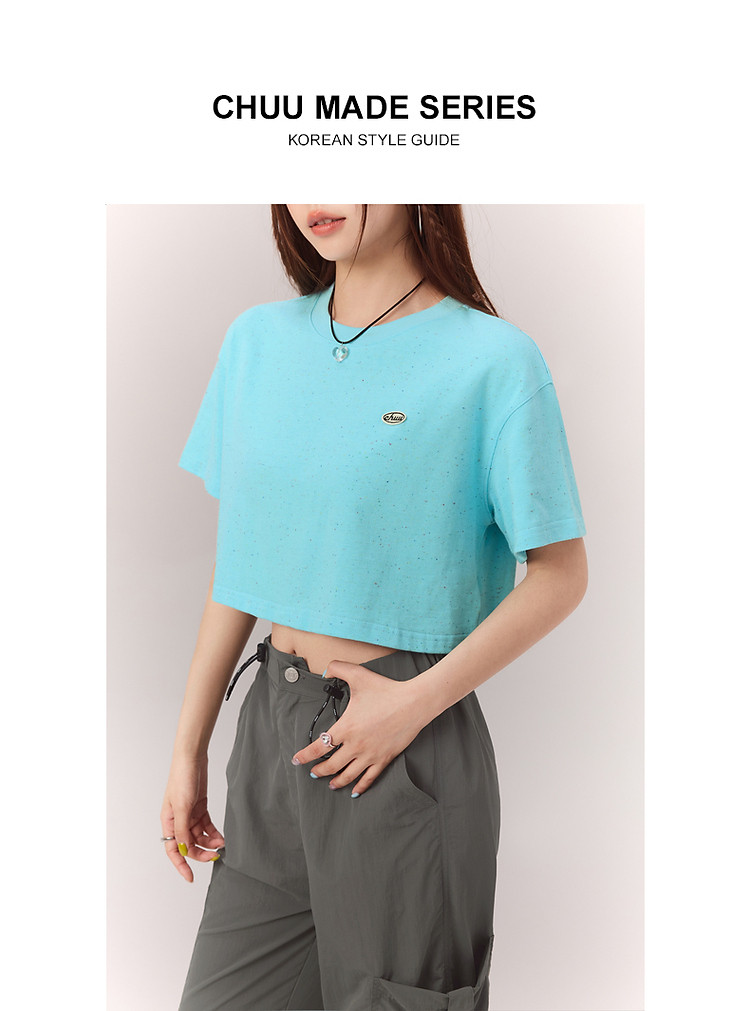 商品名称:贴标字母短袖T恤女2025夏设计感休闲个性漆点短上衣 159251