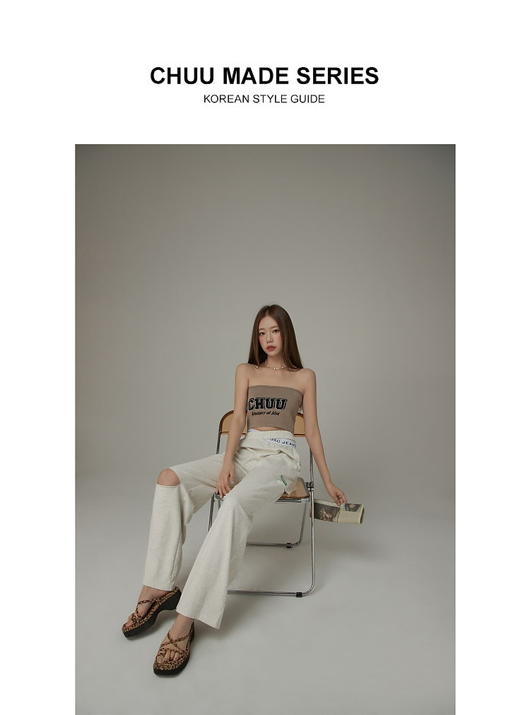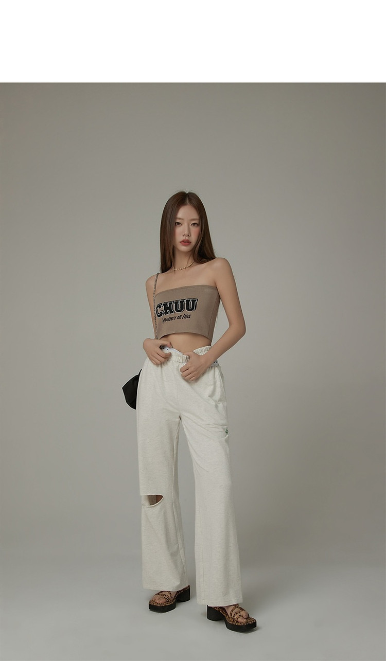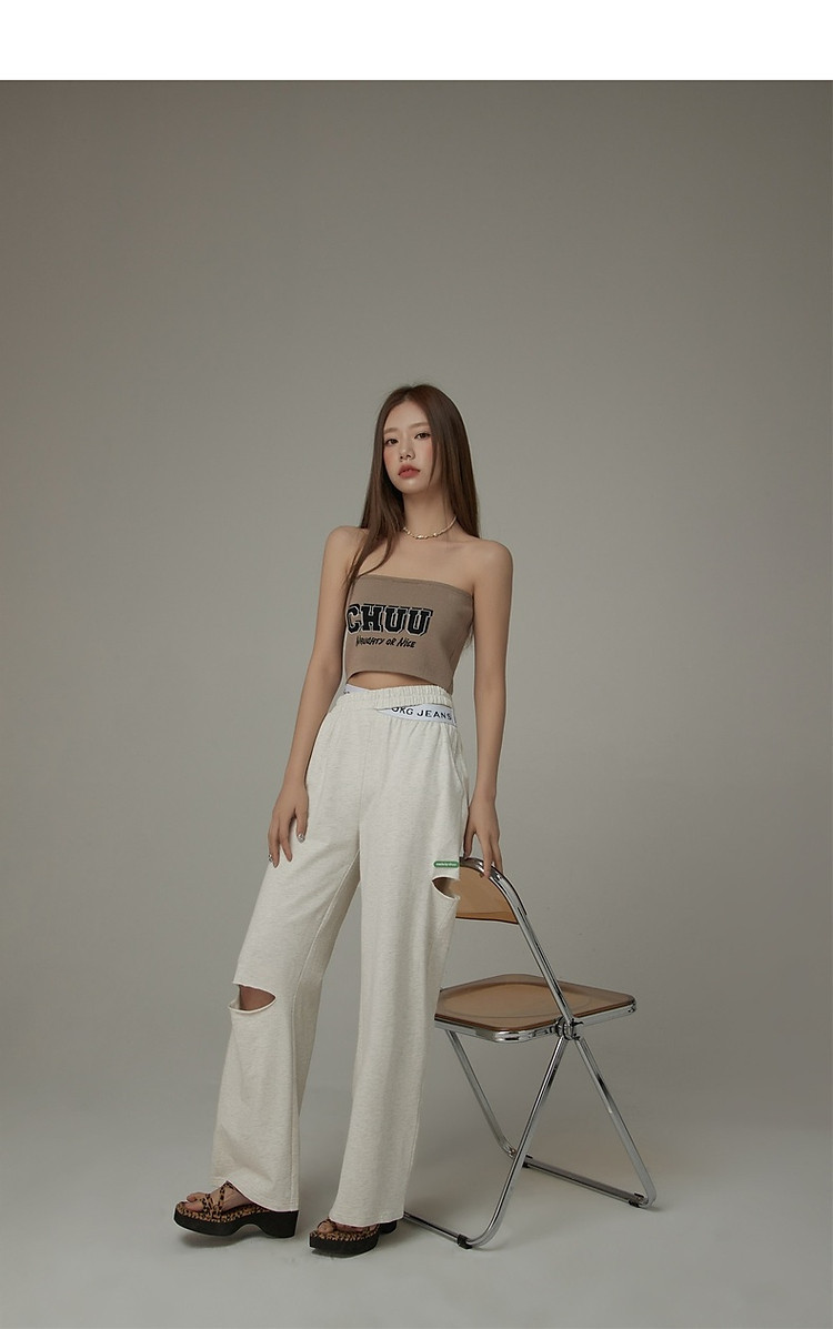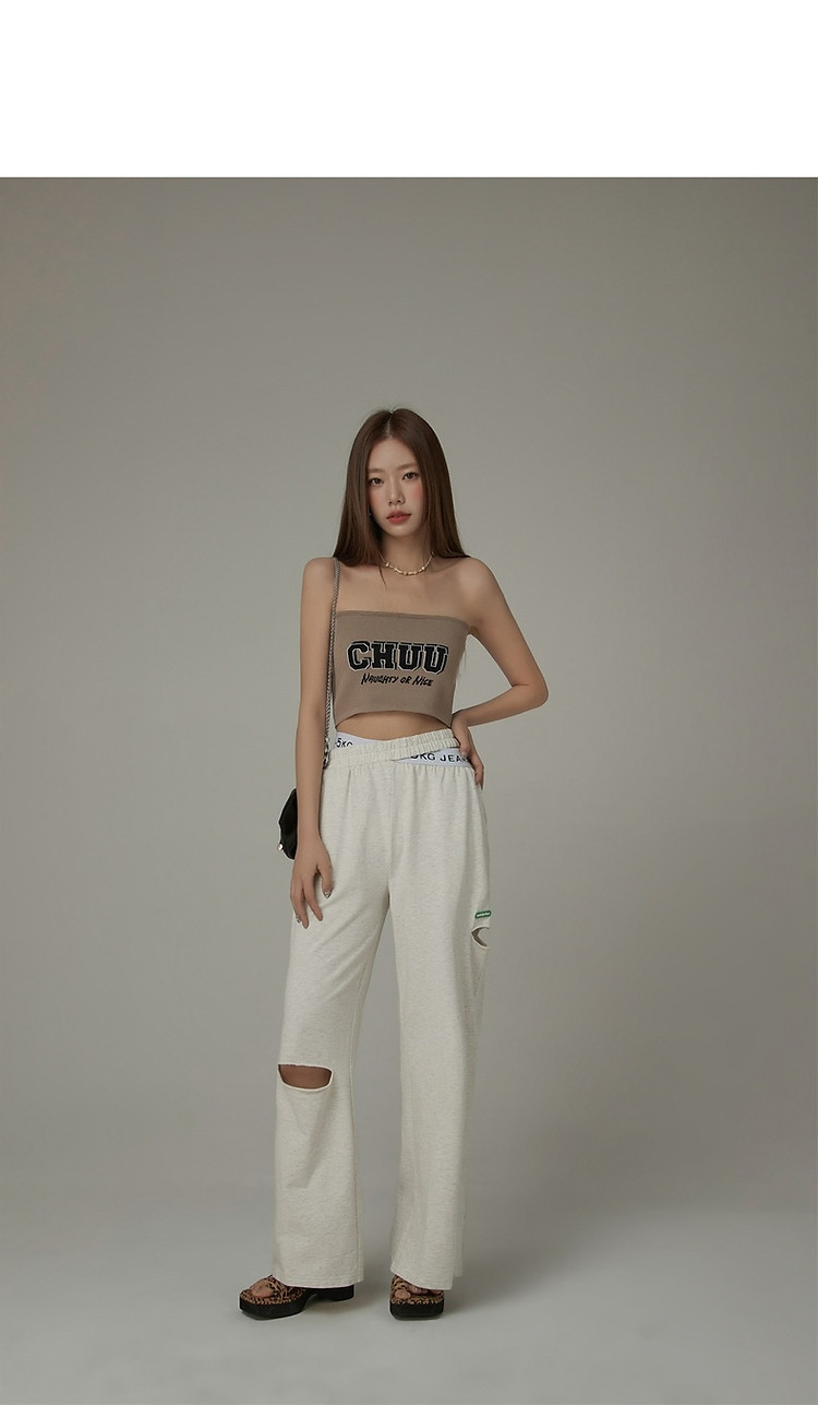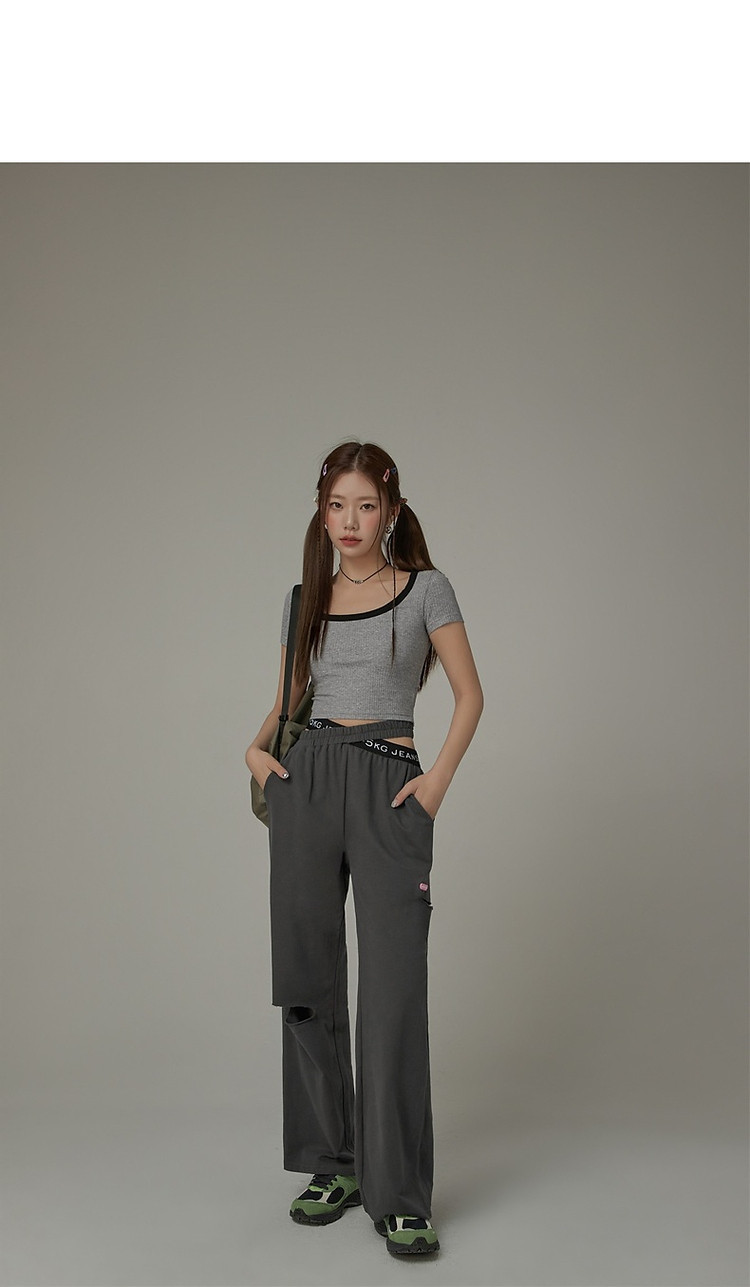 商品名称:破洞阔腿休闲裤女士2025春夏辣妹交叉腰拼接运动长裤子 343059