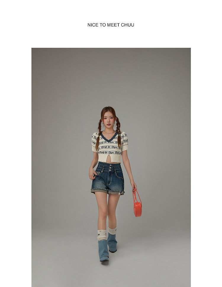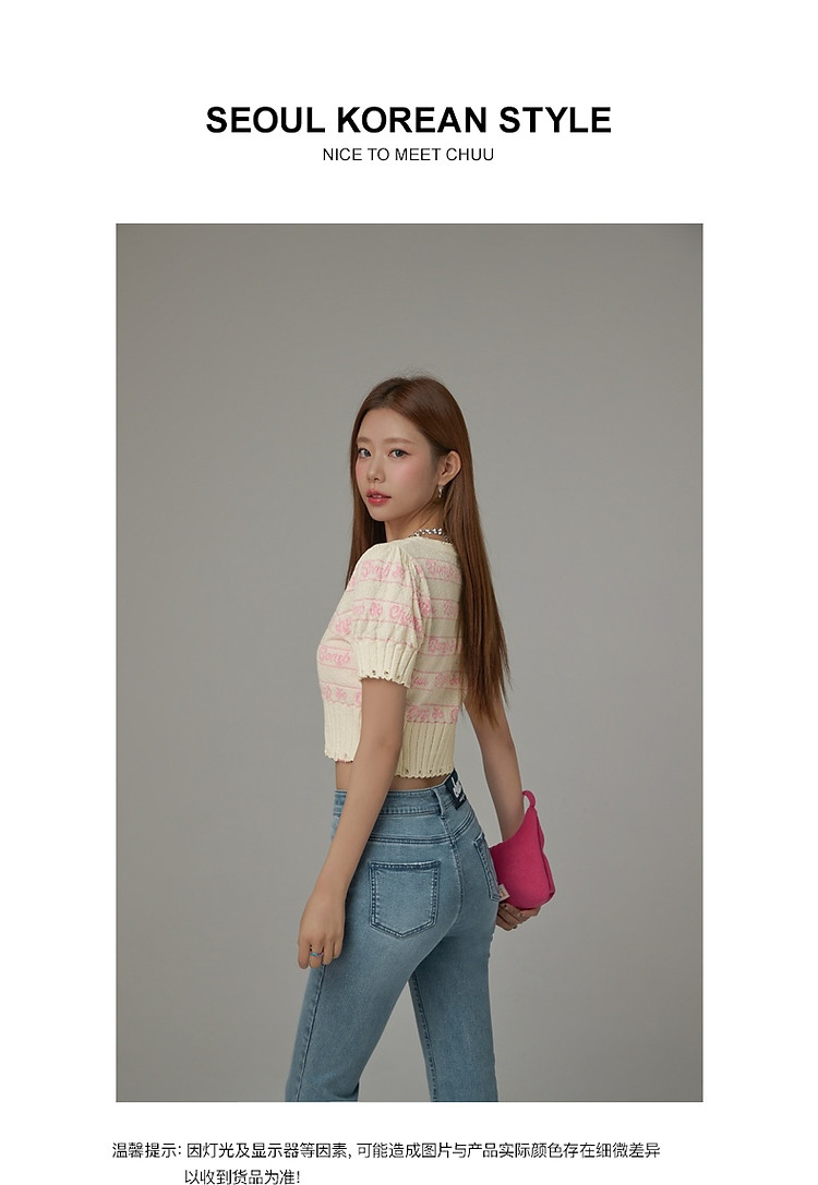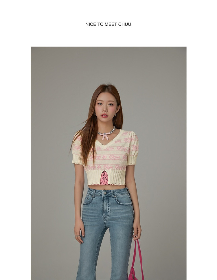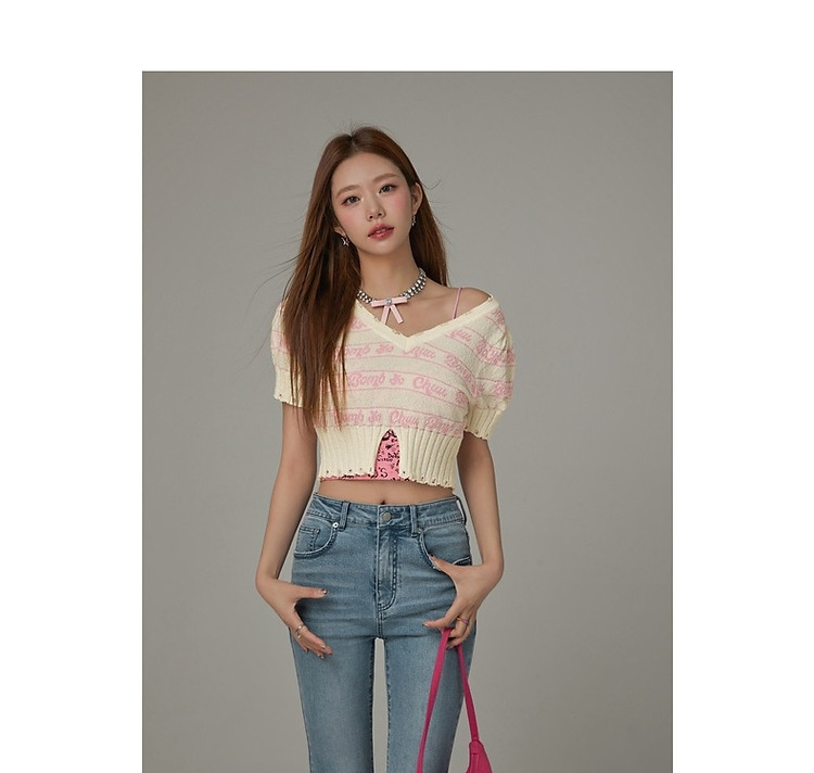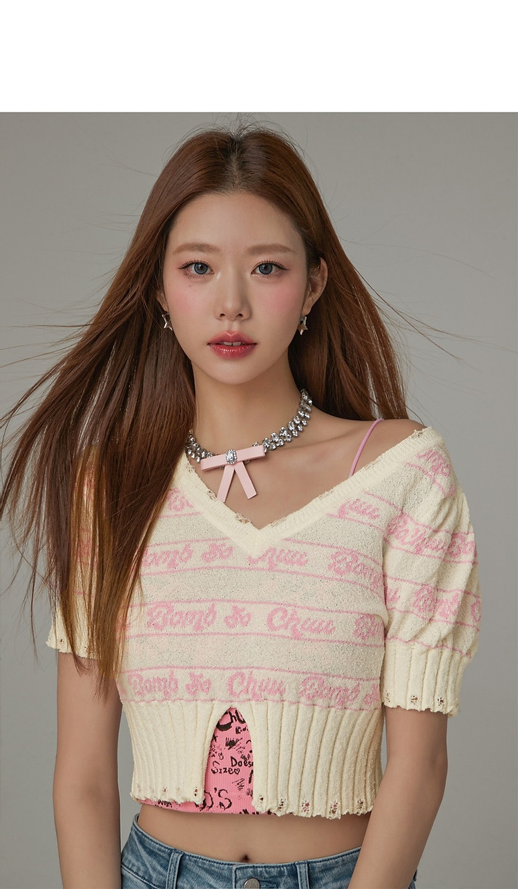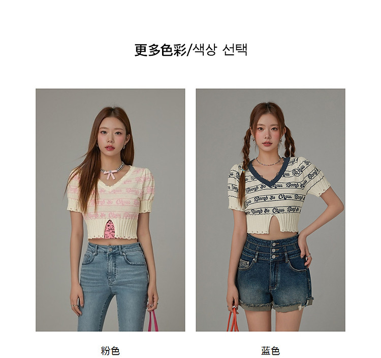 商品名称:字母提花撞色2025夏磨破开叉短袖针织衫 021907