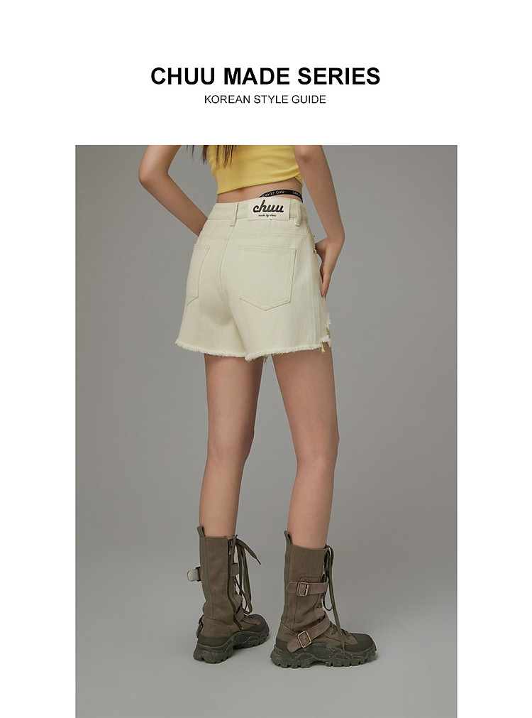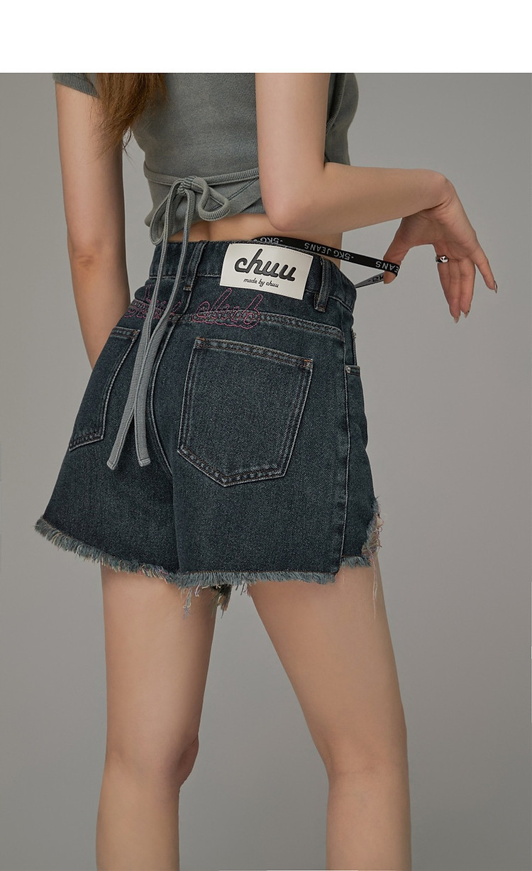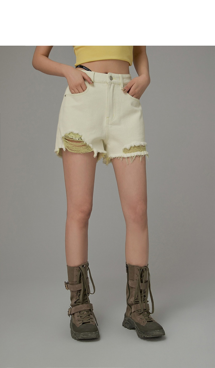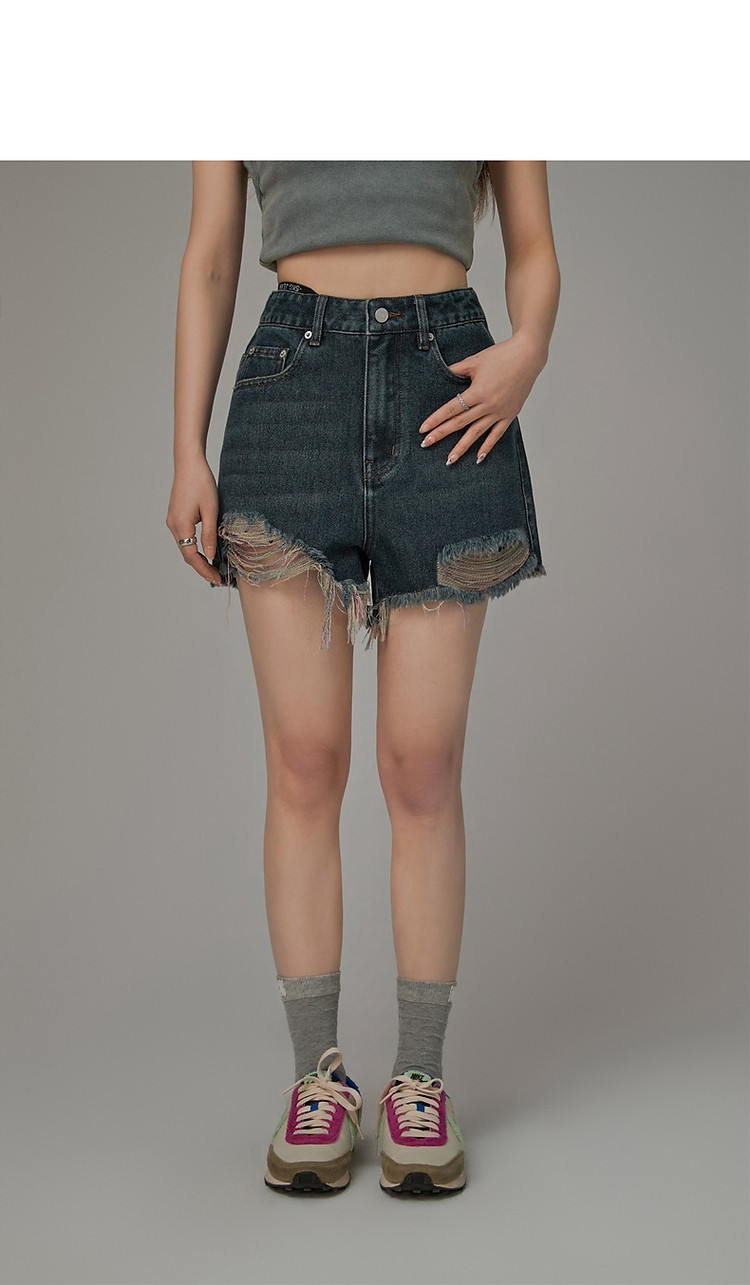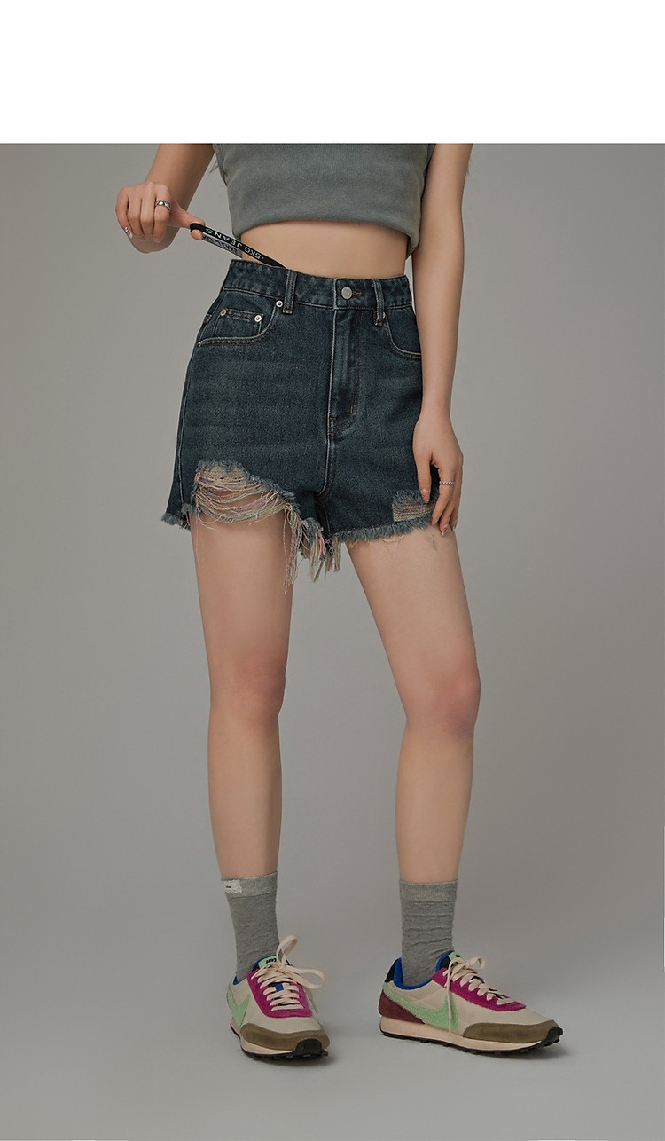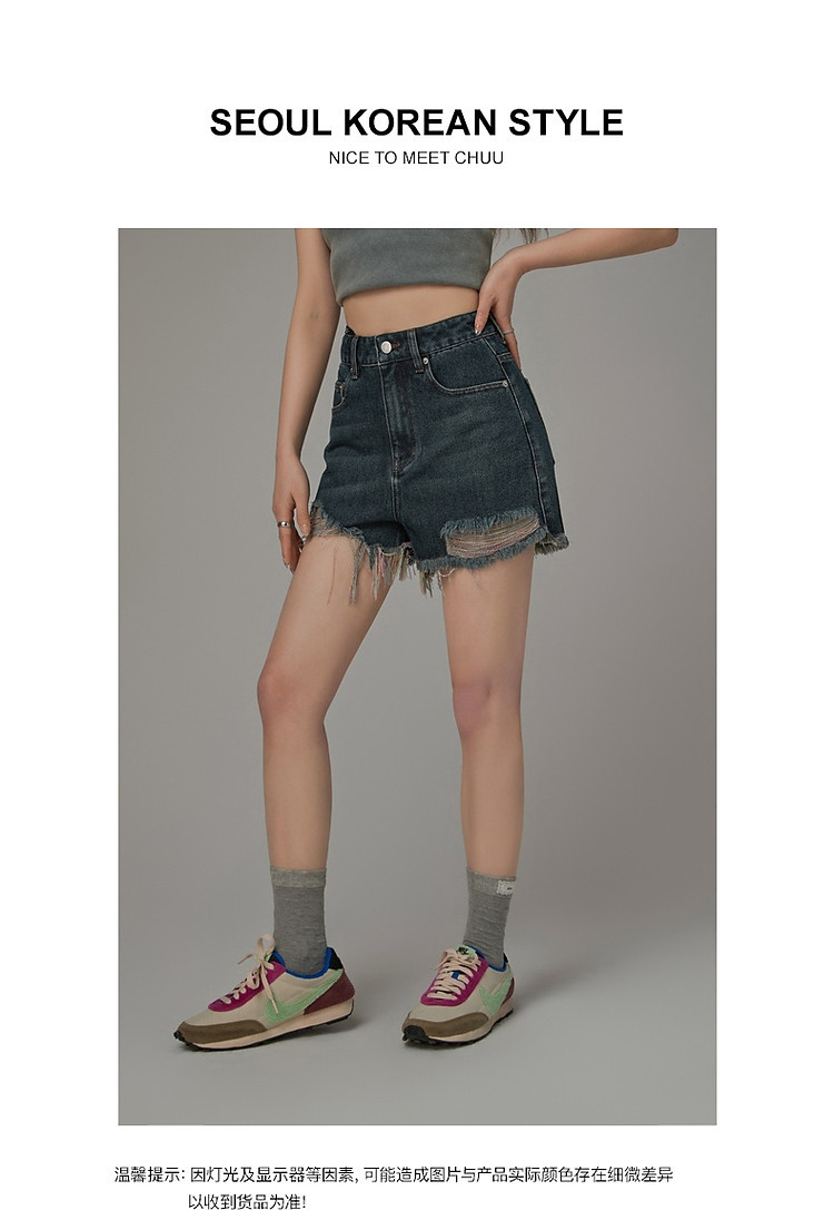 高腰磨破短款牛仔裤女2025夏不规则毛边破洞设计短裤 443731