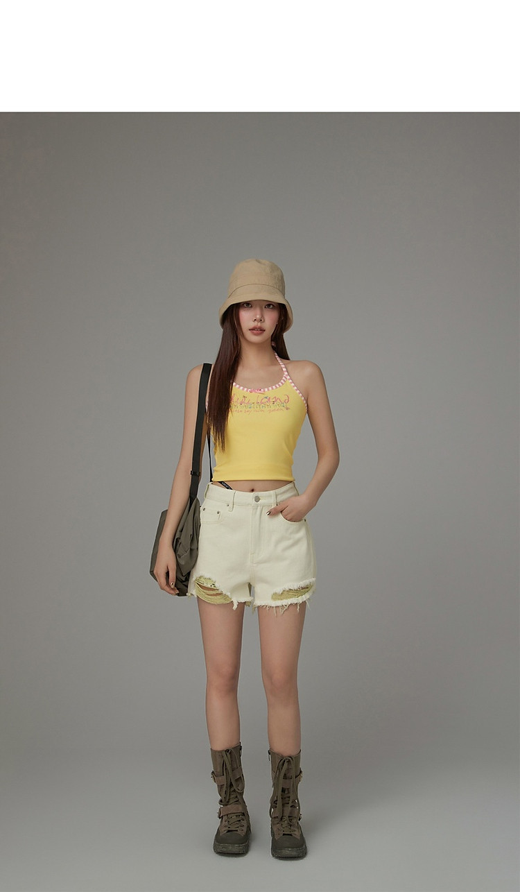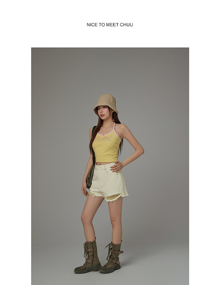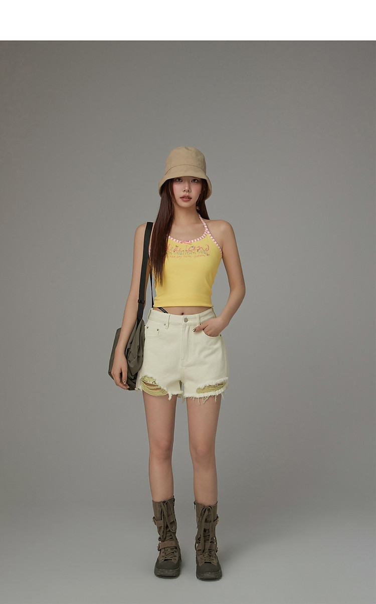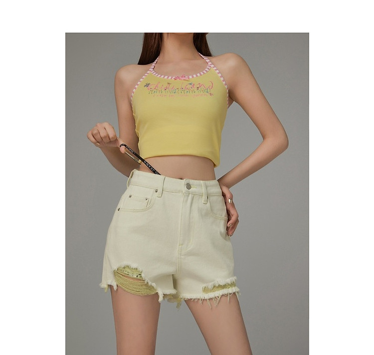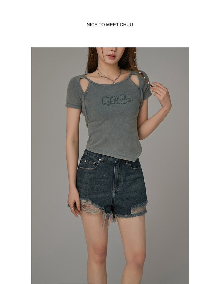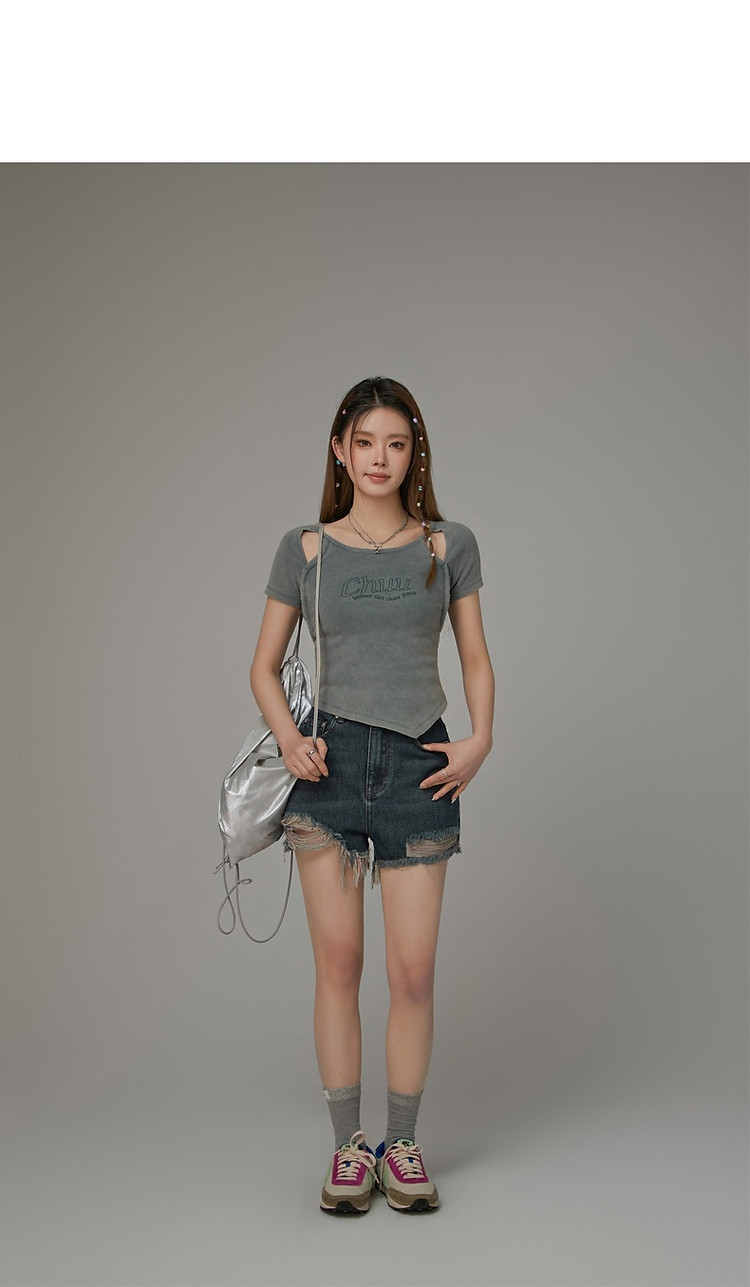 高腰磨破短款牛仔裤女2025夏不规则毛边破洞设计短裤 443731