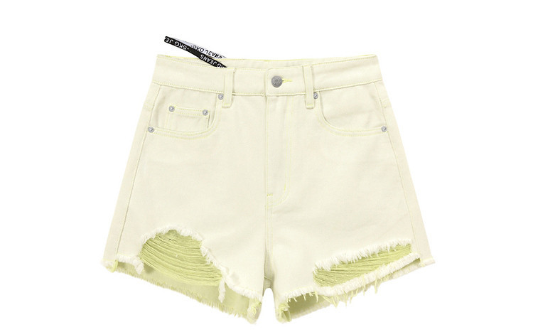 商品名称:高腰磨破短款牛仔裤女2025夏不规则毛边破洞设计短裤 443731