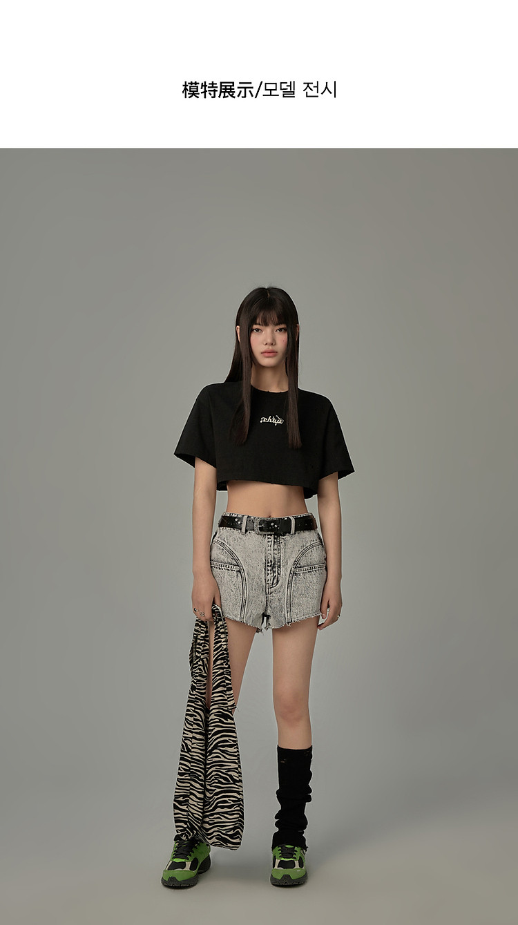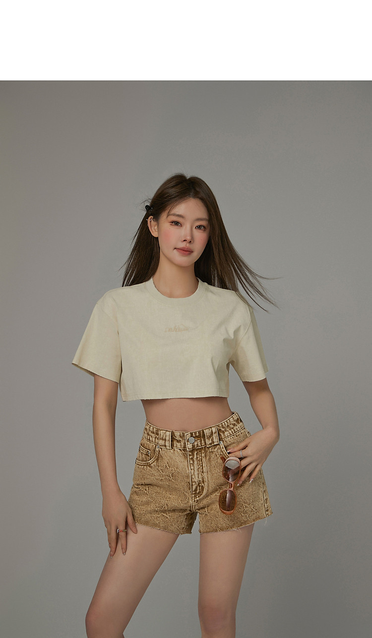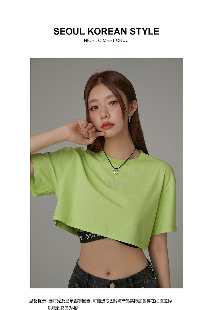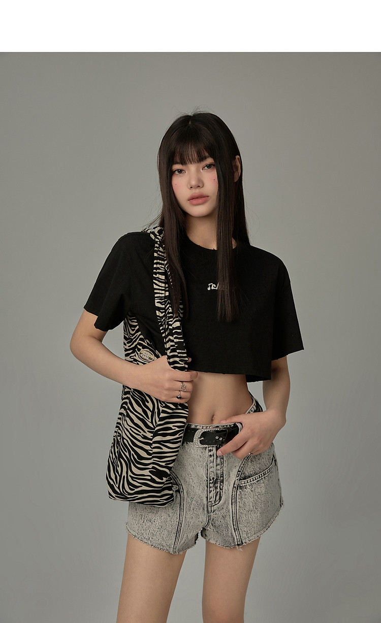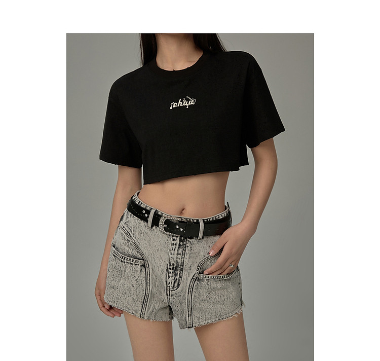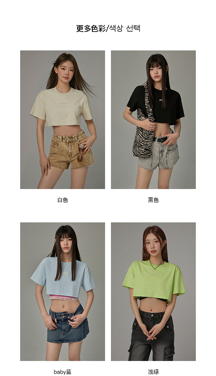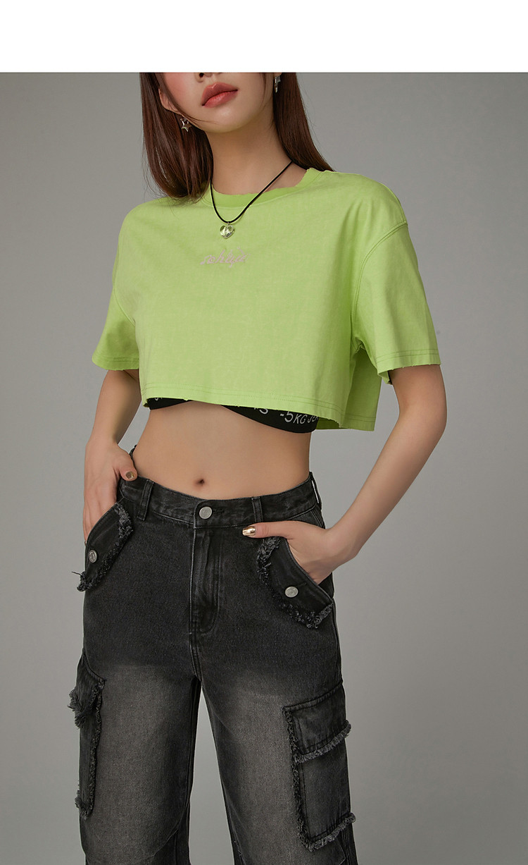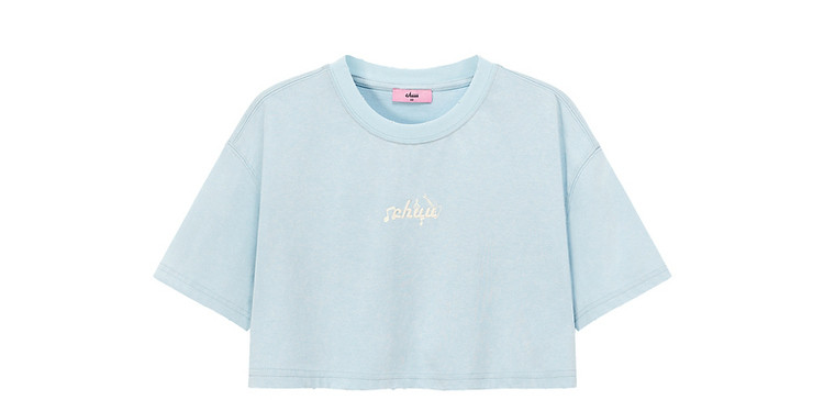 商品名称:字母音符刺绣T恤女2025夏辣妹磨破短袖宽松短上衣 384531