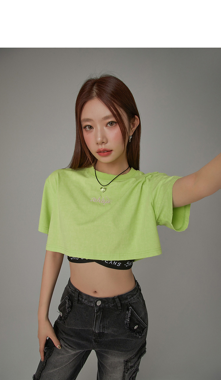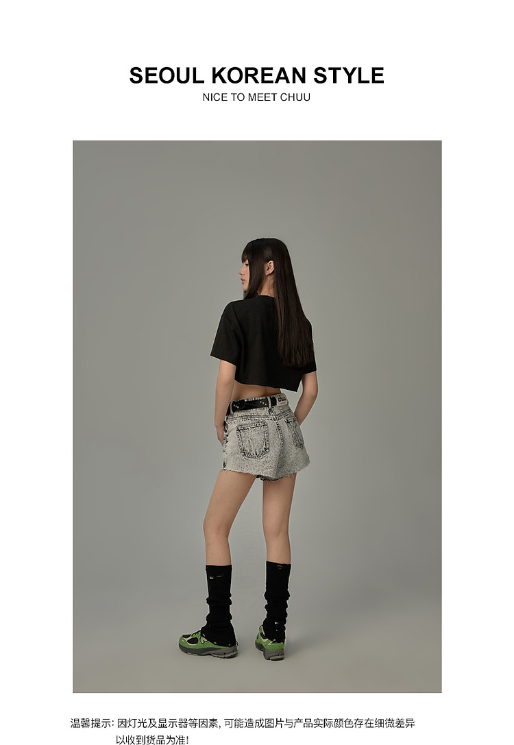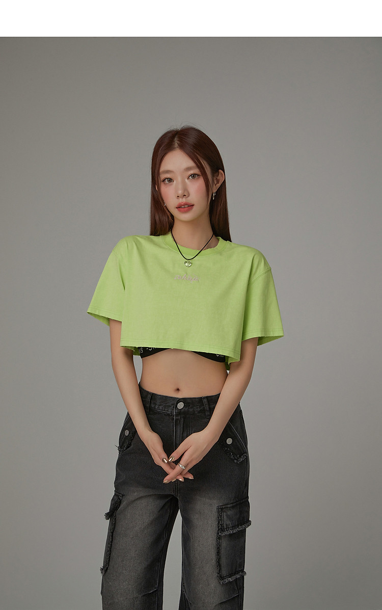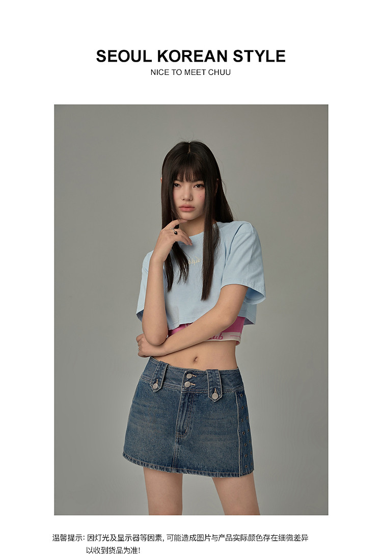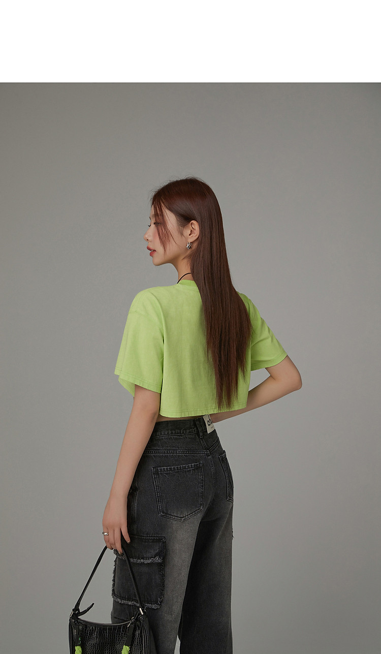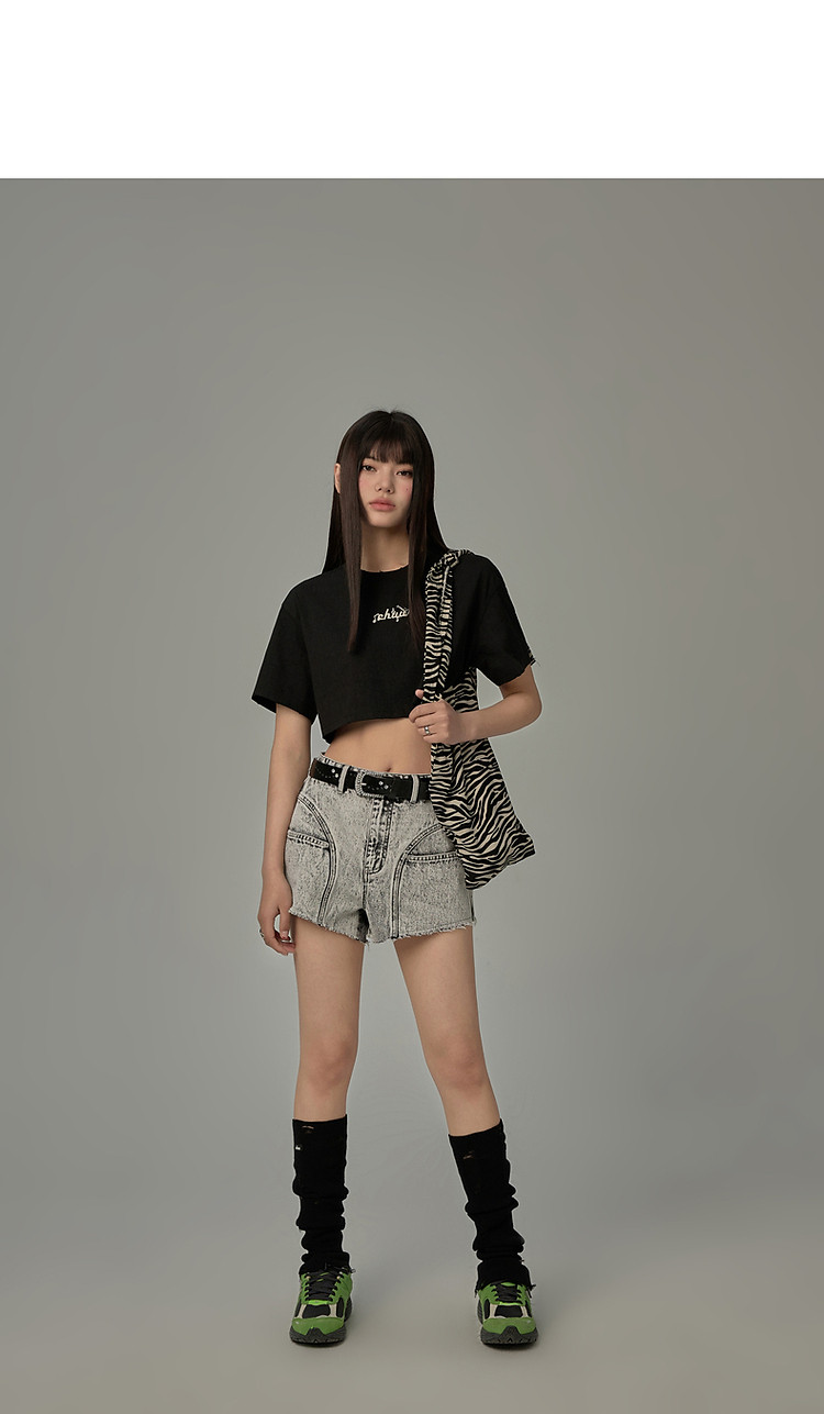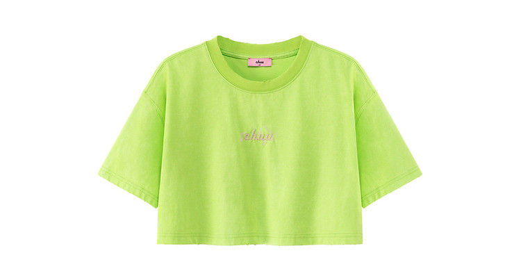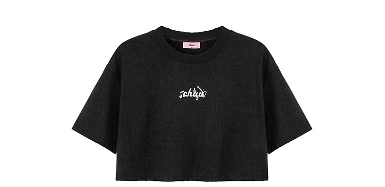商品名称:字母音符刺绣T恤女2025夏辣妹磨破短袖宽松短上衣 384531