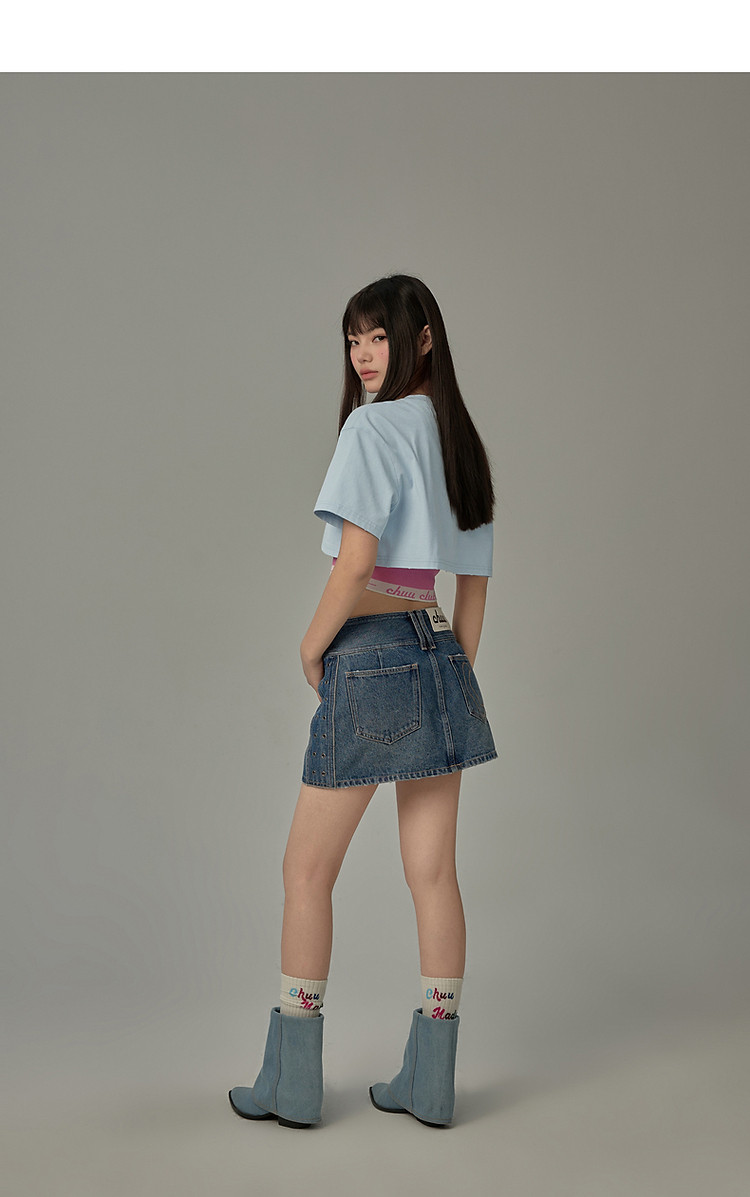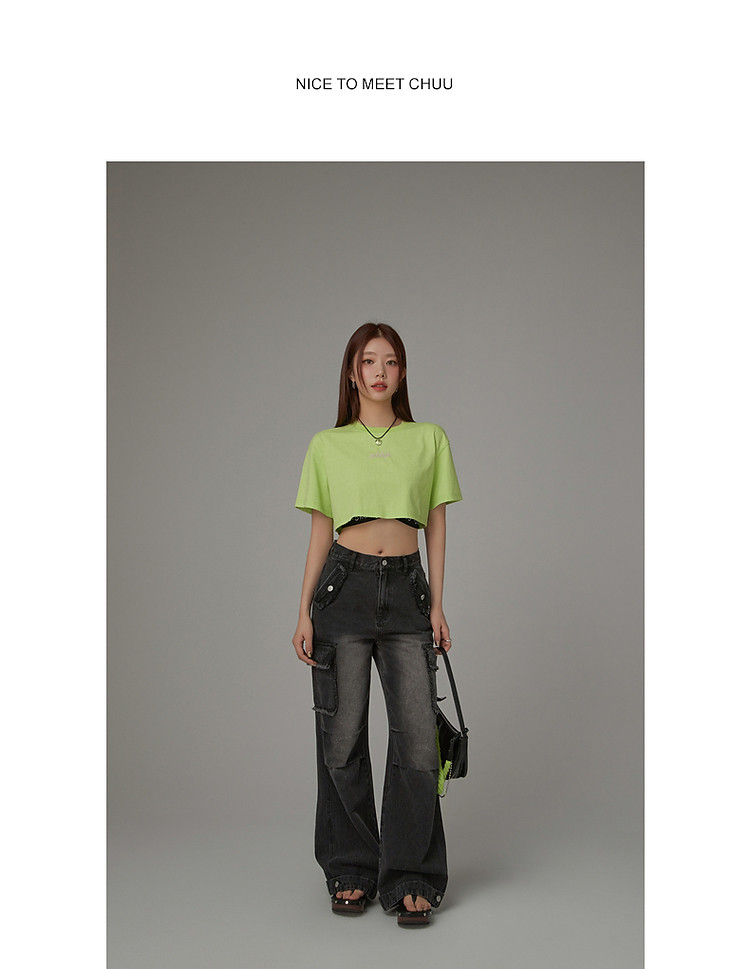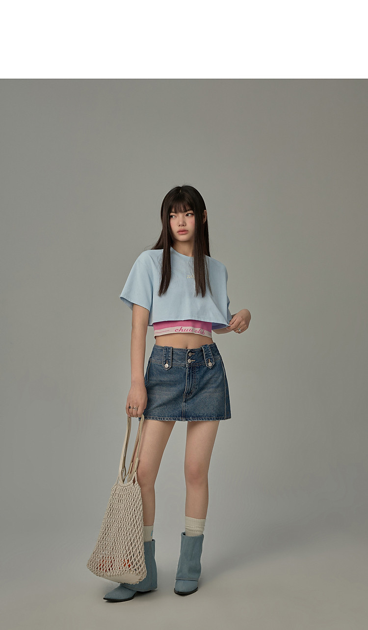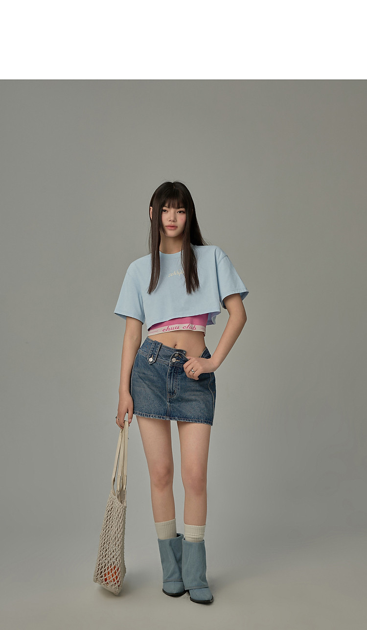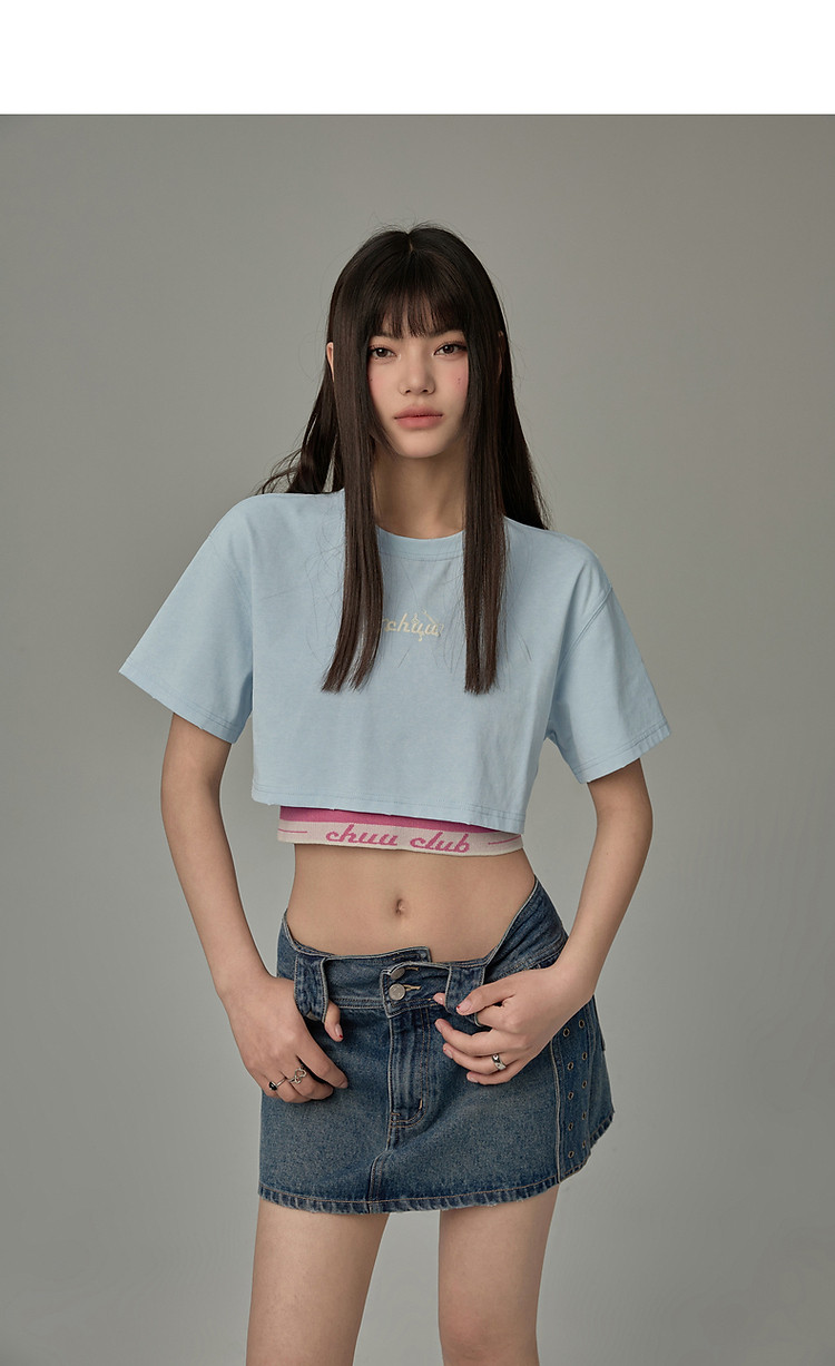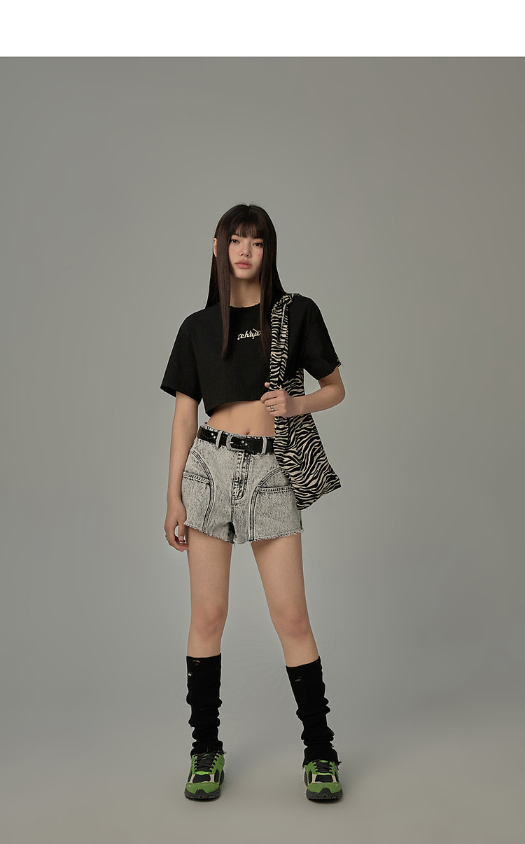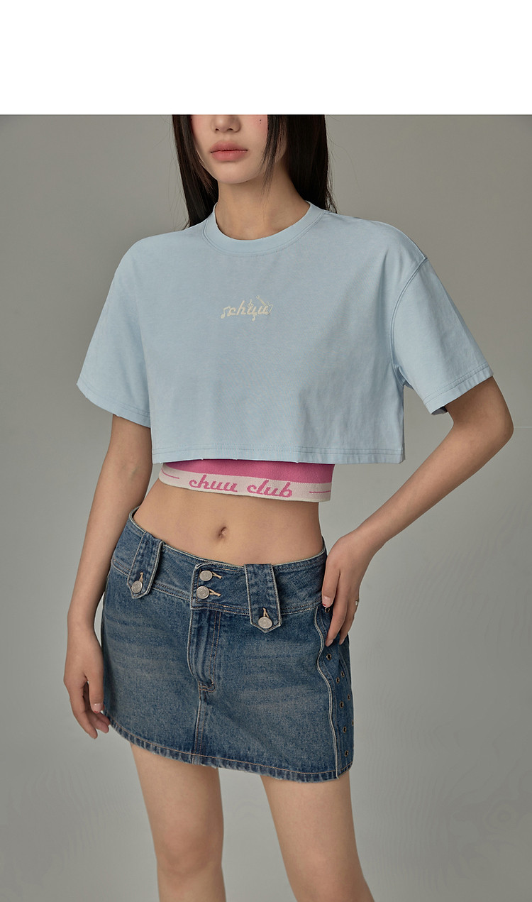 商品名称:字母音符刺绣T恤女2025夏辣妹磨破短袖宽松短上衣 384531