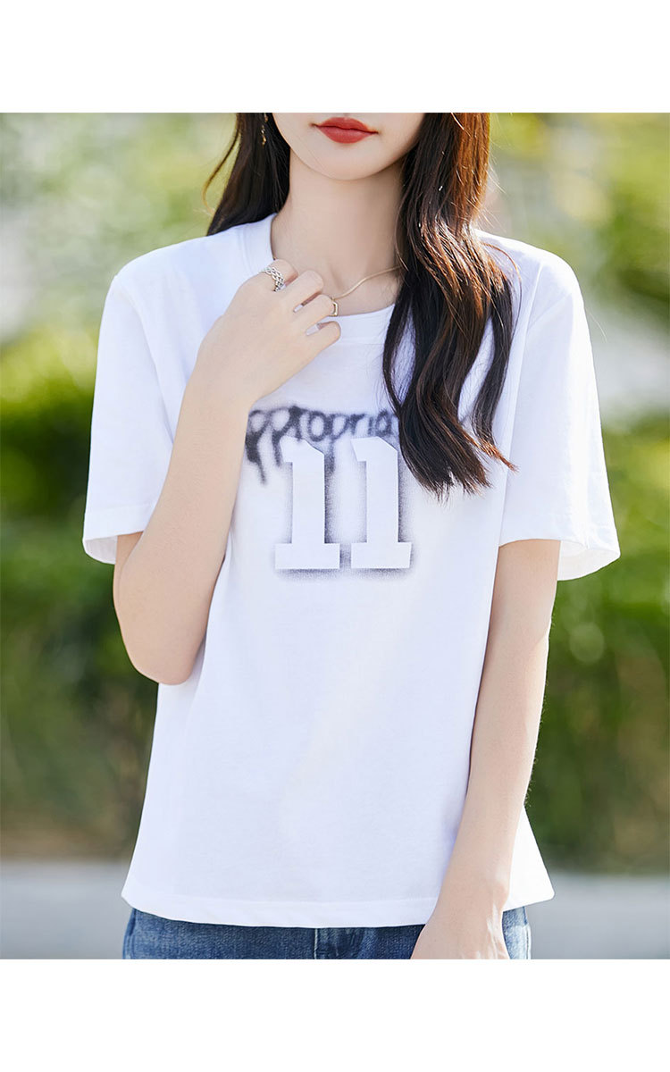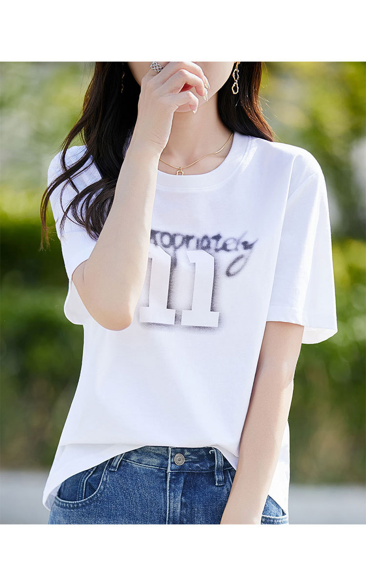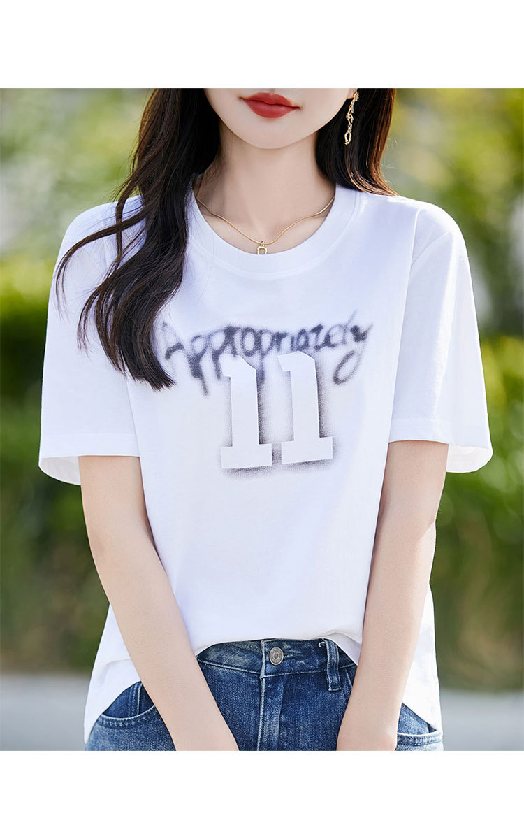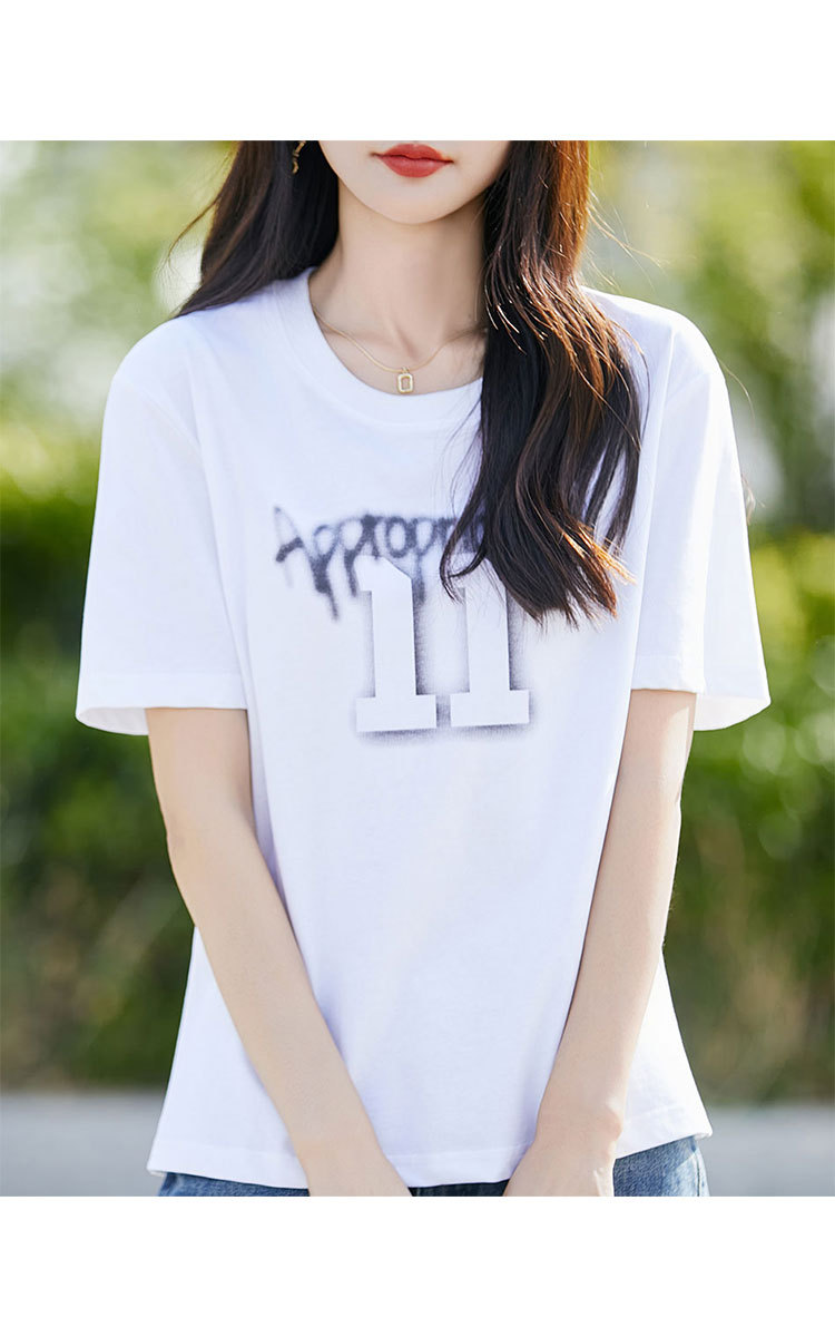 商品名称:【棉感T血衫】夏装女士休闲圆领短袖上衣女款简约字母印花短袖 936863