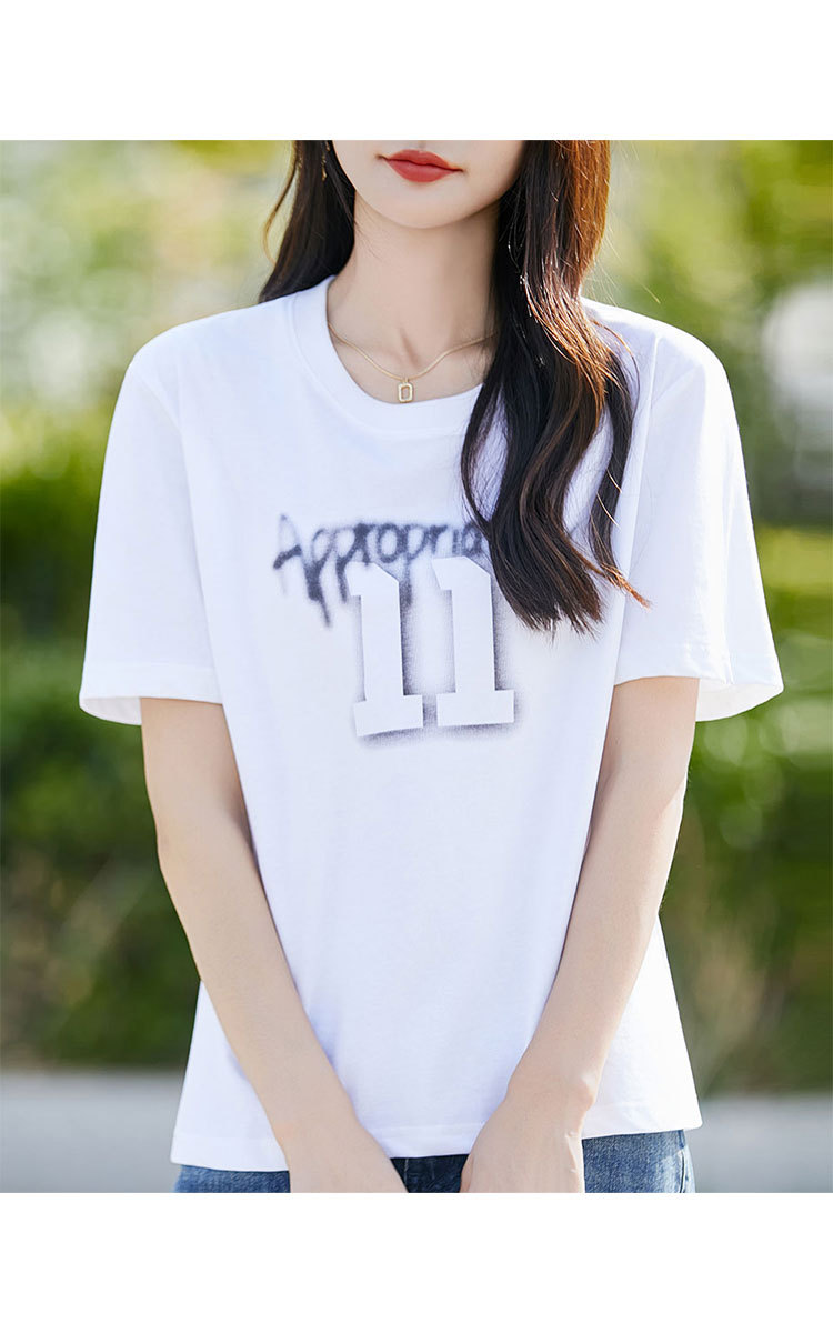 【棉感T血衫】夏装女士休闲圆领短袖上衣女款简约字母印花短袖 936863