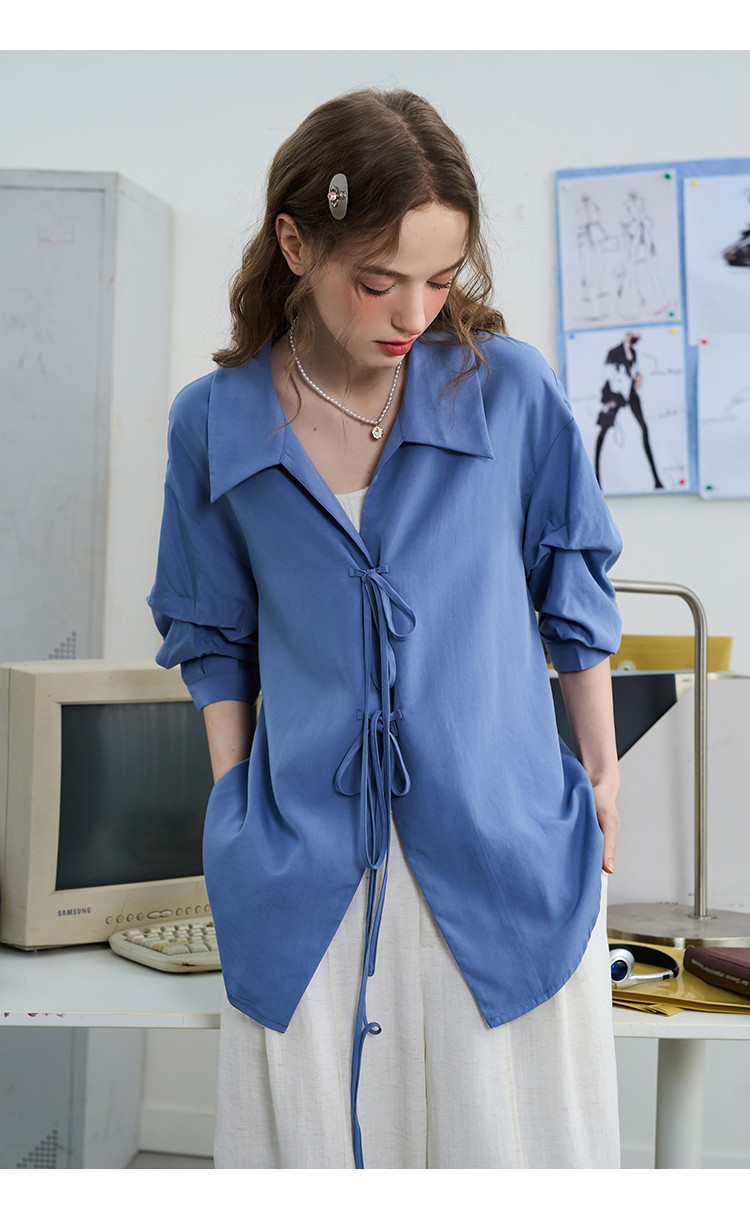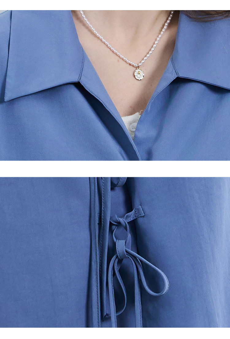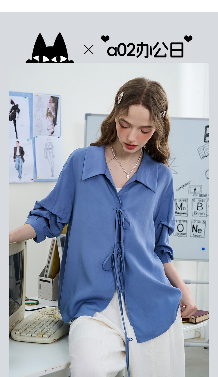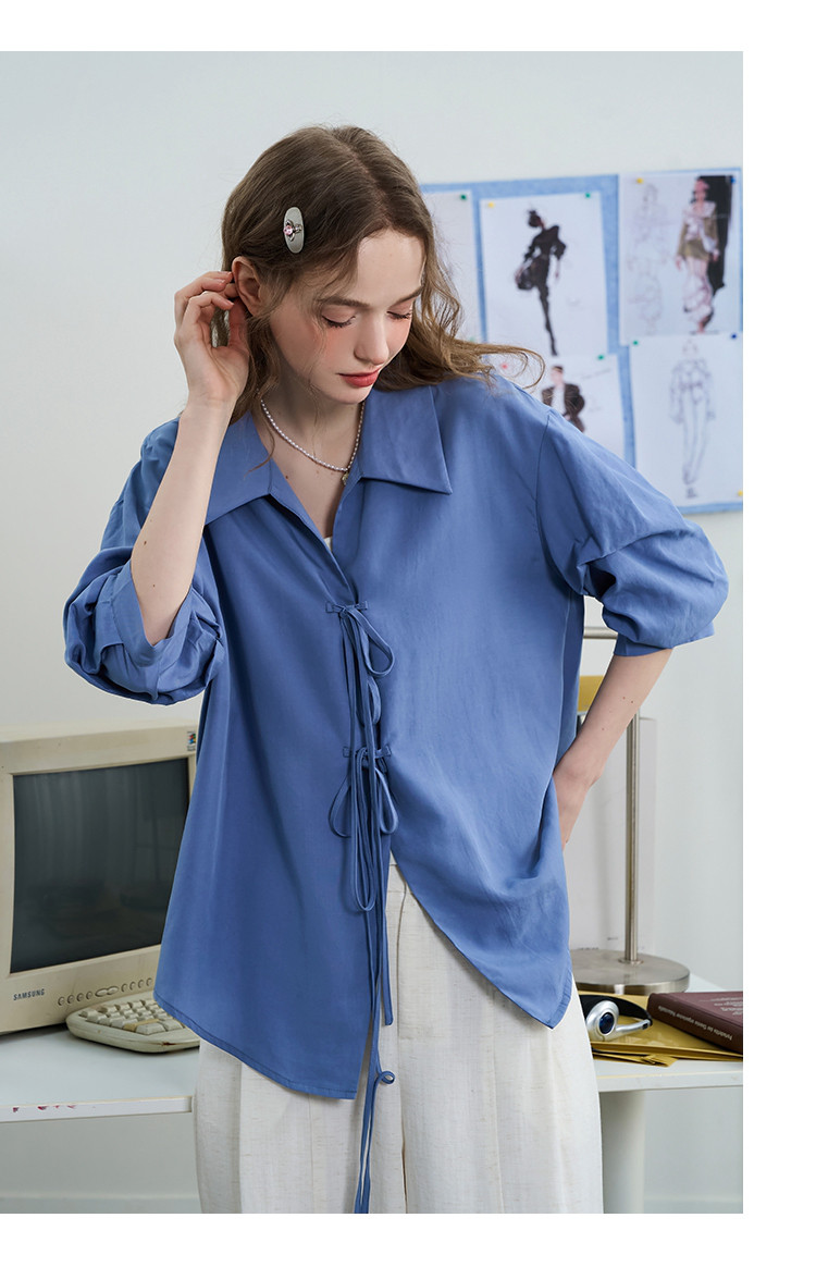 商品名称:设计感系带优雅气质美式复古上衣2025夏季宽松休闲女式衬衫 832349