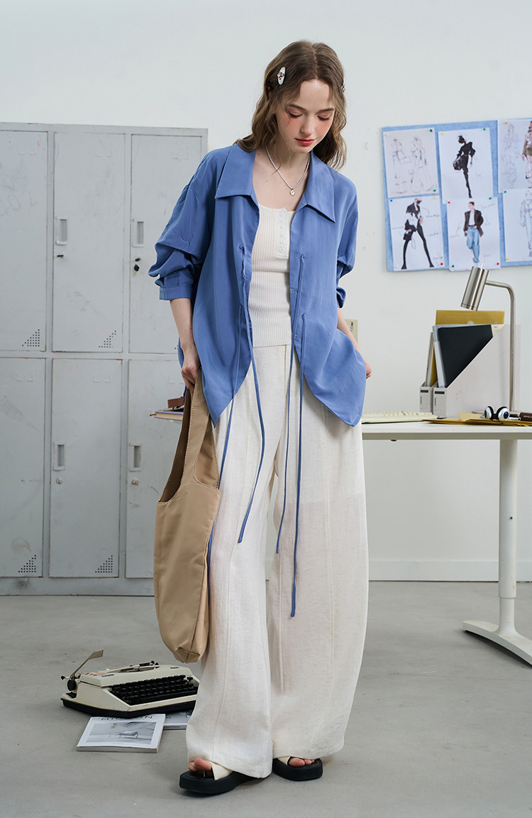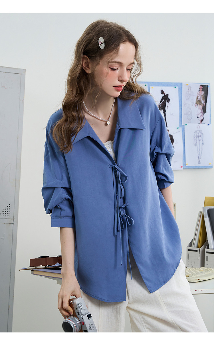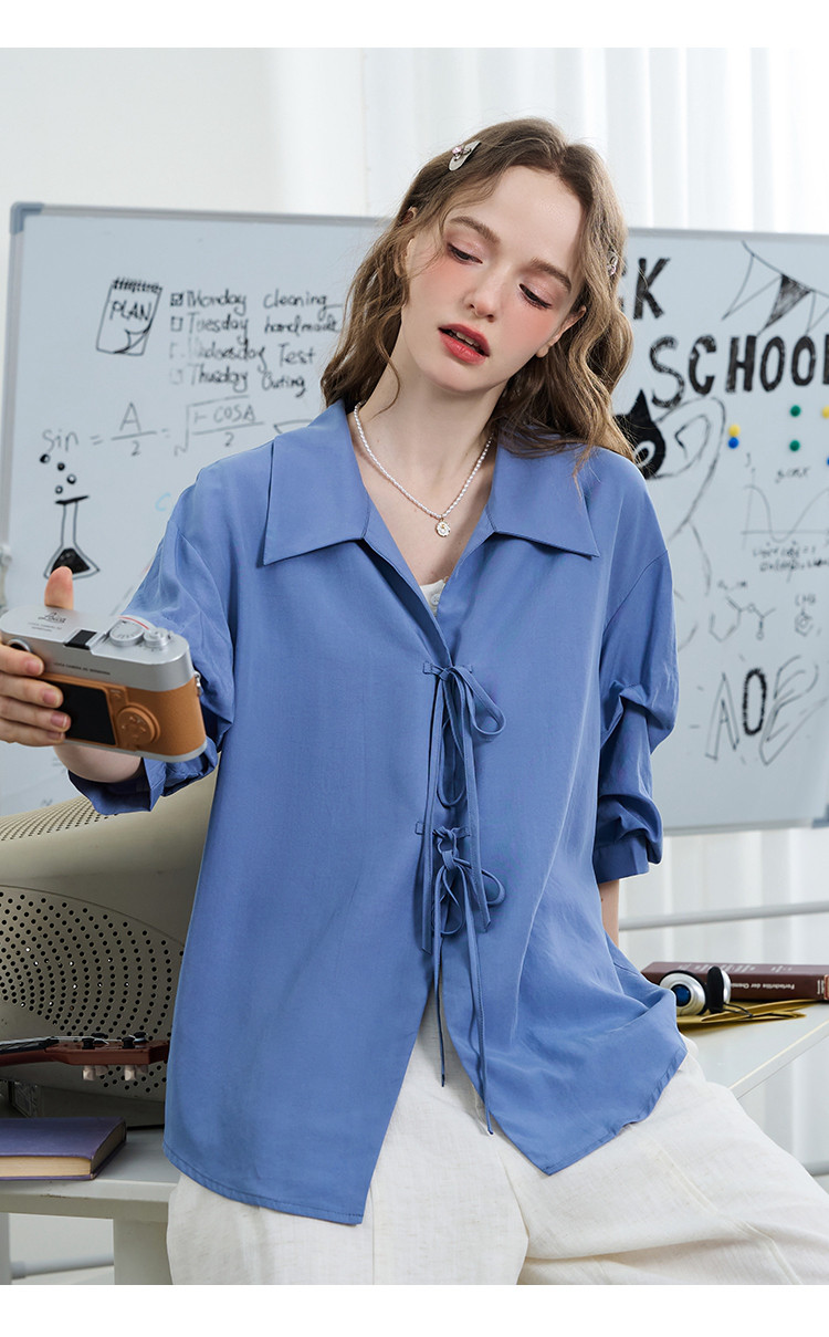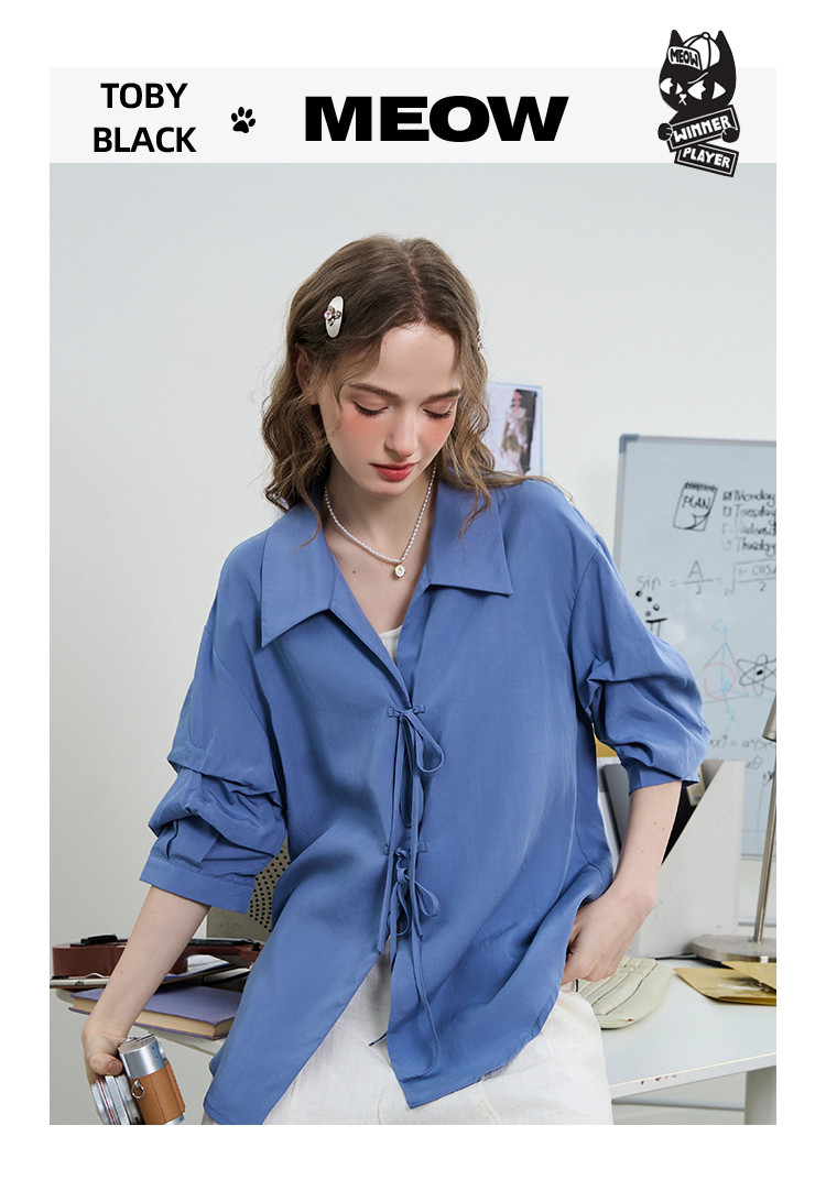 商品名称:设计感系带优雅气质美式复古上衣2025夏季宽松休闲女式衬衫 832349