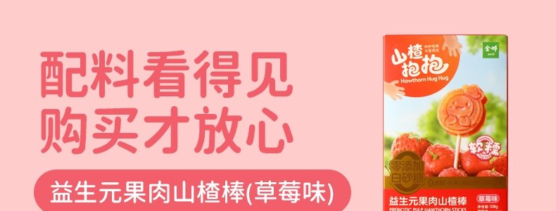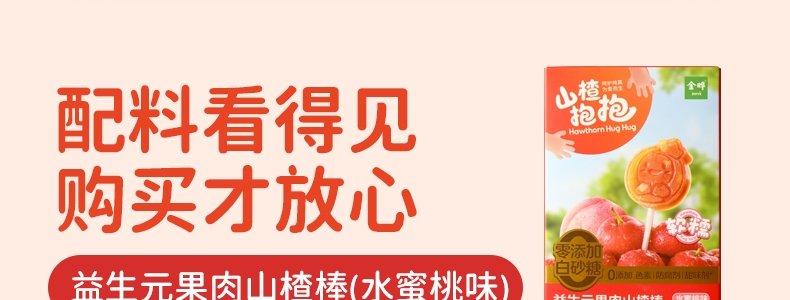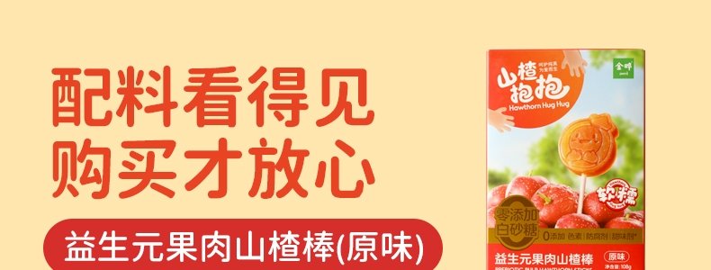 商品名称:金晔 山楂抱抱 益生元果肉山楂棒 108g*3盒(原味+草莓味+水蜜桃味各1盒)