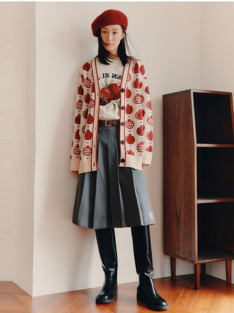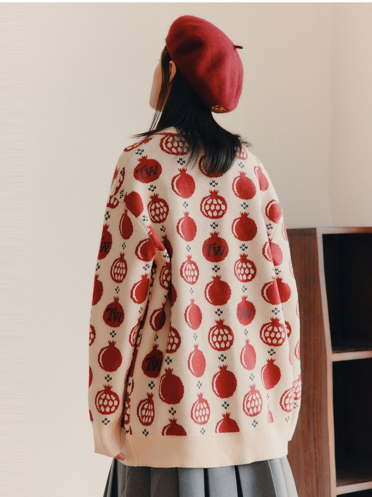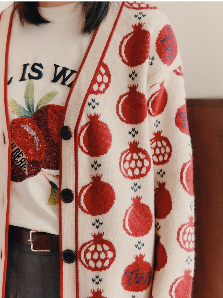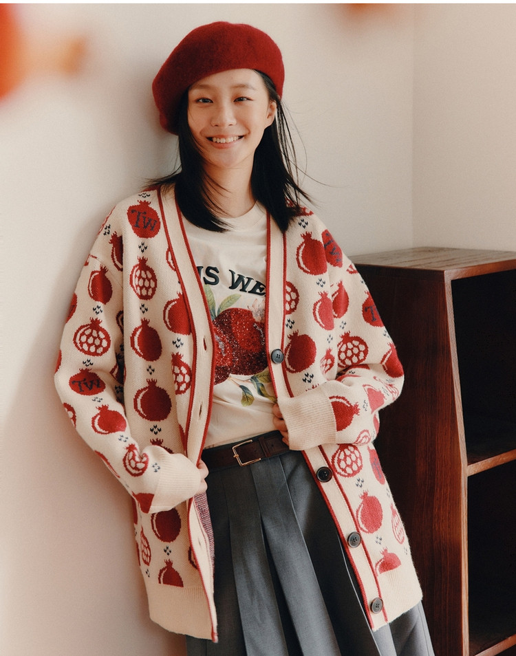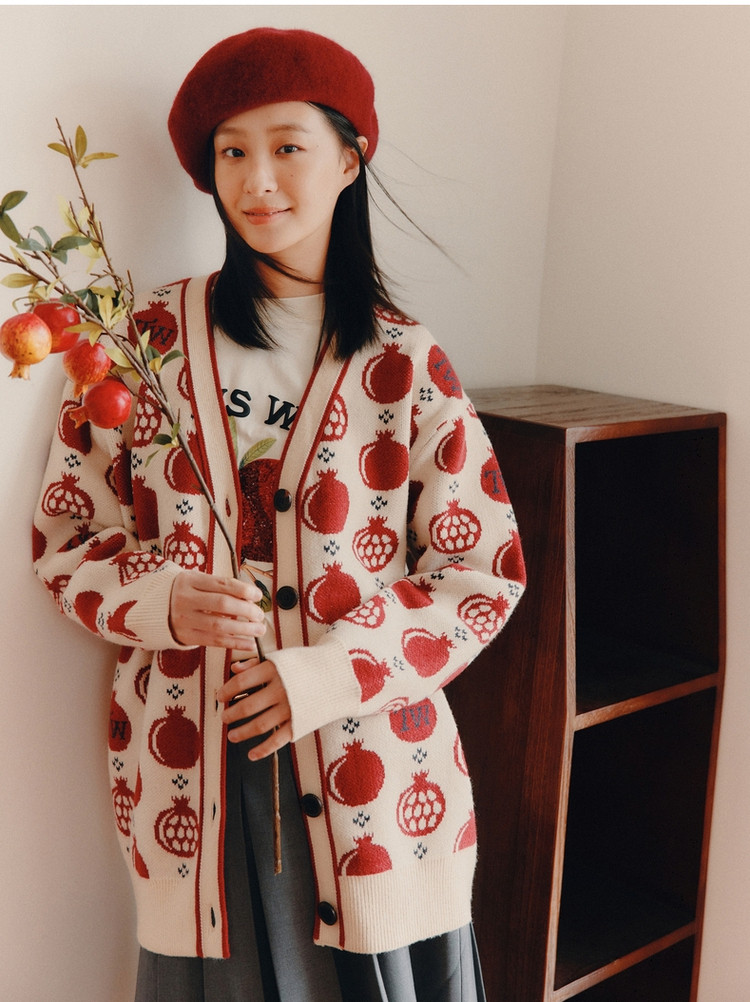 商品名称:小熊喜气红色针织开衫针织毛衣氛围感外套女装 848961