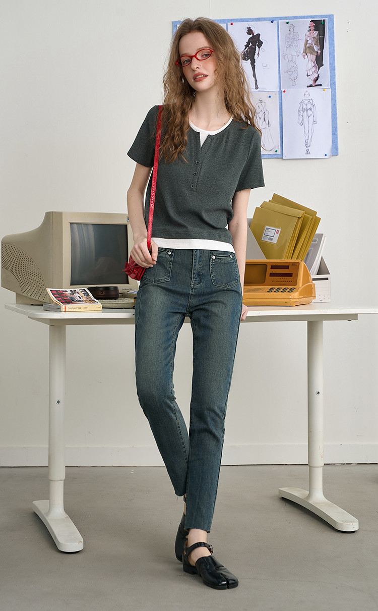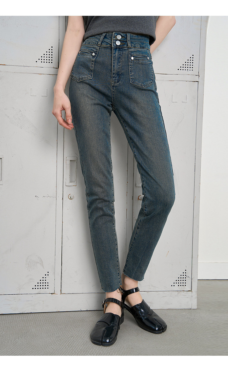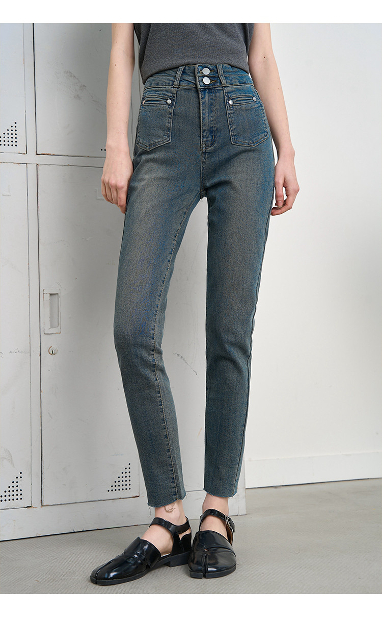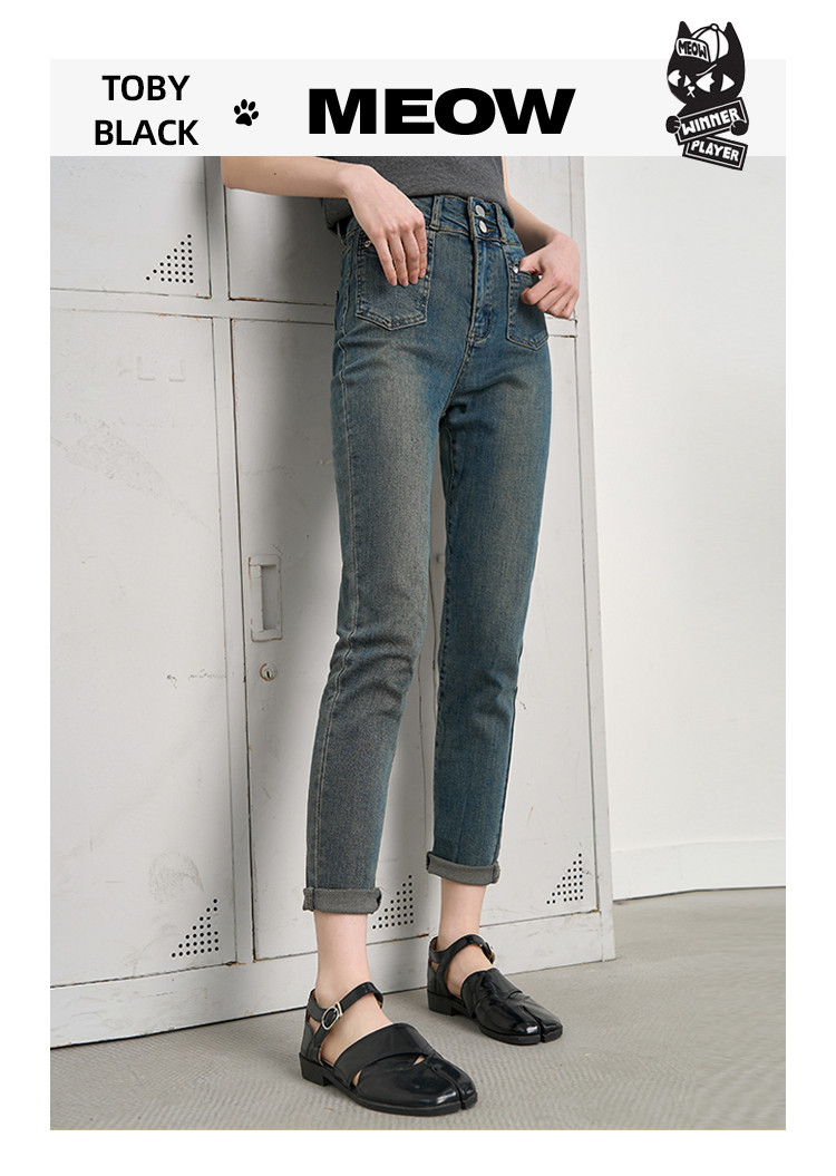 复古高腰修身显瘦紧身小脚铅笔裤2025夏季休闲百搭式牛仔裤 464477