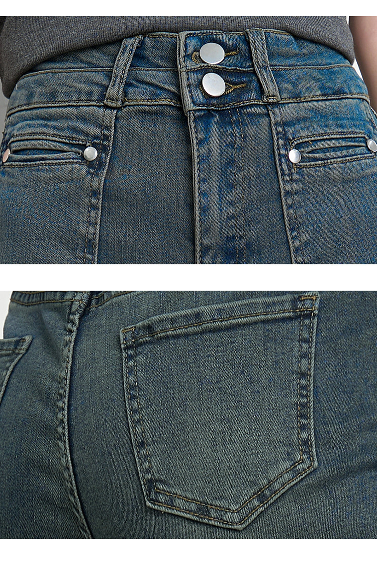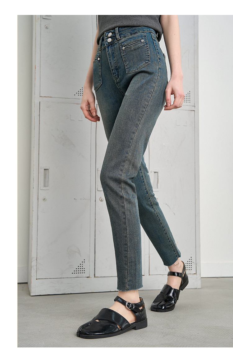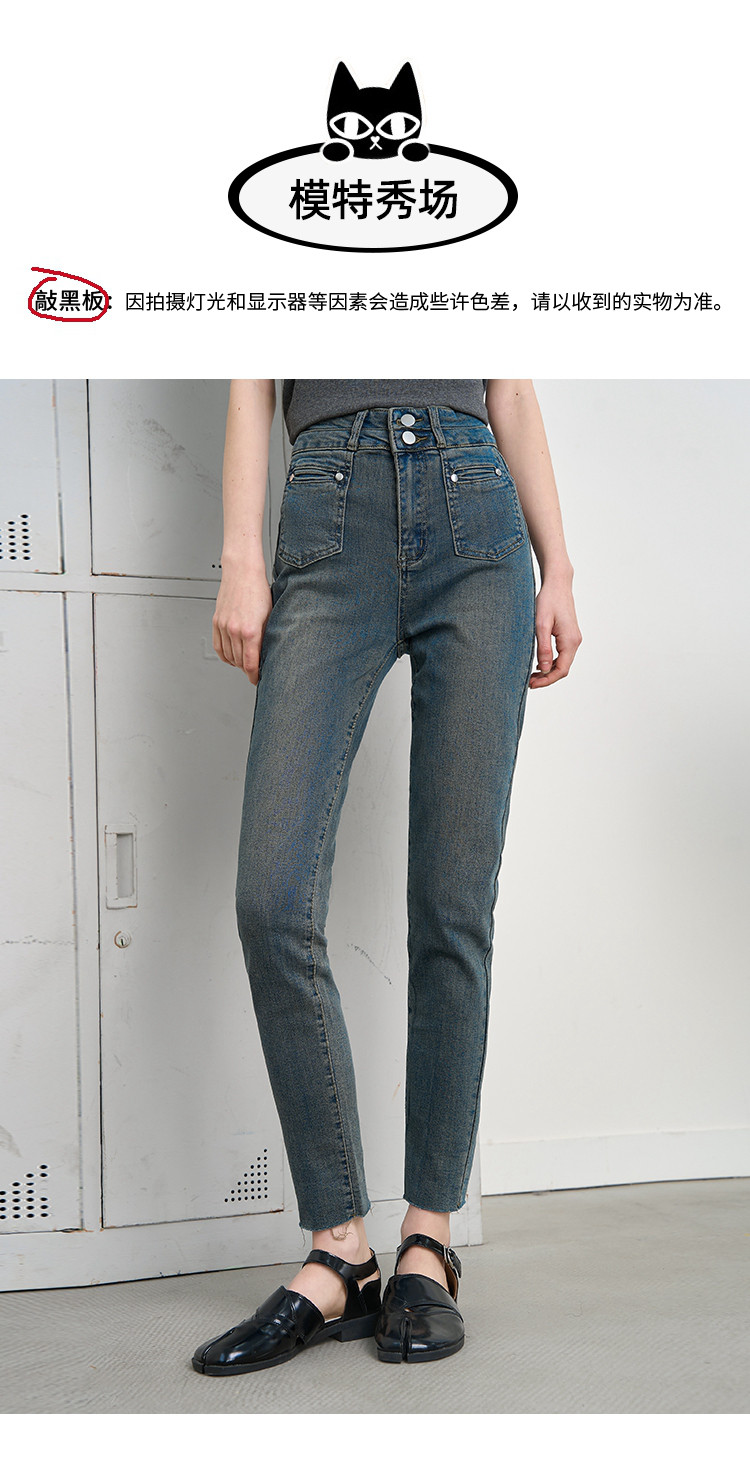 商品名称:复古高腰修身显瘦紧身小脚铅笔裤2025夏季休闲百搭式牛仔裤 464477