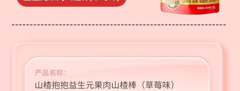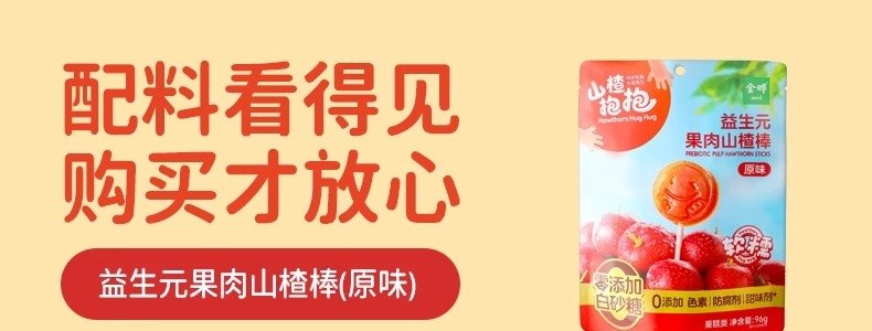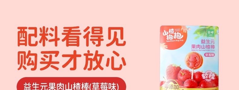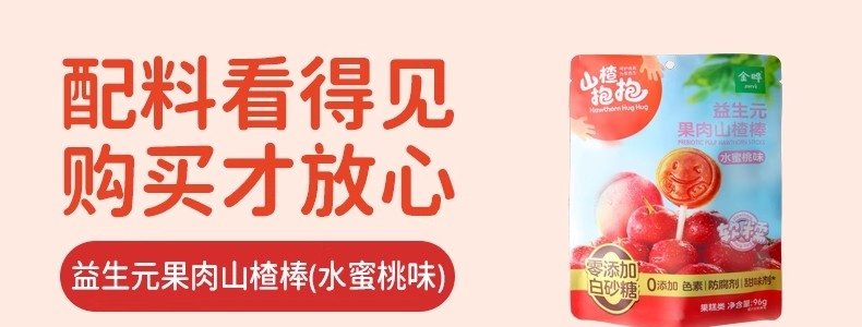 商品名称:金晔 山楂抱抱 益生元果肉山楂棒 96g*3袋(原味+草莓味+水蜜桃味各1袋)