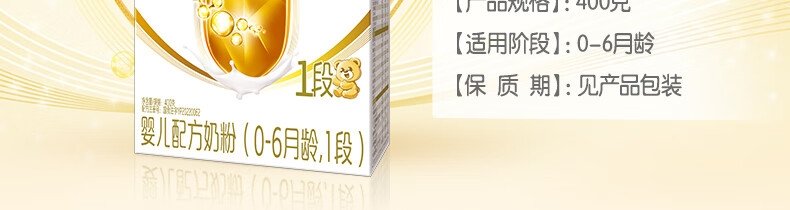 商品名称:伊利 金领冠育护婴儿配方奶粉 1段 400g 适合0-6个月*新包装*无积分