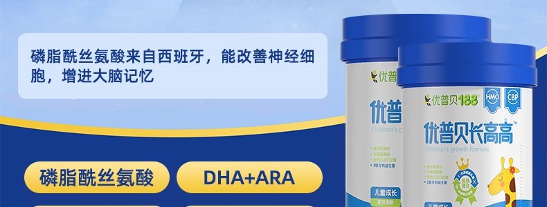 商品名称:优普贝 188儿童成长配方奶粉 800g