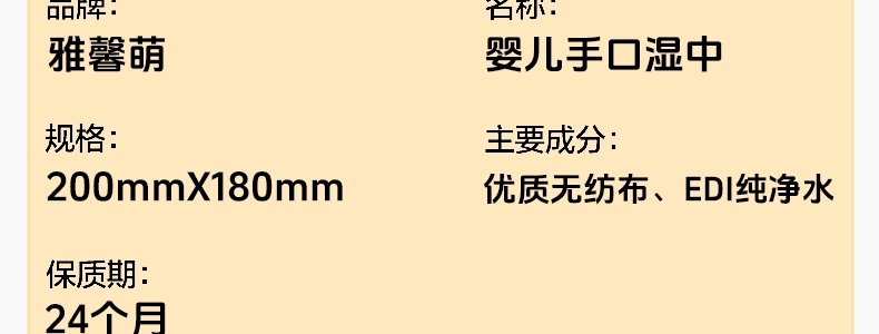 商品名称:雅馨萌 加大加厚婴儿手口湿巾 80抽*5包 旗舰版