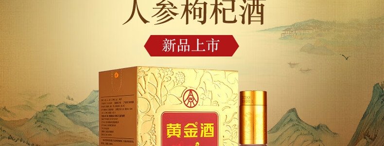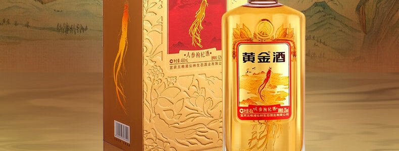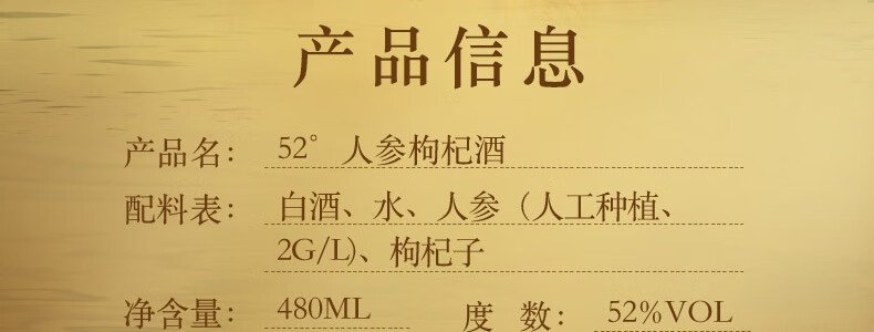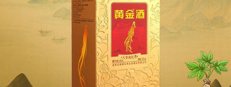 商品名称:五粮液 仙林生态 黄金酒人参枸杞酒单支装 52度白酒(480ml*1瓶)*2盒