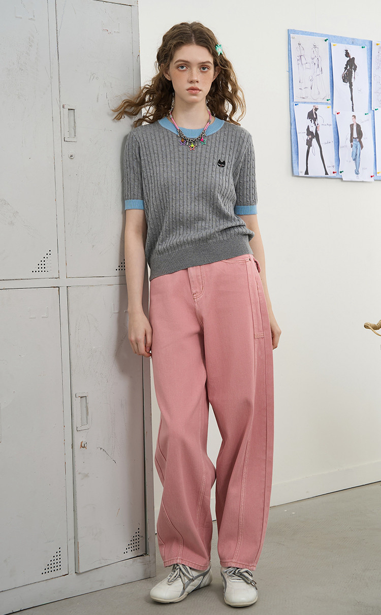 【100%棉】纯色高腰休闲直筒裤25夏季宽松百搭女式牛仔裤 628765