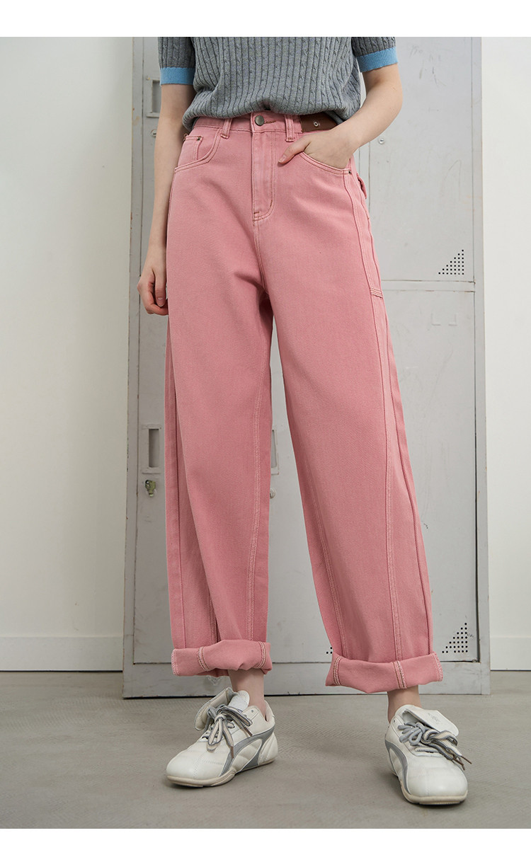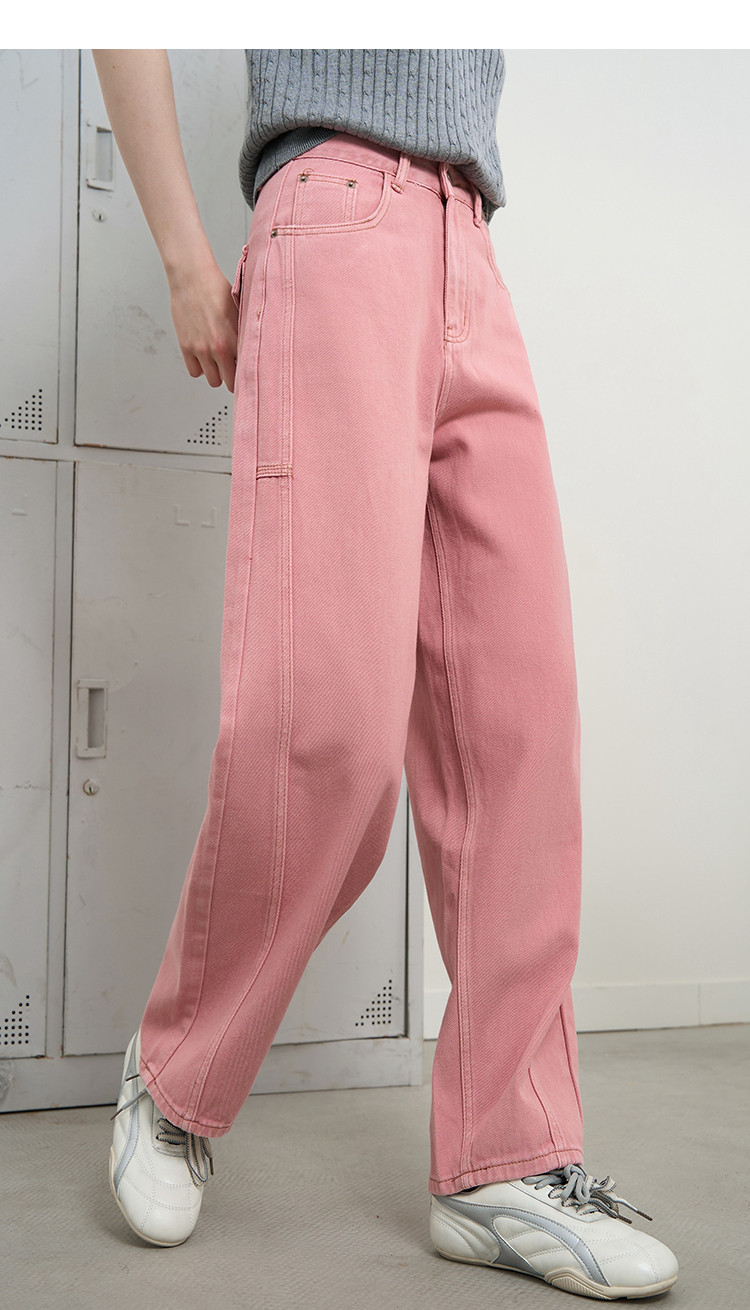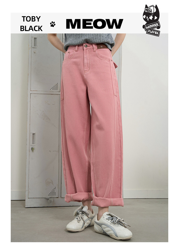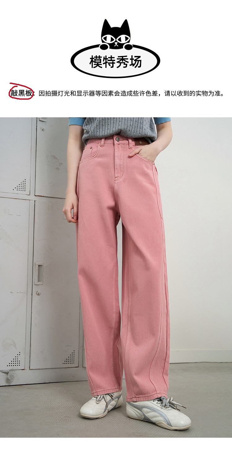 商品名称:【100%棉】纯色高腰休闲直筒裤25夏季宽松百搭女式牛仔裤 628765