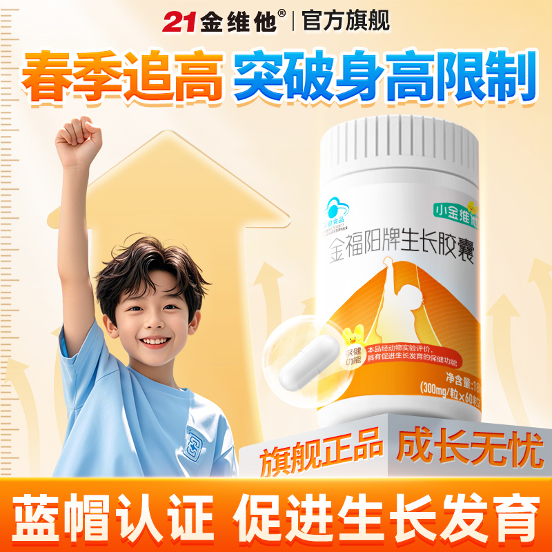 商品名称:21金维他生长胶囊 赖氨酸促进生长发育育3-13 11-17岁青少年儿童补钙铁锌维生素D60粒