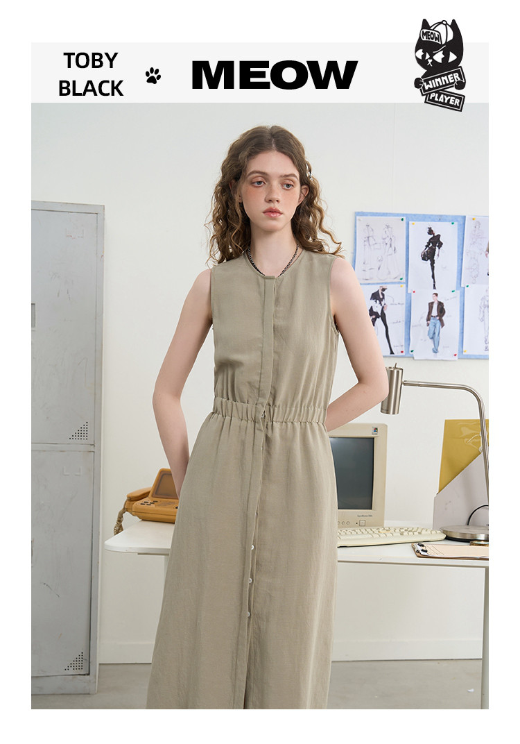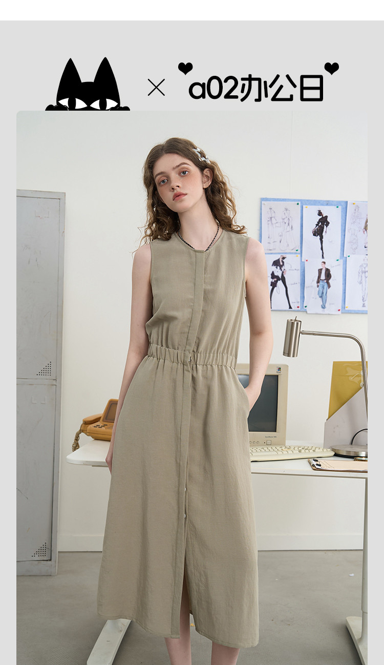 简约收腰高级感后背镂空设计无袖半身裙2025夏季百搭休连衣裙 797149