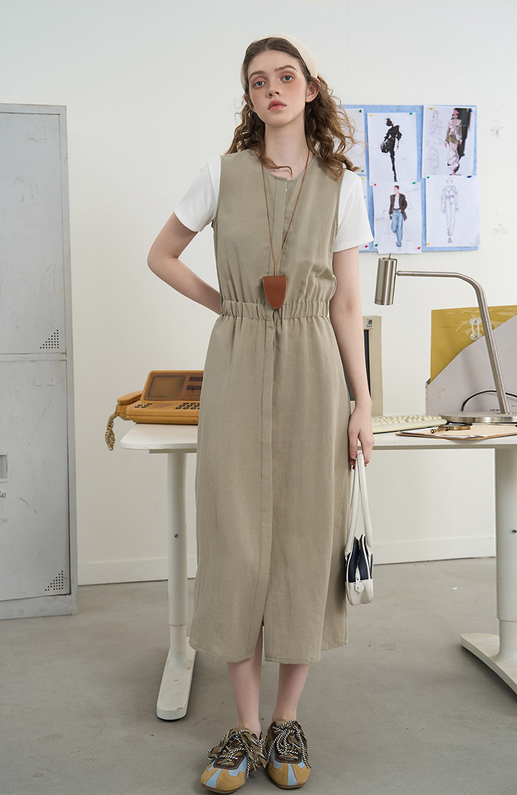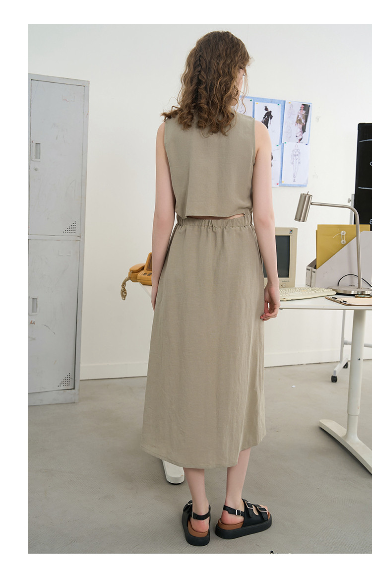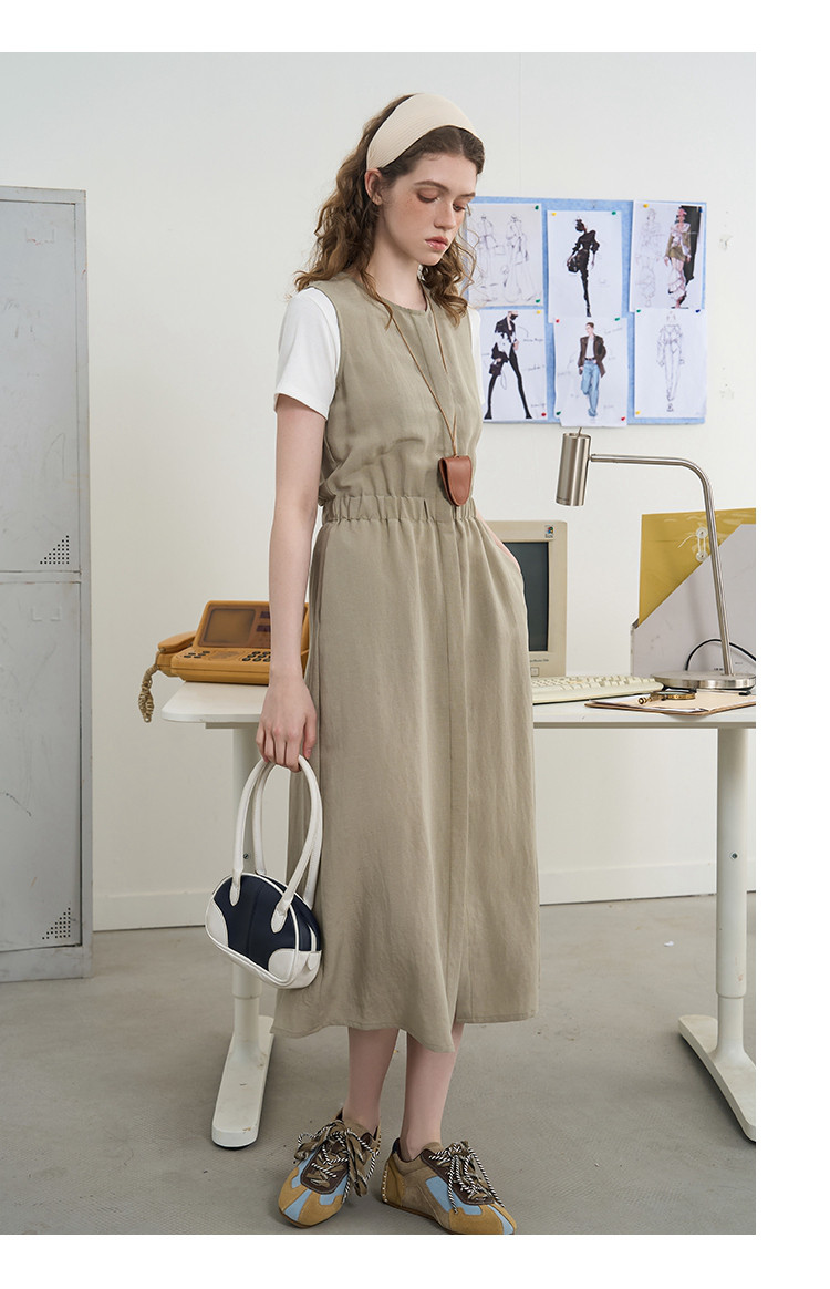 商品名称:简约收腰高级感后背镂空设计无袖半身裙2025夏季百搭休连衣裙 797149