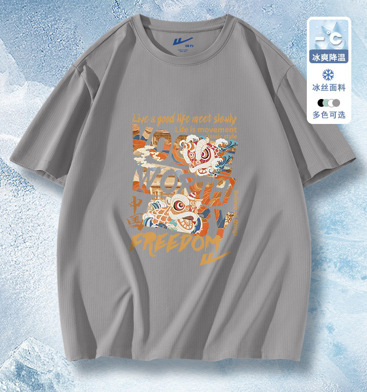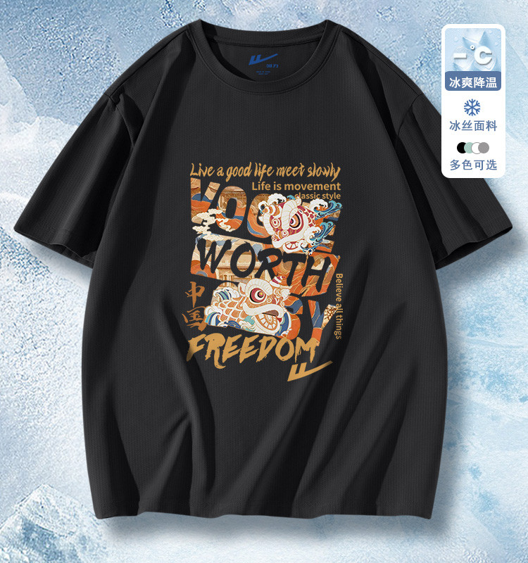 商品名称:【冰丝透气】美式复古宽松大码冰感短袖t恤男夏季薄款网眼体恤衫 088147
