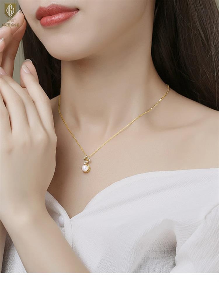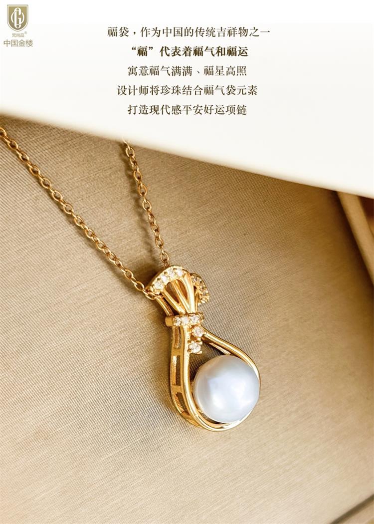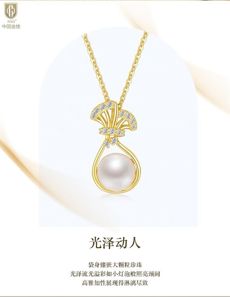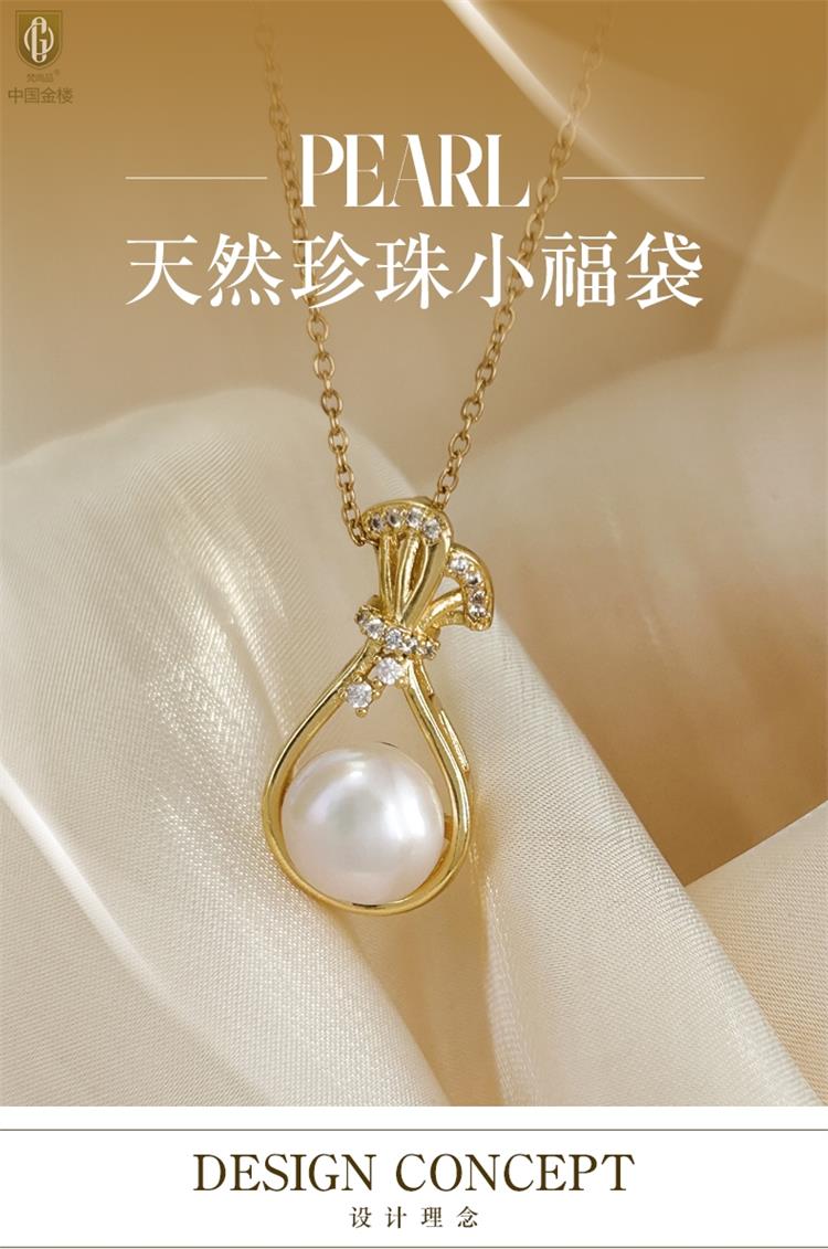 中国金楼梵尚品天然珍珠小福袋吊坠(附赠K金项链)ZZX84243673送礼好物送女友(下单赠手机贴随机一个)