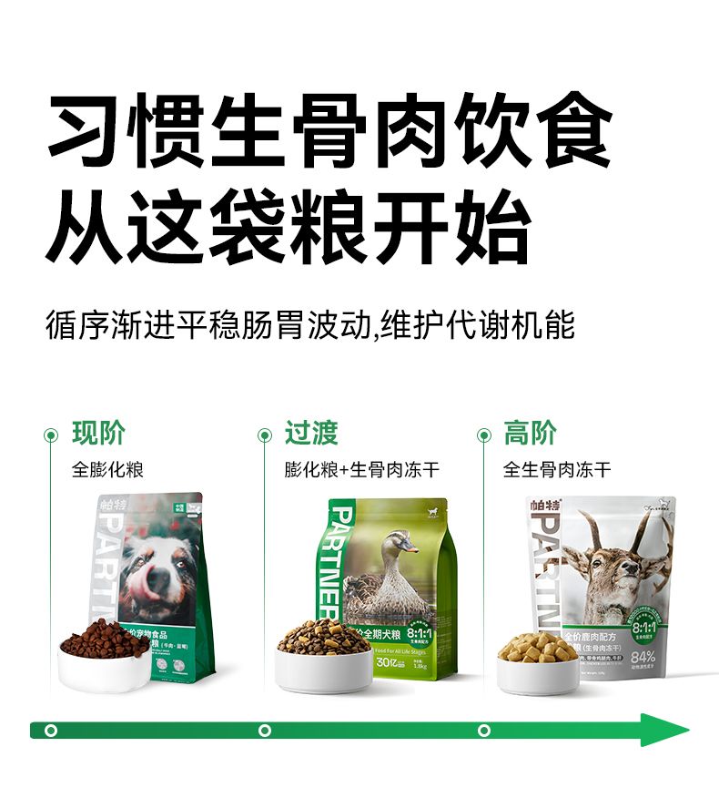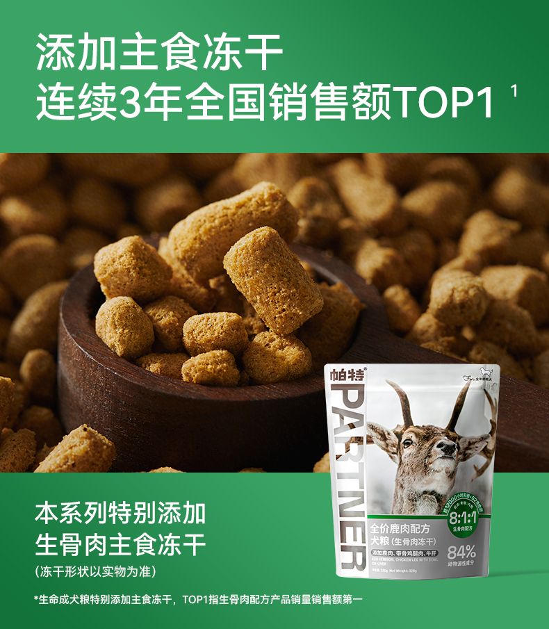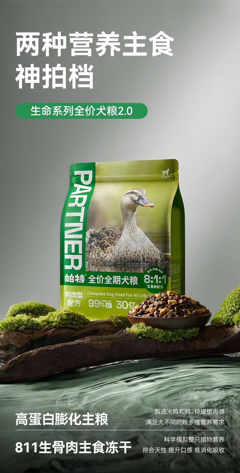 帕特 全价成年期犬粮-火鸡肉配方、生骨肉混合