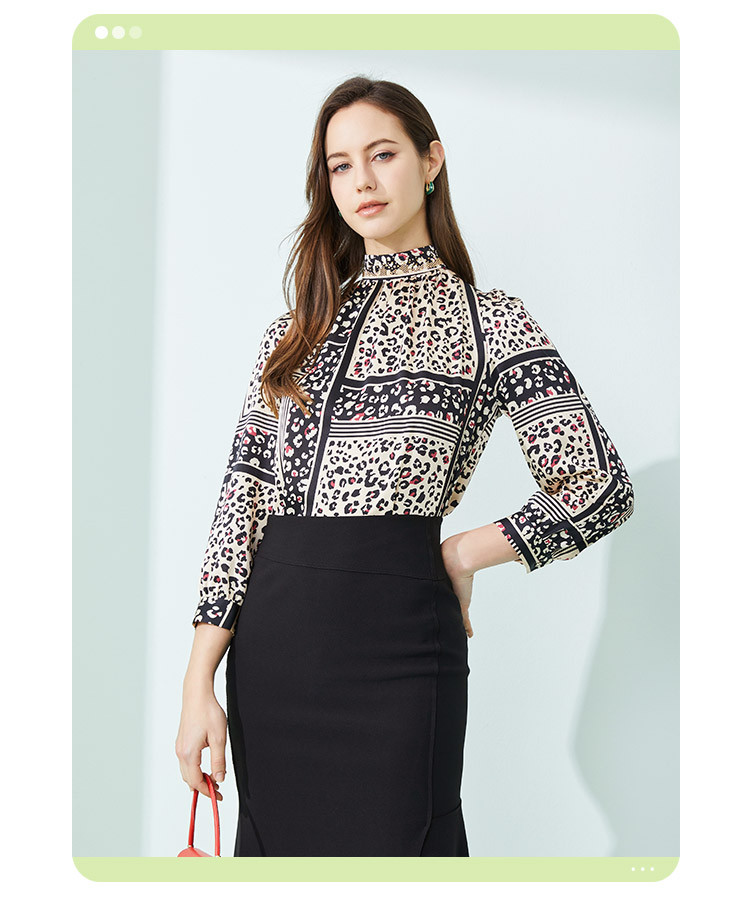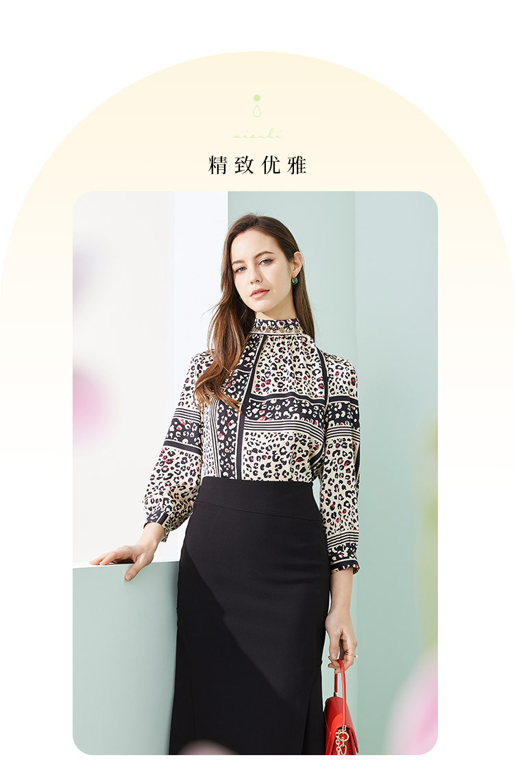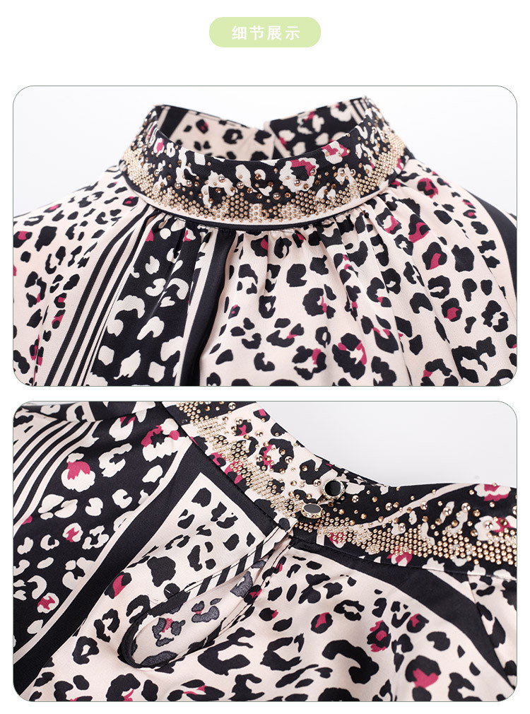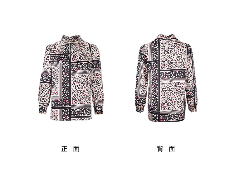 商品名称:商场同款春季复古豹纹印花雅致气质款立领长袖衬衣 687071