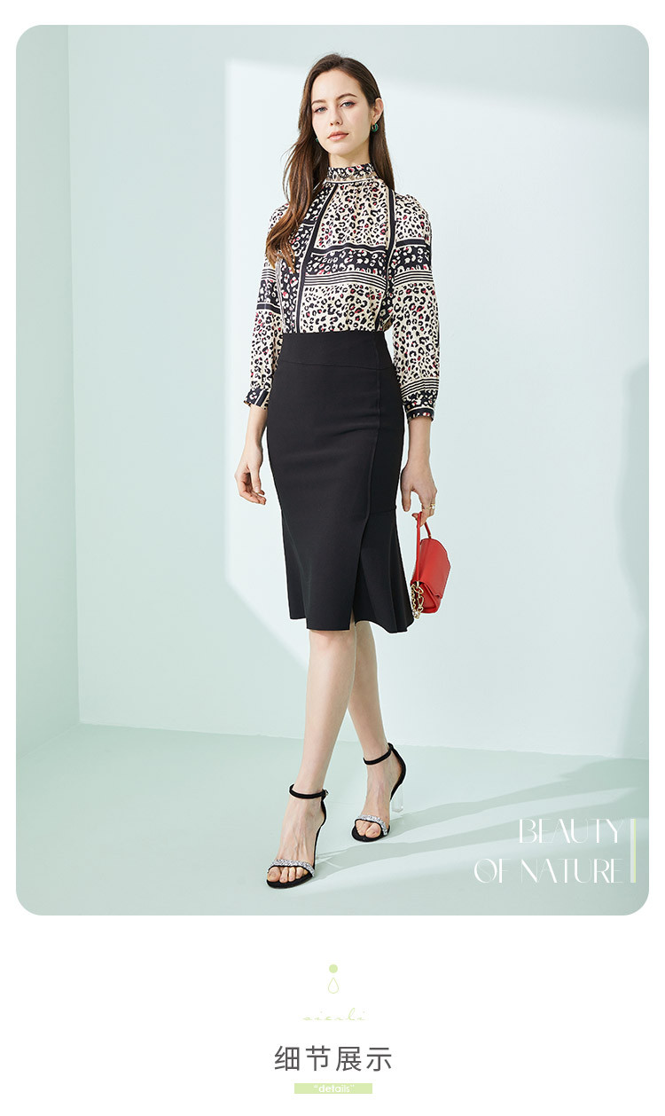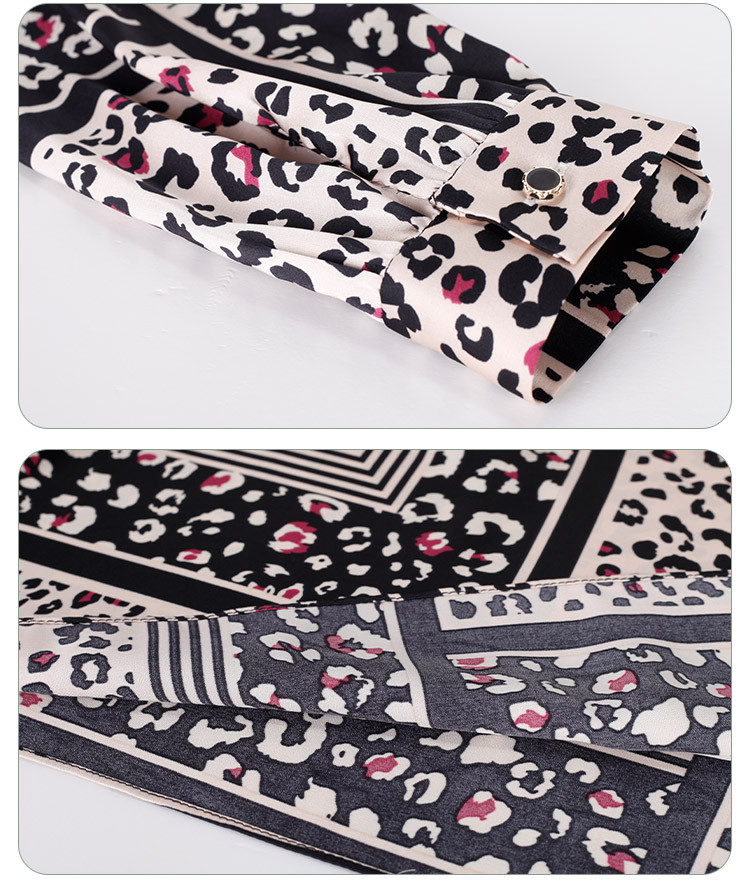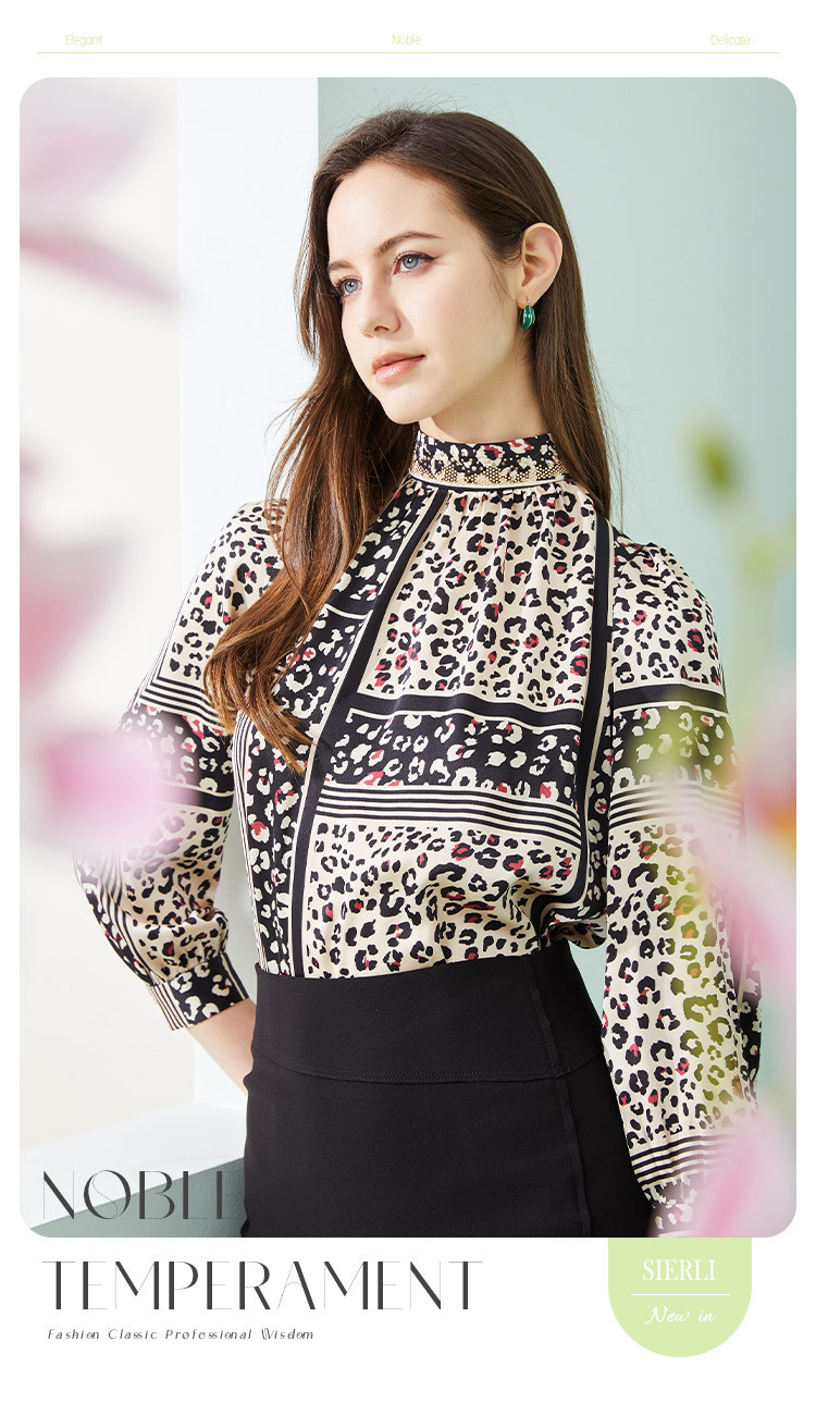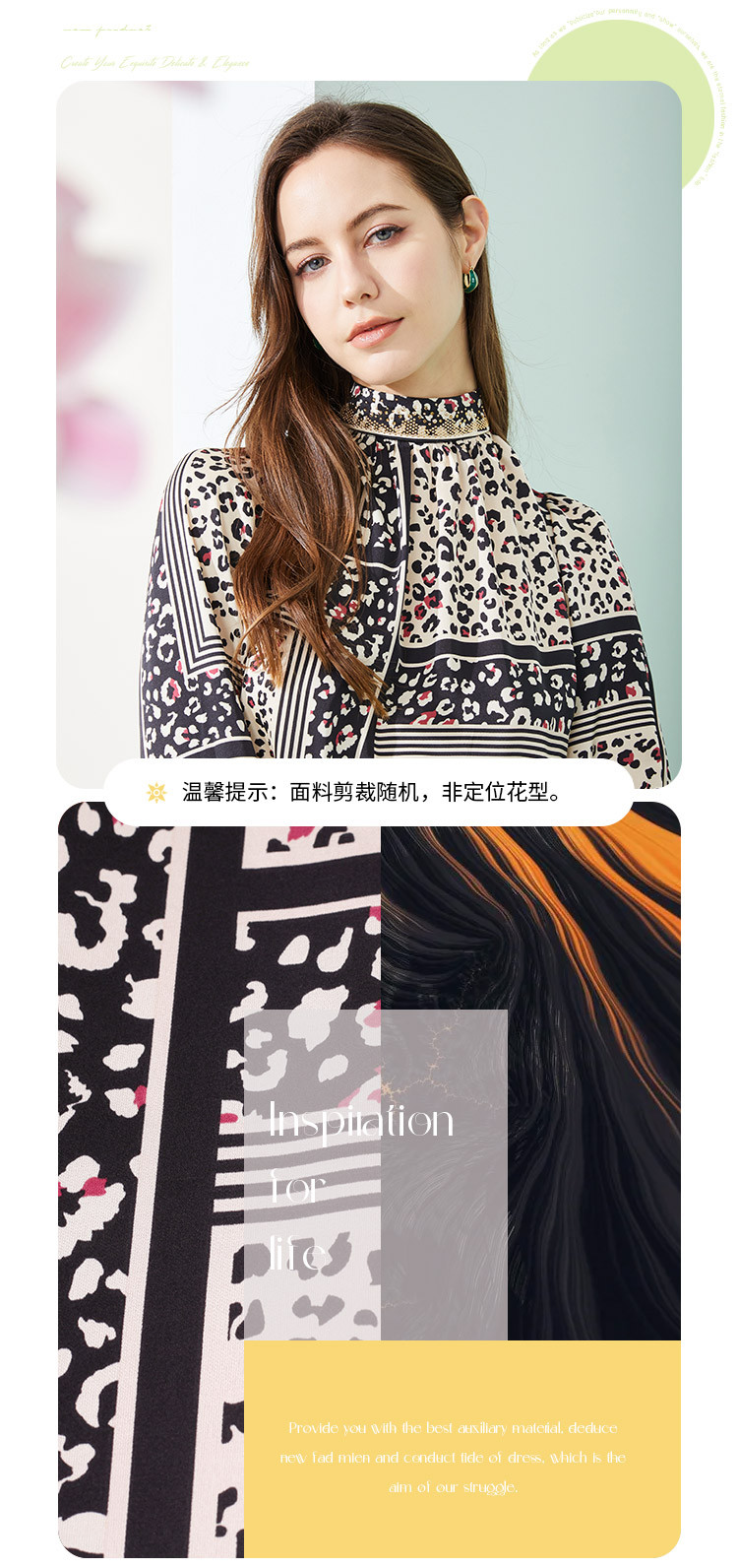 商品名称:商场同款春季复古豹纹印花雅致气质款立领长袖衬衣 687071