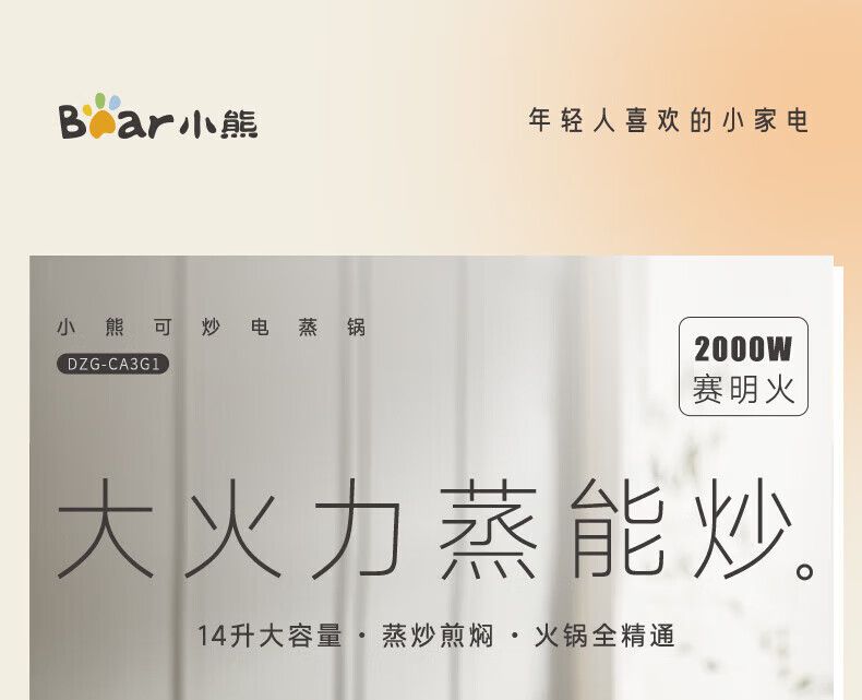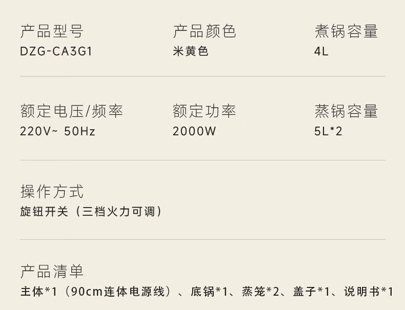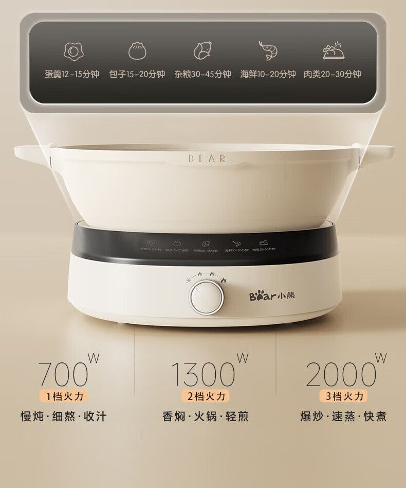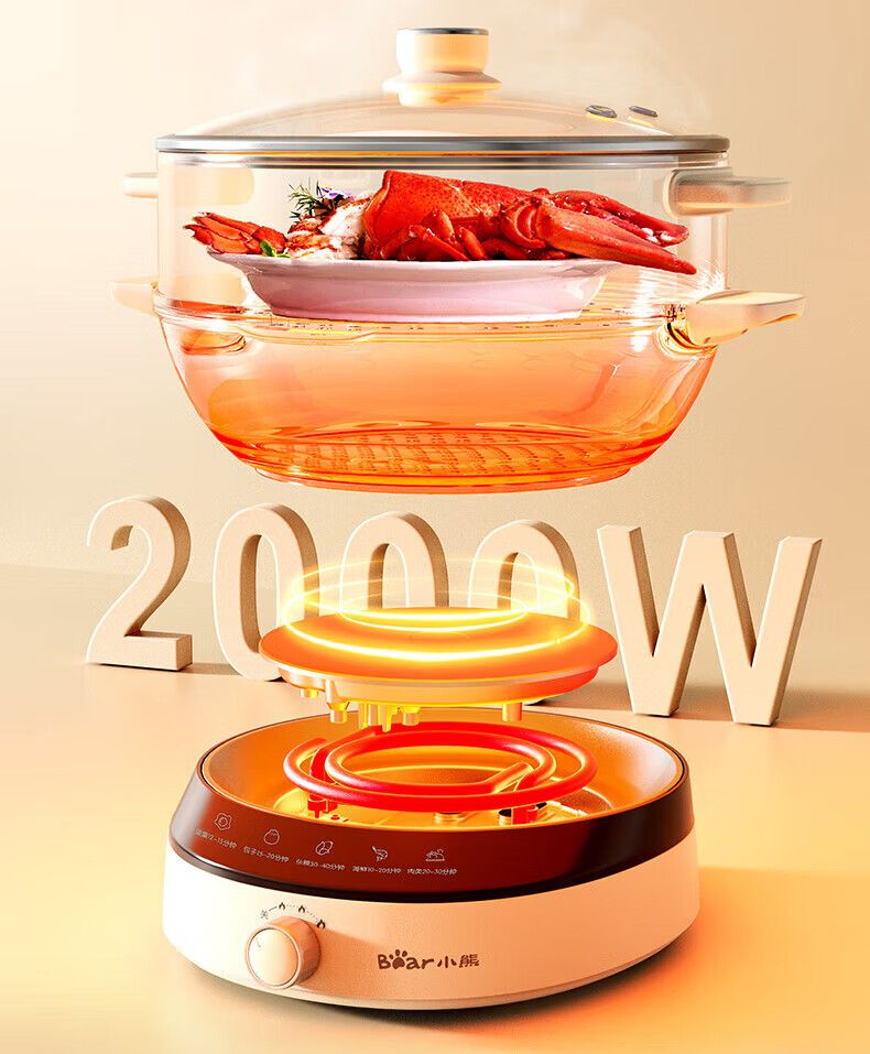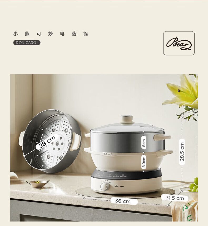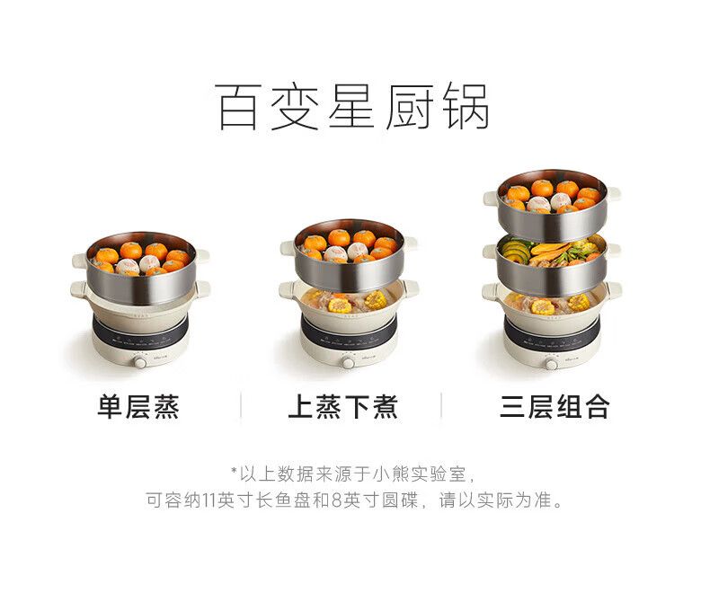 商品名称:小熊电蒸锅DZG-CA3G1 多用途锅 家用三层大容量分体可拆洗电火锅电炒锅多功能锅(煮锅4L+蒸锅5L*2)