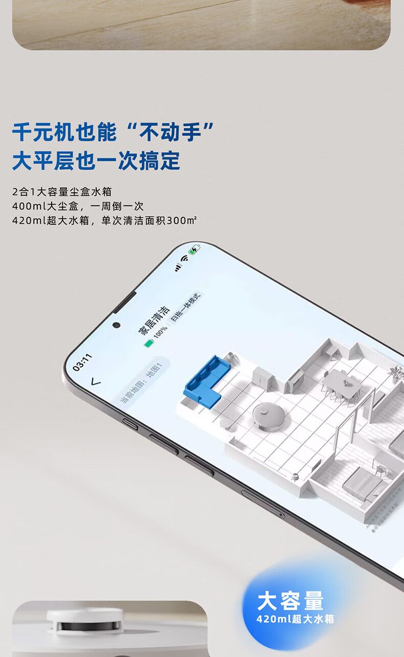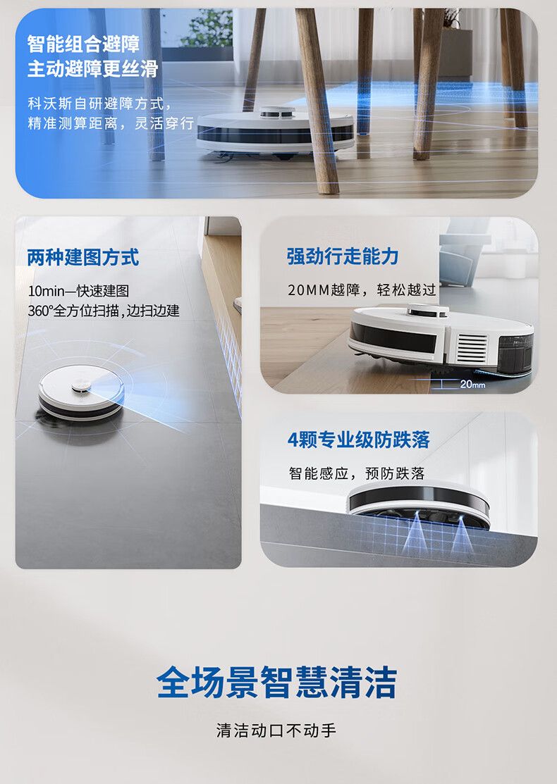 商品名称:科沃斯扫地机器人 Y1 扫拖一体6500Pa吸力5200mAh电池 激光导航15mm主动贴边清