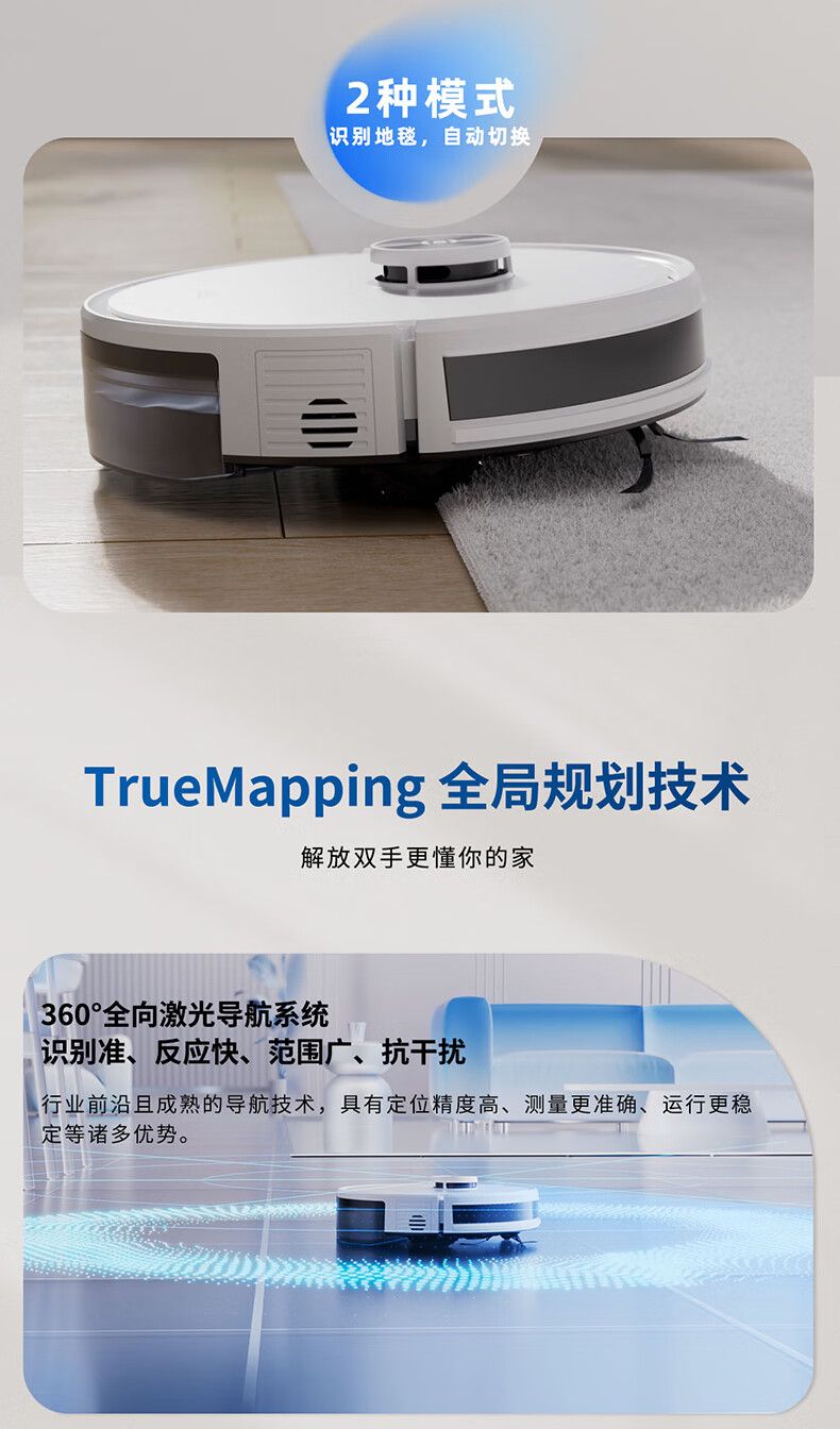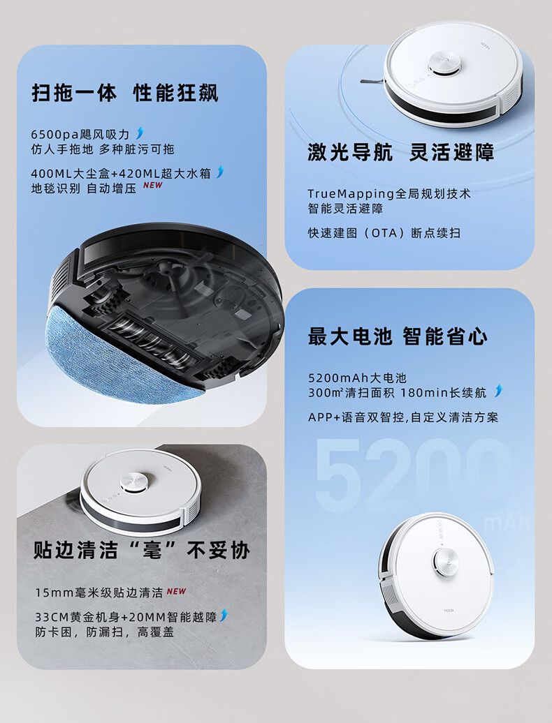科沃斯扫地机器人 Y1 扫拖一体6500Pa吸力5200mAh电池 激光导航15mm主动贴边清