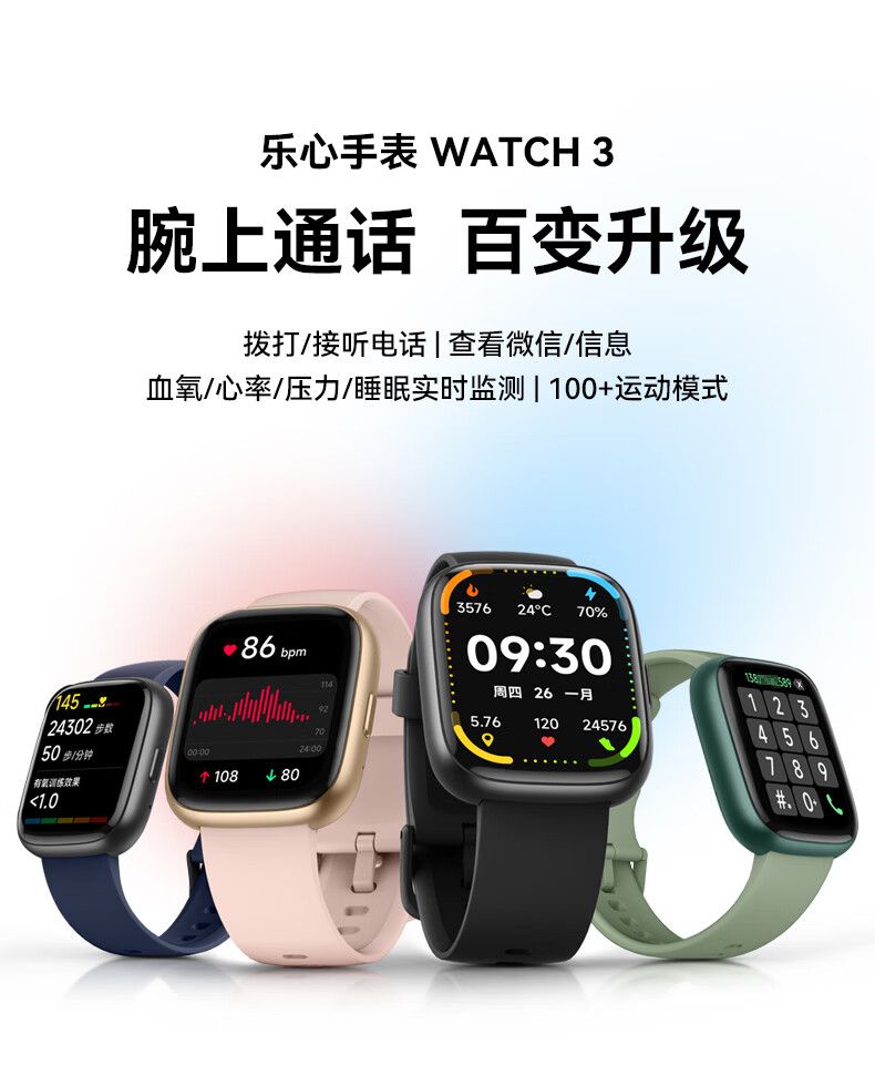 乐心 智能手表watch3 蓝牙通话高精度测血氧心率睡眠健康压力监测手环